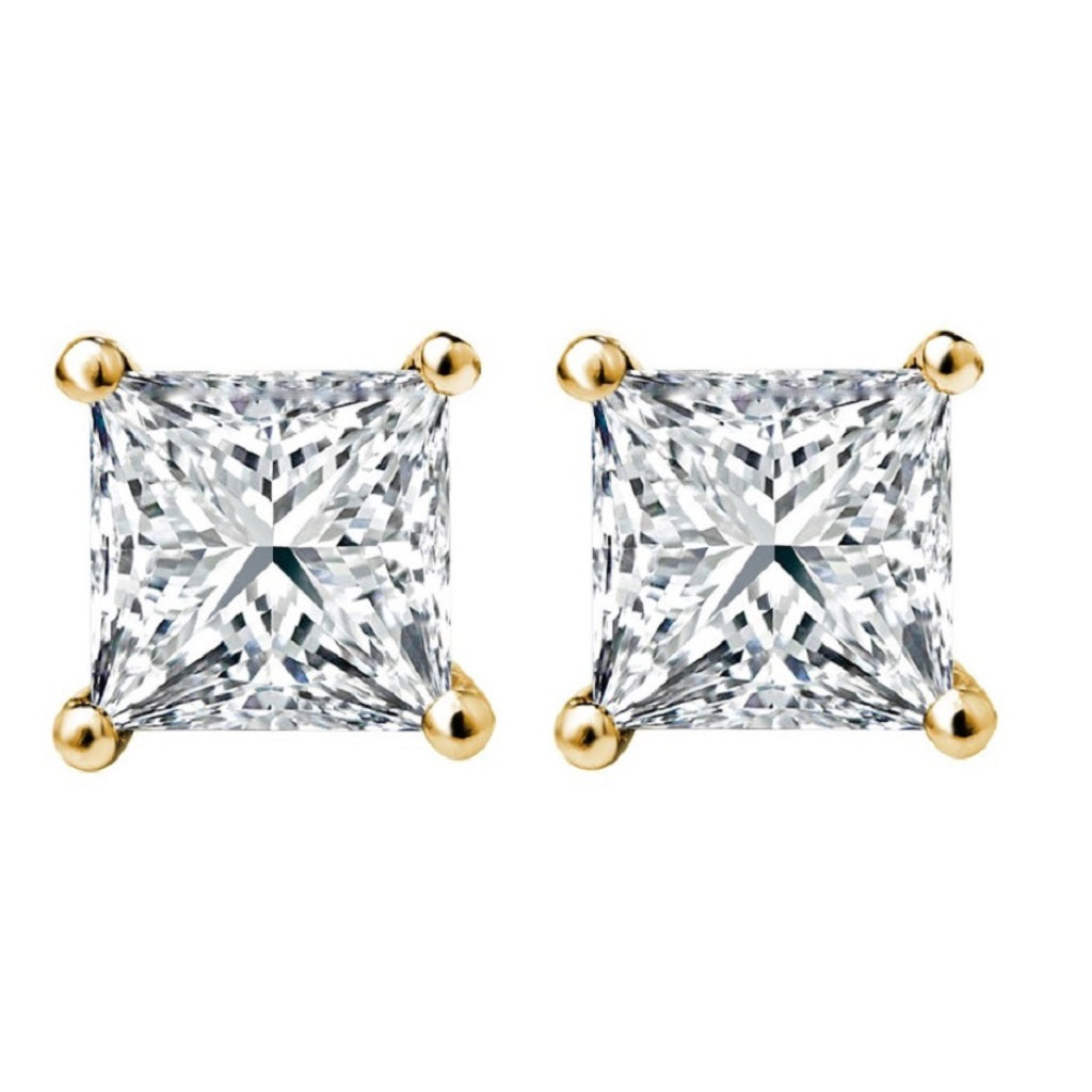 Elegance and simplicity are the key design codes we follow to create these diamond stud earrings. It is studded with 1/3 carats of DEF/SI quality princess lab-created diamonds using four prongs. This Perfectly suited to a wearer minimal in taste, these earrings are timeless and individual, pared back to reveal each diamond's natural beauty