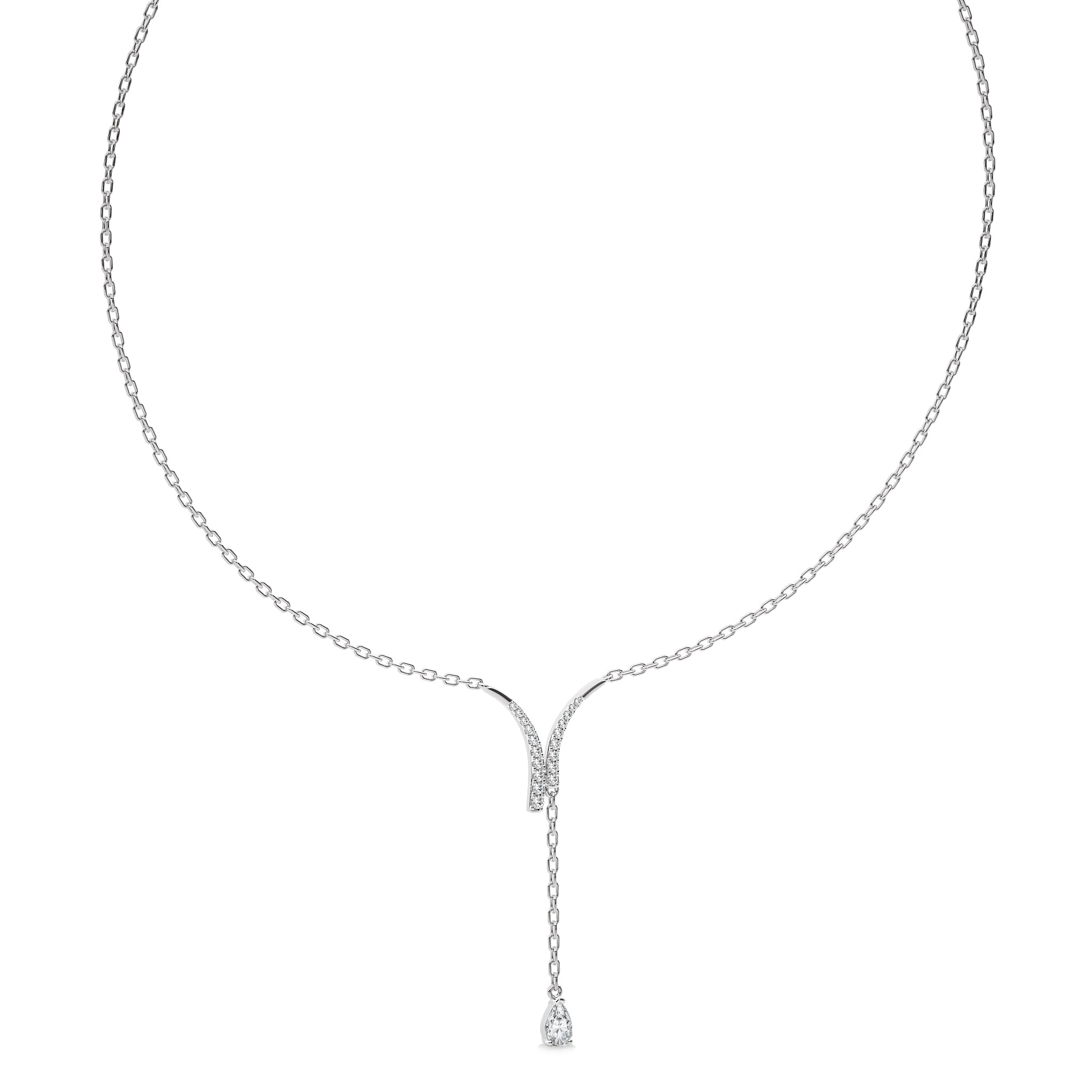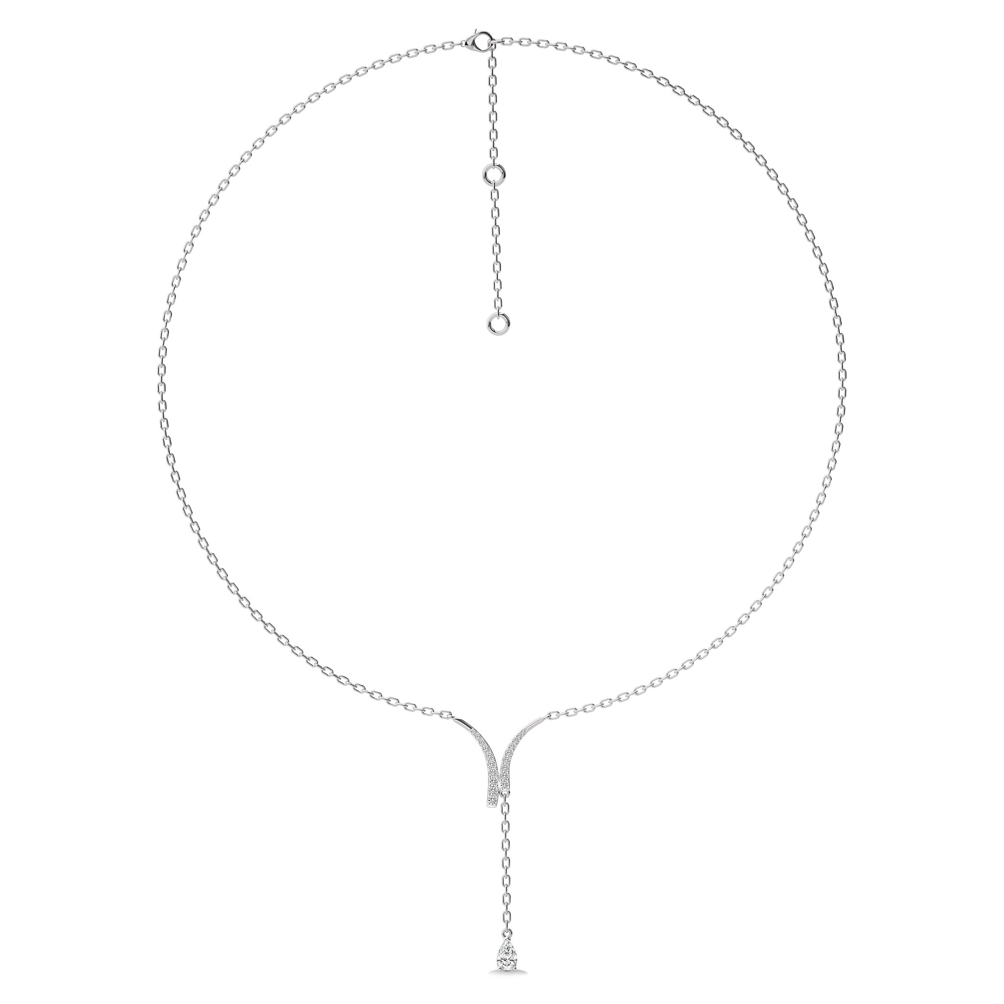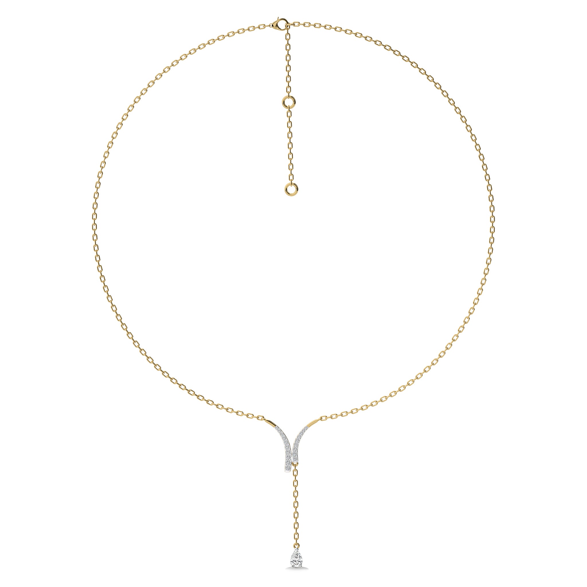 Enthrall with our Fashionable Teardrop Pear and Round Lab Created Diamond Necklace, featuring a stunning combination of pear and round lab-Created diamonds totaling 1/2 carat. Each diamond sparkles with brilliance, showcasing DEF/SI quality, and is set in a micro split prong and prong setting, adding a touch of elegance and sophistication to your look