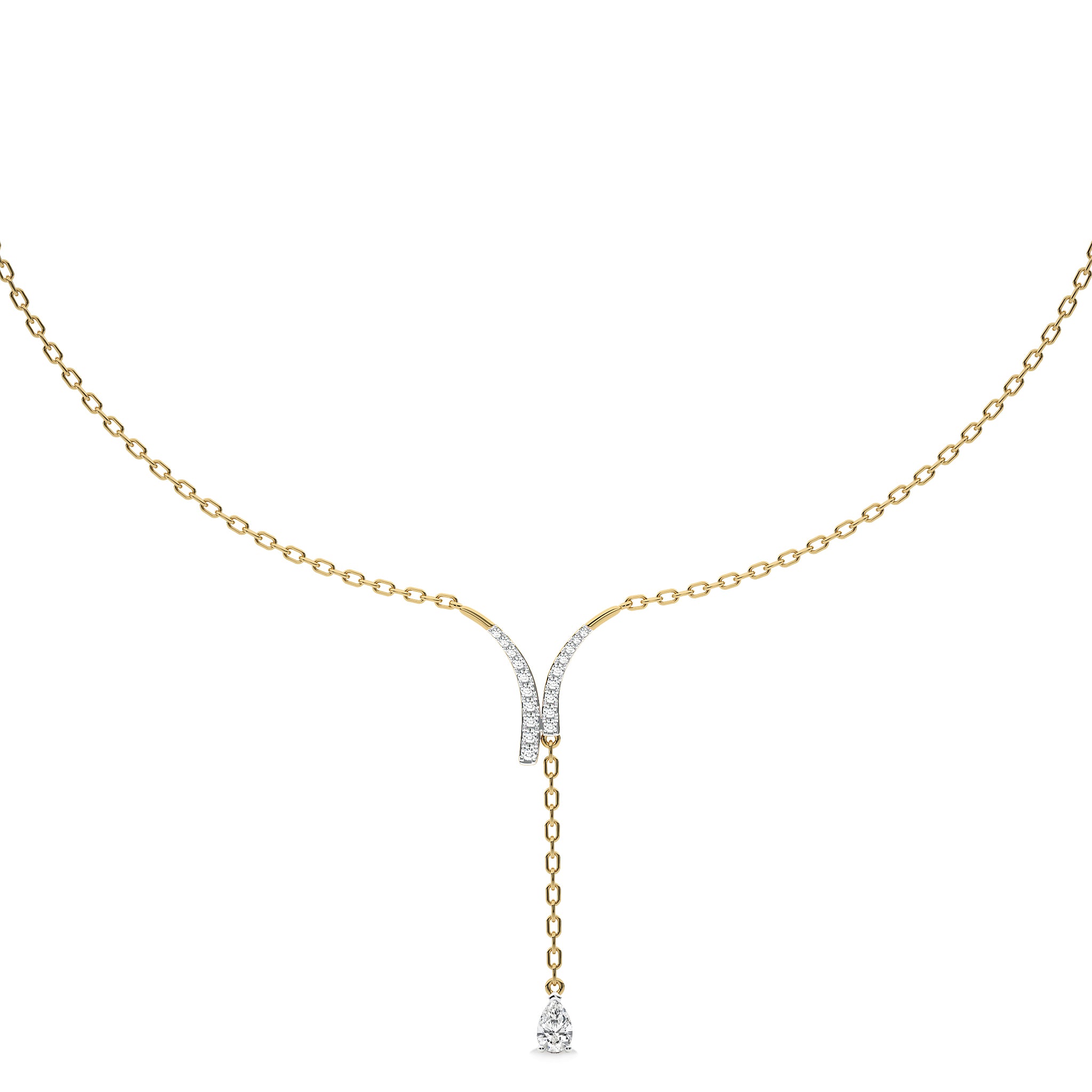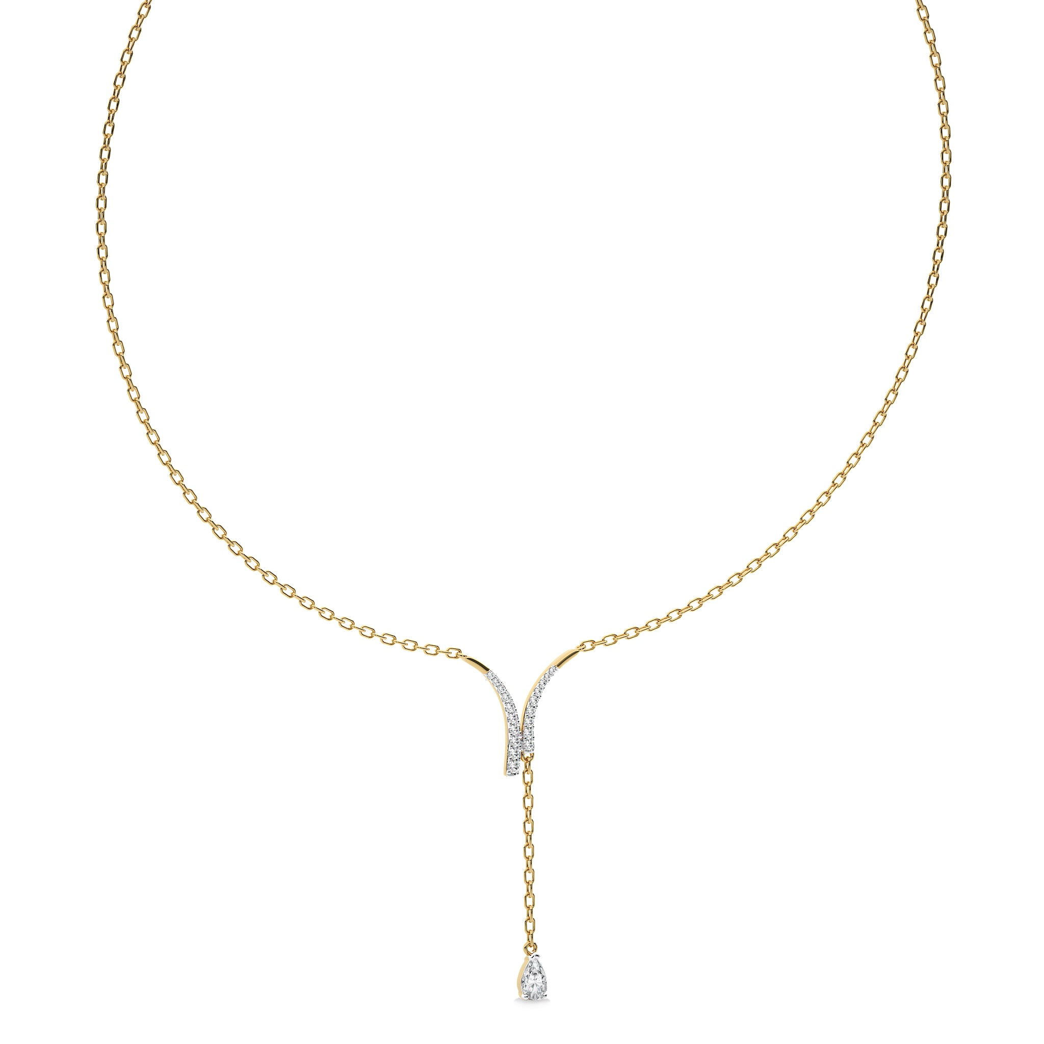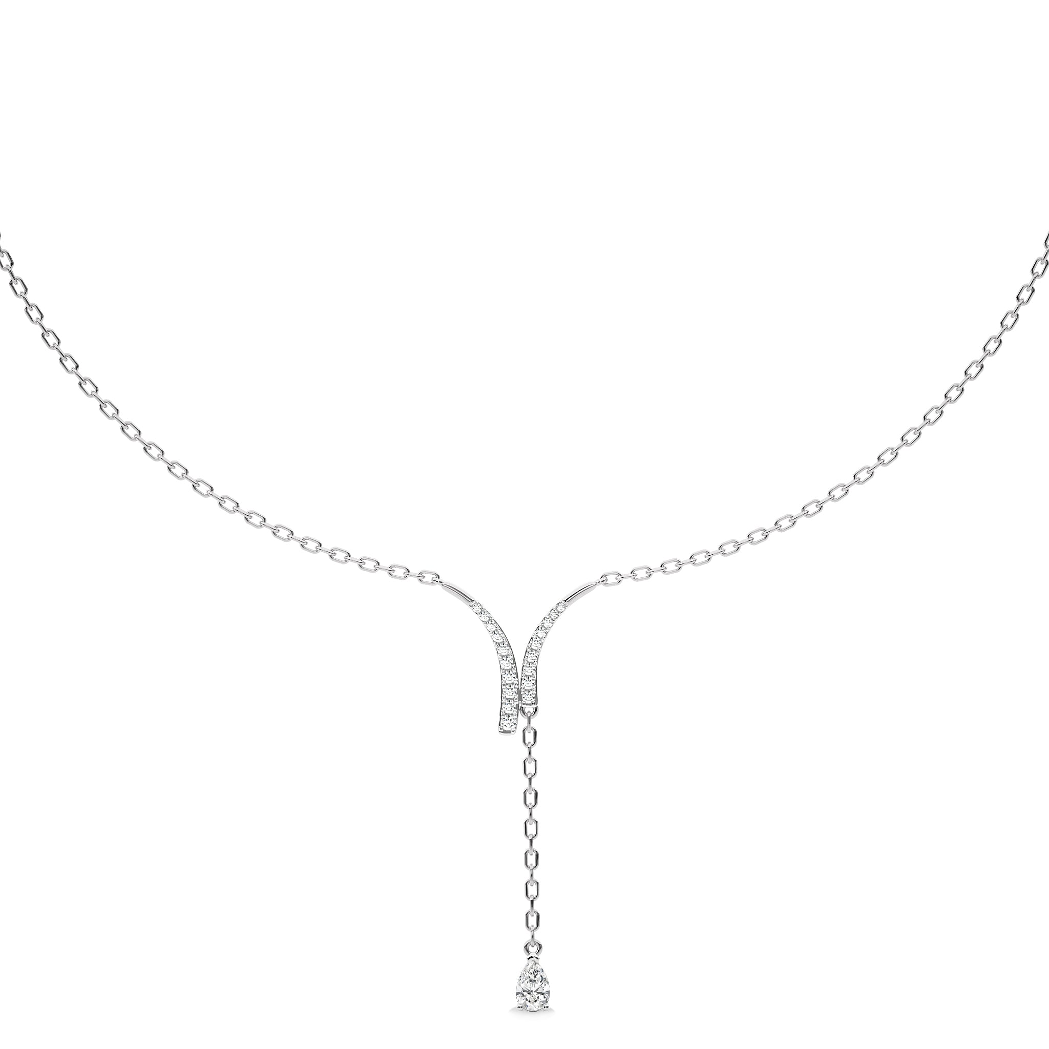 Enthrall with our Fashionable Teardrop Pear and Round Lab Created Diamond Necklace, featuring a stunning combination of pear and round lab-Created diamonds totaling 1/2 carat. Each diamond sparkles with brilliance, showcasing DEF/SI quality, and is set in a micro split prong and prong setting, adding a touch of elegance and sophistication to your look
