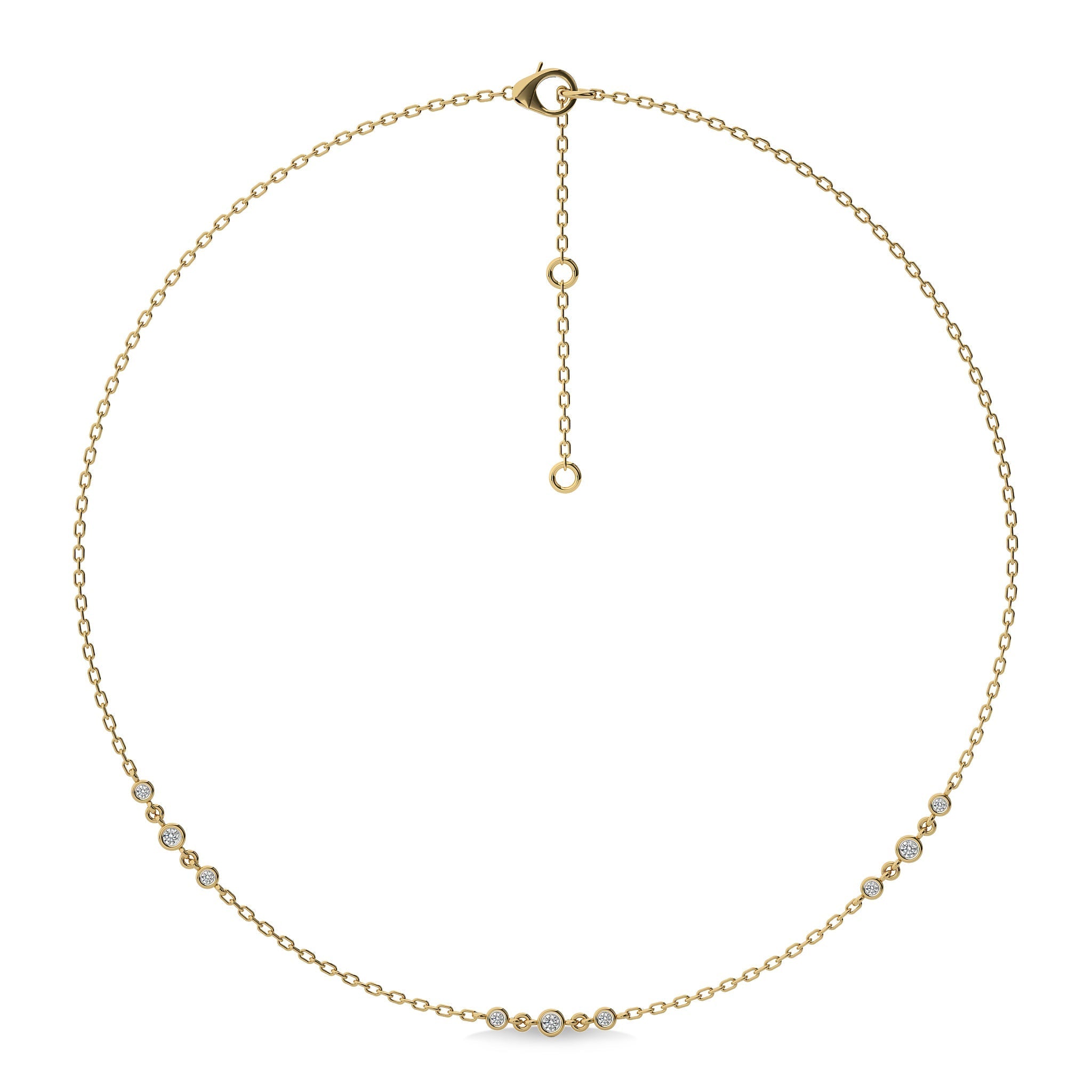 Presenting our Exclusive Circular Round Lab Created Diamond Triple Station Necklace, a stunning addition to your jewelry collection. This exquisite piece features 1/4 carat of DEF/SI quality lab-created diamonds, elegantly bezel-set for a modern and sophisticated look. Perfect for adding a hint of sparkle to any outfit
