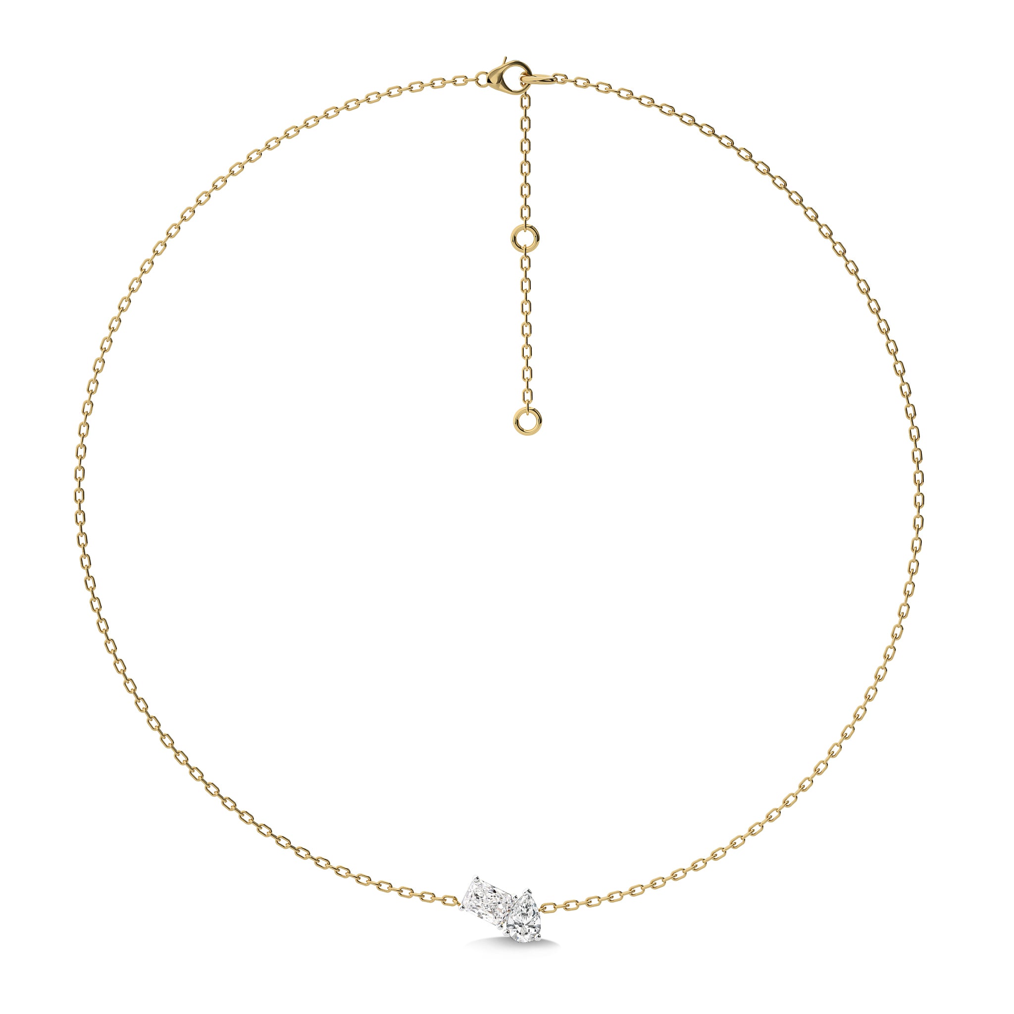 Capture the essence of whimsy with our Whimsical Emerald and Pear Dual Lab Created Diamond Toi et Moi Necklace, featuring 2 carats of DEF/SI quality diamonds in a prong setting , perfect for adding a touch of charm to any outfit