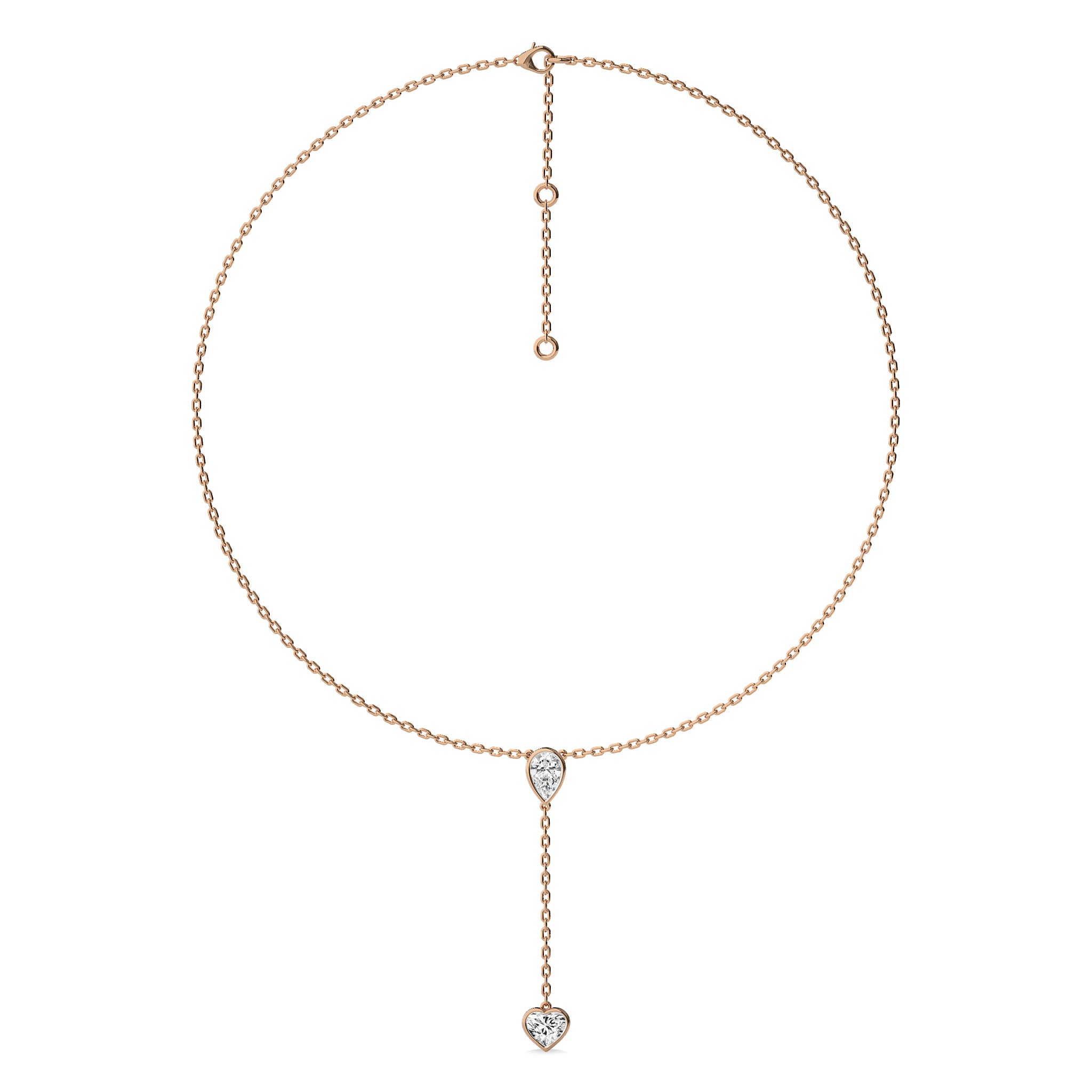 Engross Yourself with our Lab Created Diamond Lariat Necklace Featuring 2 carats of DEF/SI quality diamonds bezel set for a sleek look,the twin pear and heart stones adding a touch of glamour to any outfit