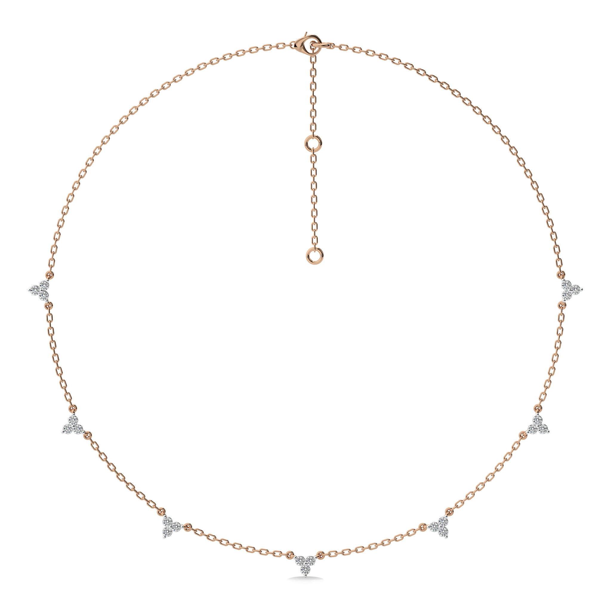 Luxuriate in elegance with our Noble Trio Round Lab Created Diamond Station Necklace. Featuring stunning 1 carat diamonds of DEF/SI quality in delicate prong settings, this necklace adds a touch of sophistication to any outfit