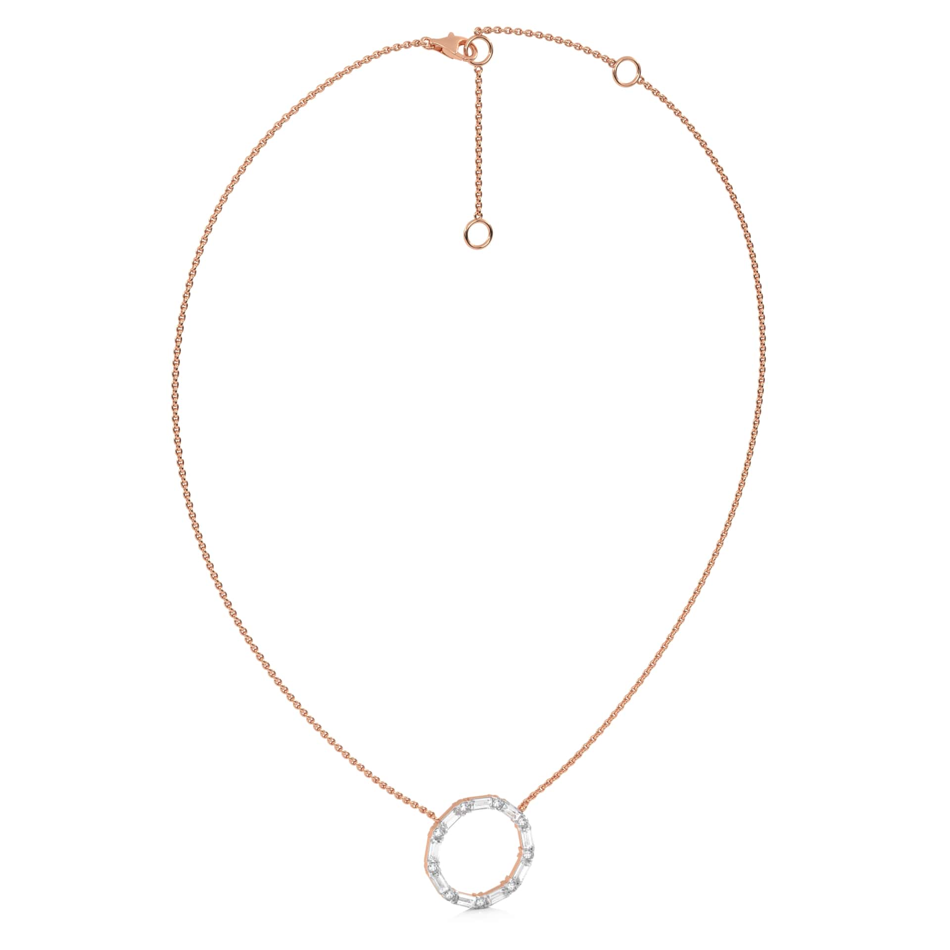Grace your look with this 1 CT. Round and Baguette Lab Created Diamond Circle Pendant Necklace. Crafted with DEF/SI quality diamonds in a micro split setting, it radiates a unique blend of modern brilliance and classic charm