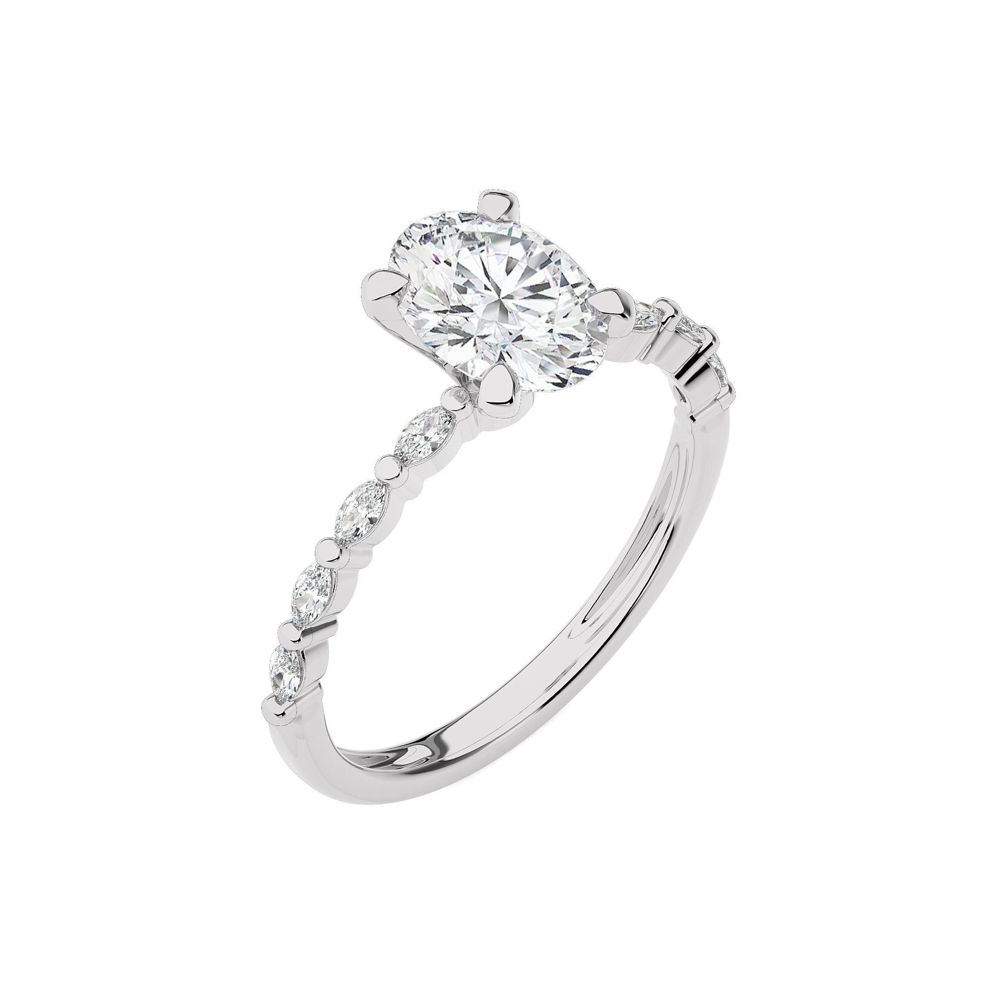 This enchanting ring showcases a oval cut available in lab created and natural diamonds and set in a classic prong setting, Let this extraordinary piece symbolize your unique love story