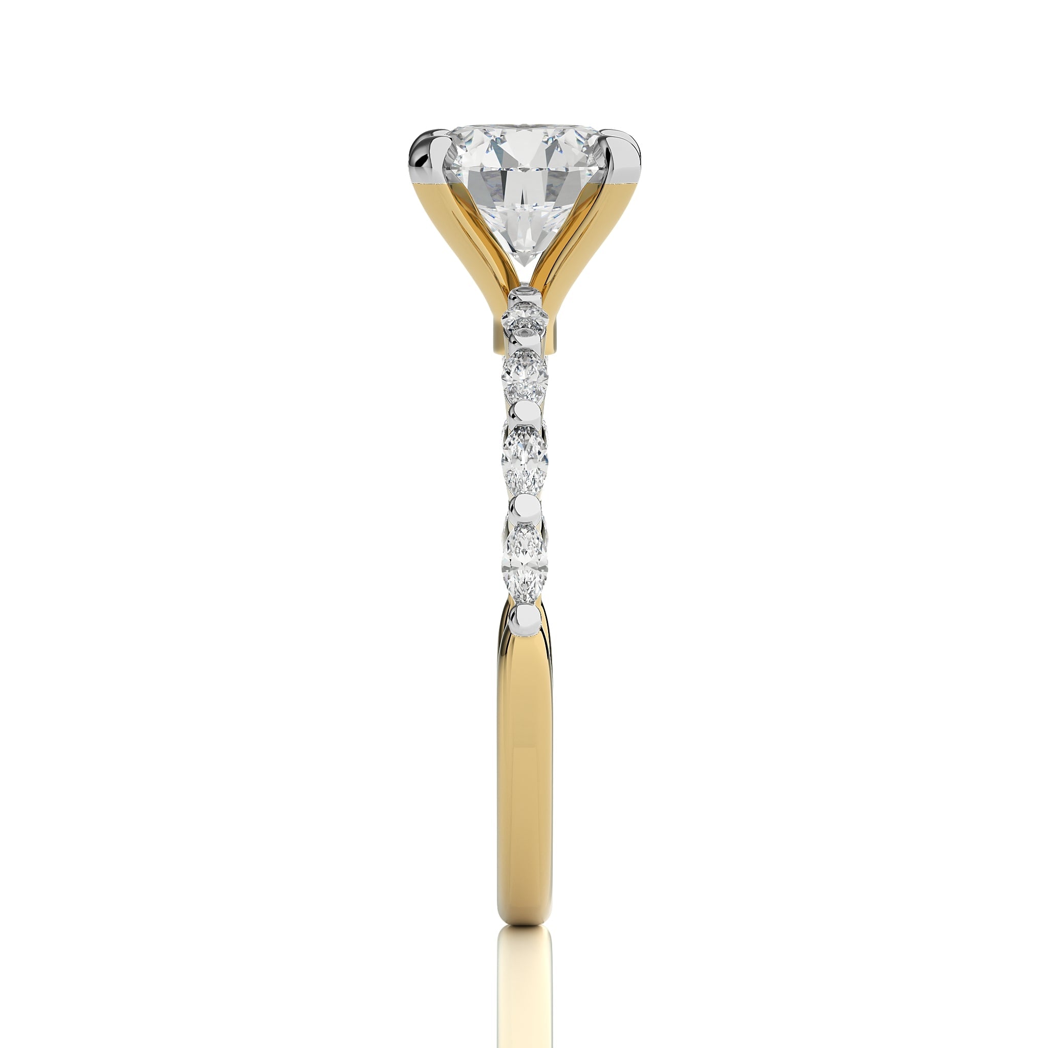 This enchanting ring showcases a round cut available in lab created and natural diamonds and set in a classic prong setting, Let this extraordinary piece symbolize your unique love story