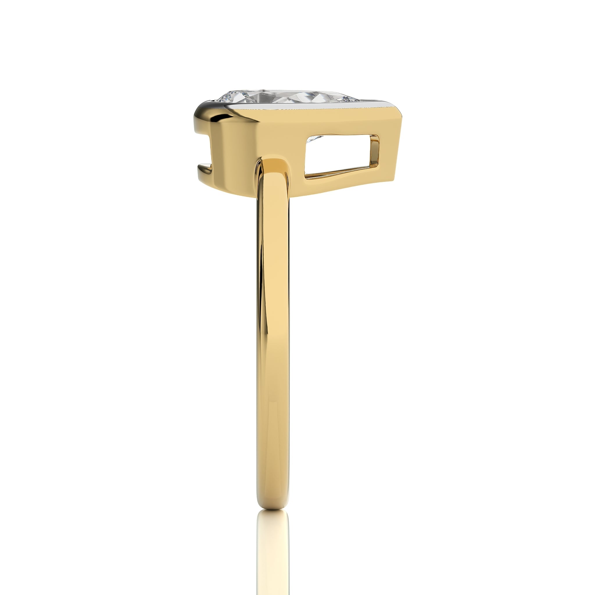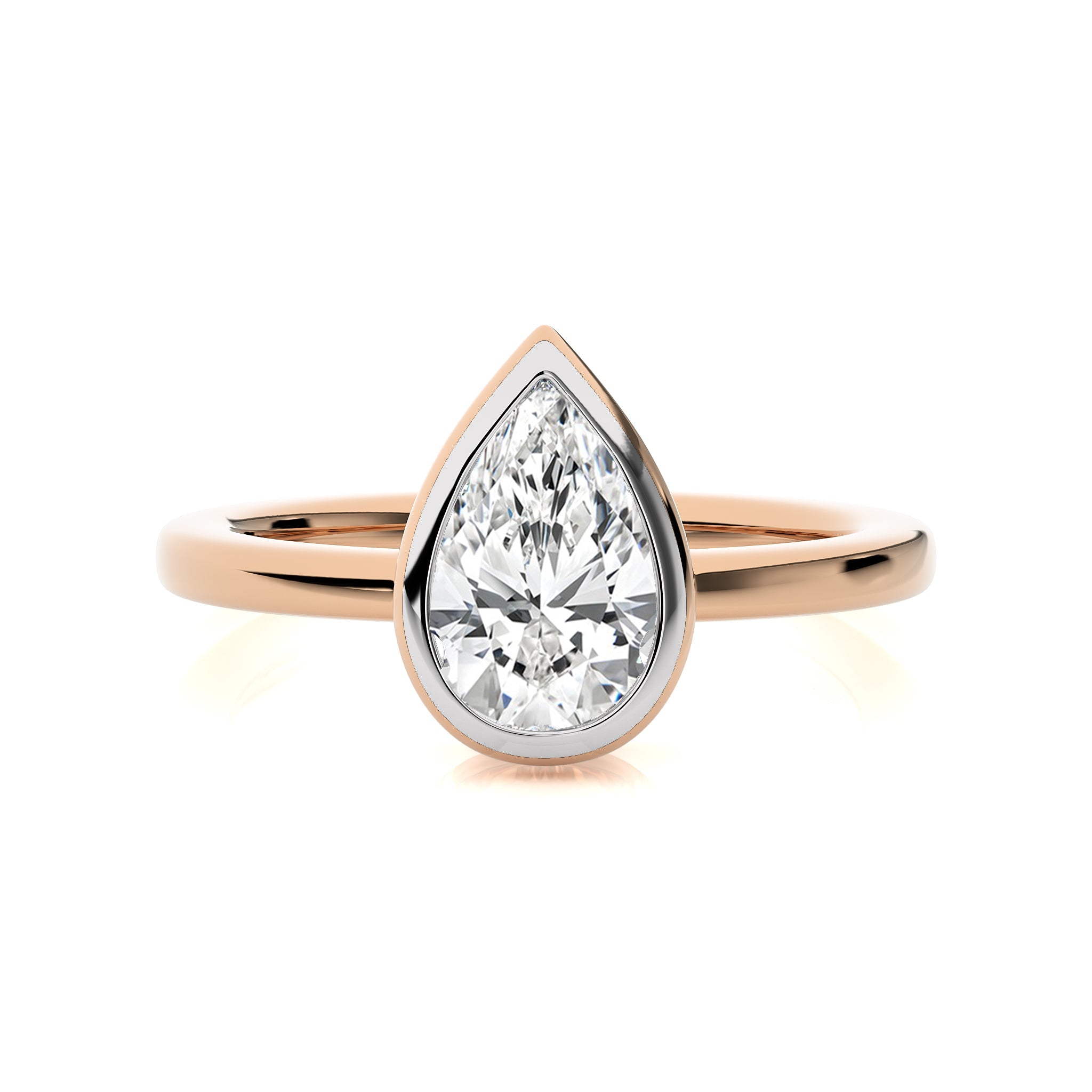 Elegantly featuring a stunning pear shaped available in lab created and natural diamond, this engagement ring is a testament to bespoke elegance with a secure bezel setting, Make this unique ring the centerpiece of your unforgettable moments