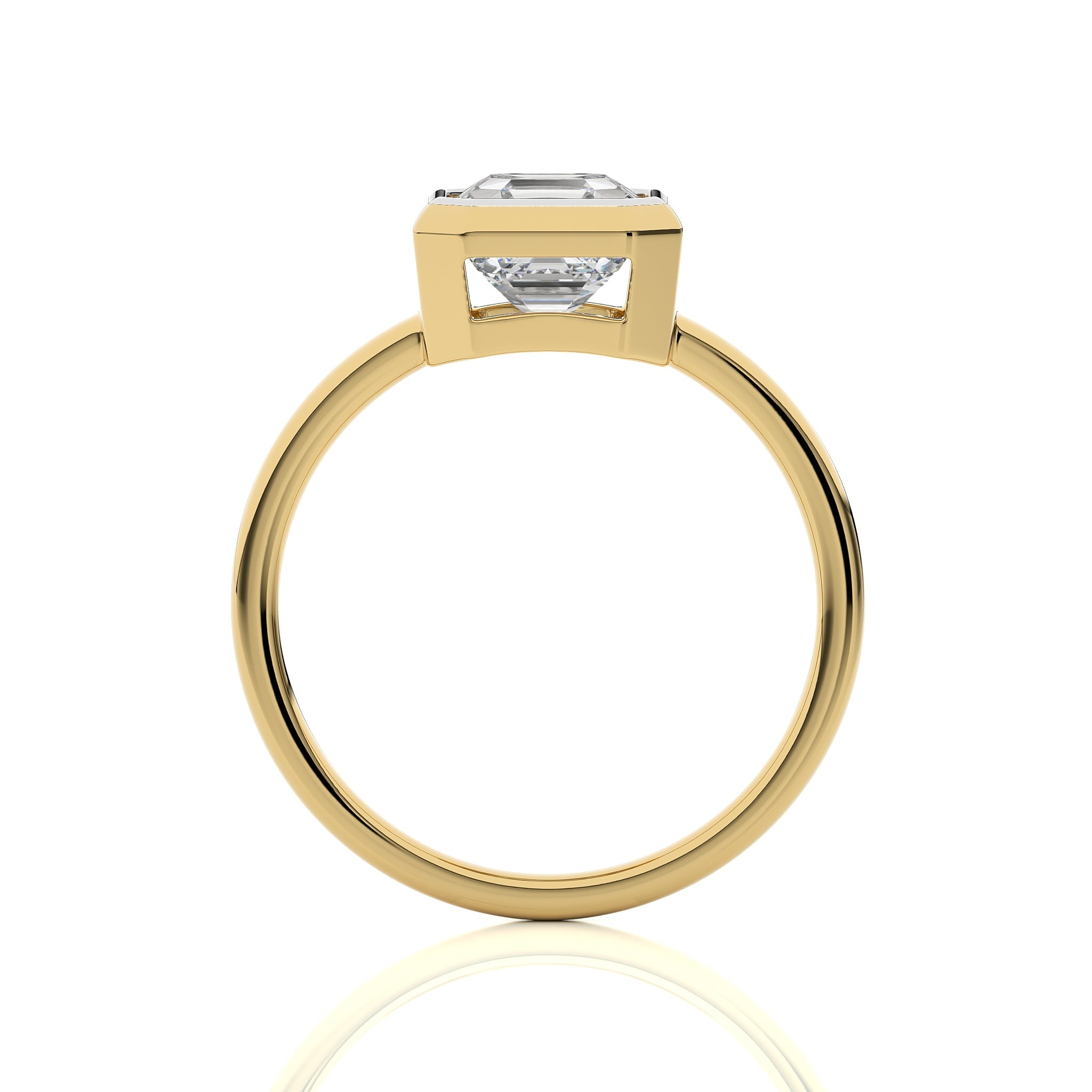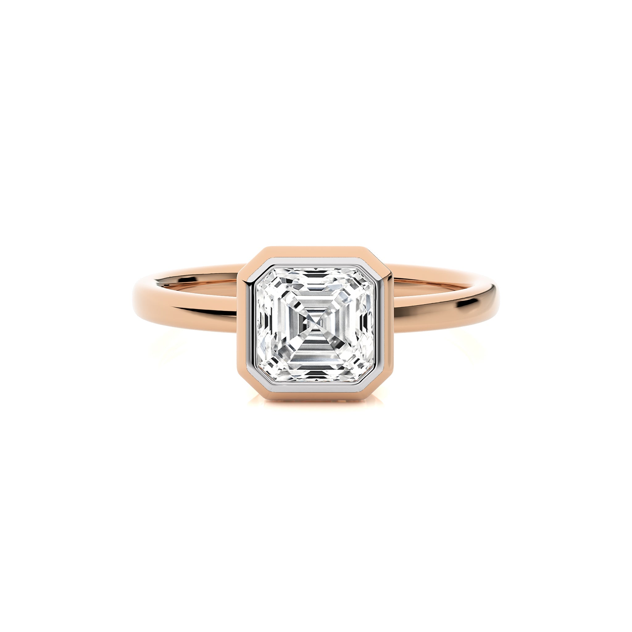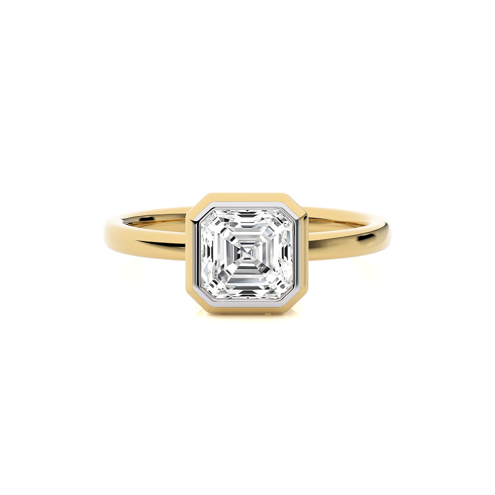 Elegantly featuring a stunning asscher shaped available in lab created and natural diamond, this engagement ring is a testament to bespoke elegance with a secure bezel setting, Make this unique ring the centerpiece of your unforgettable moments