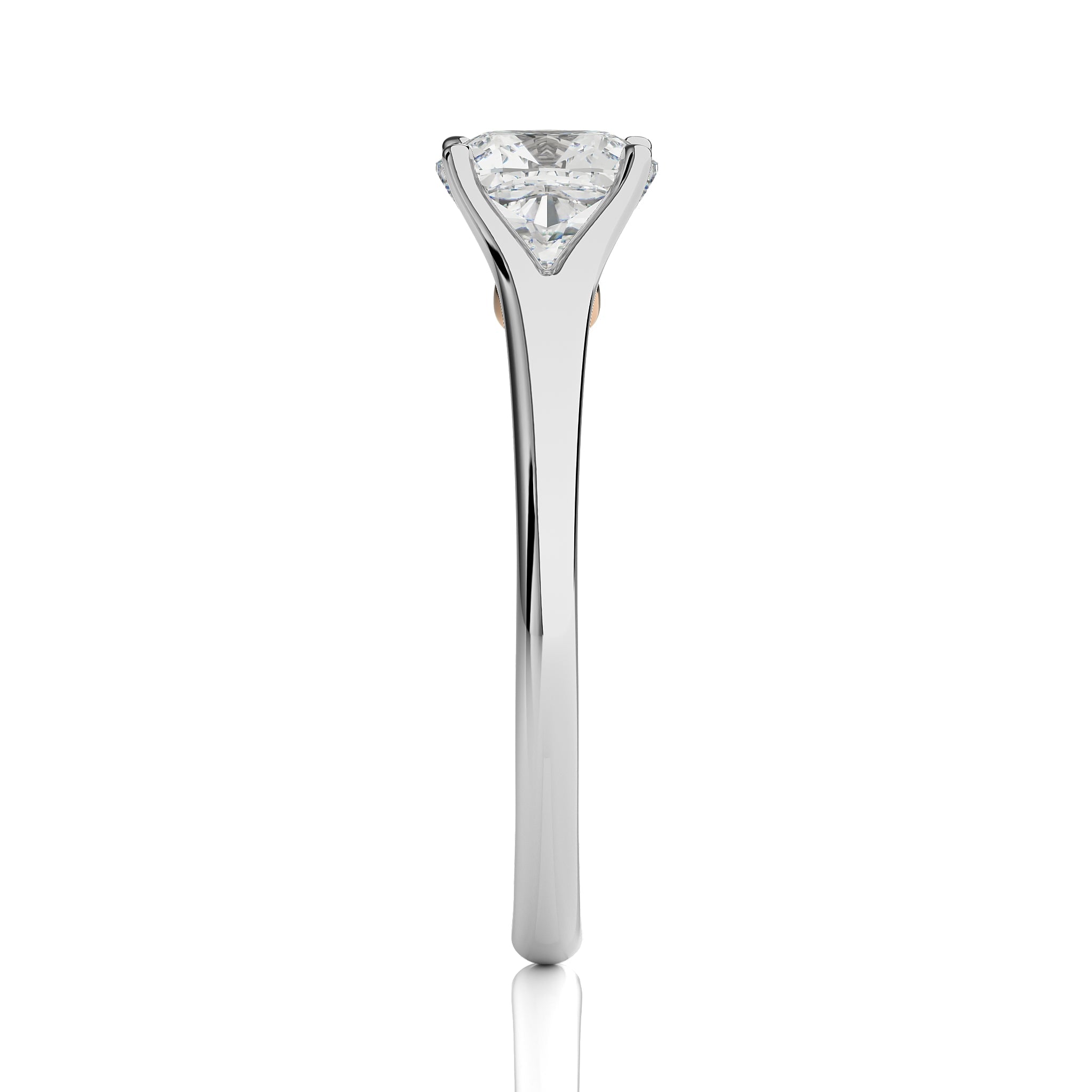 Discover celestial brilliance with this stunning ring available in cushion cut lab created and natural diamond set in a split shank design set in a classic prong setting, embodies both elegance and radiance. Let this ring be the perfect symbol of your eternal commitment