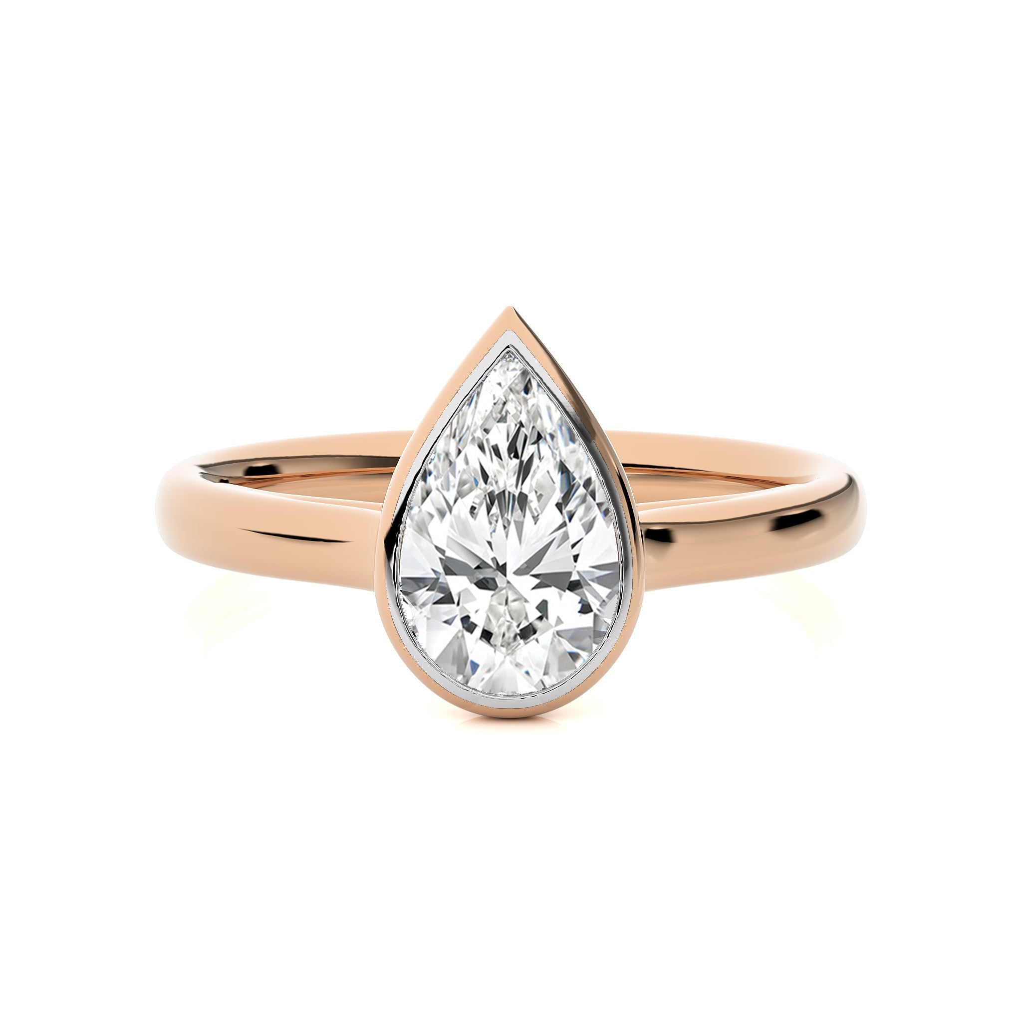 Featuring a captivating pear cut available in lab created and natural diamond, this ring is set in a sleek bezel design. The bezel setting adds a touch of modern elegance, while the diamond's radiant beauty embodies the promise of a future filled with love. Embrace the graceful horizon of your journey together with this timeless symbol of commitment