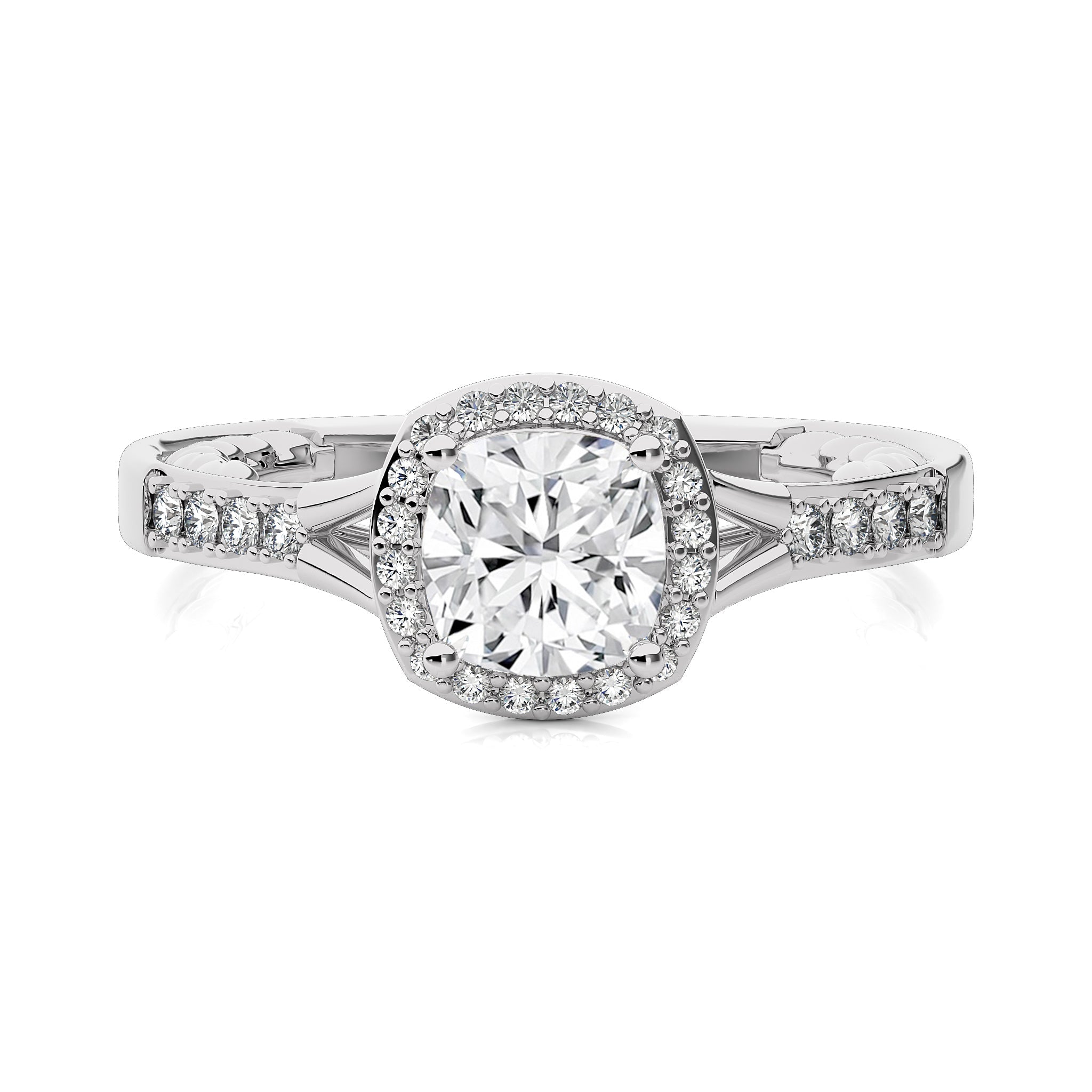 Split Bliss Cushion Diamond Halo Engagement Ring