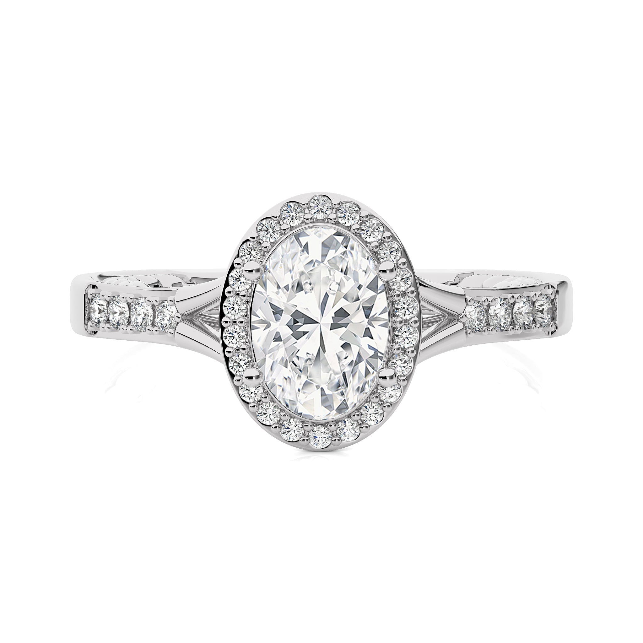 Split Bliss Oval Diamond Halo Engagement Ring
