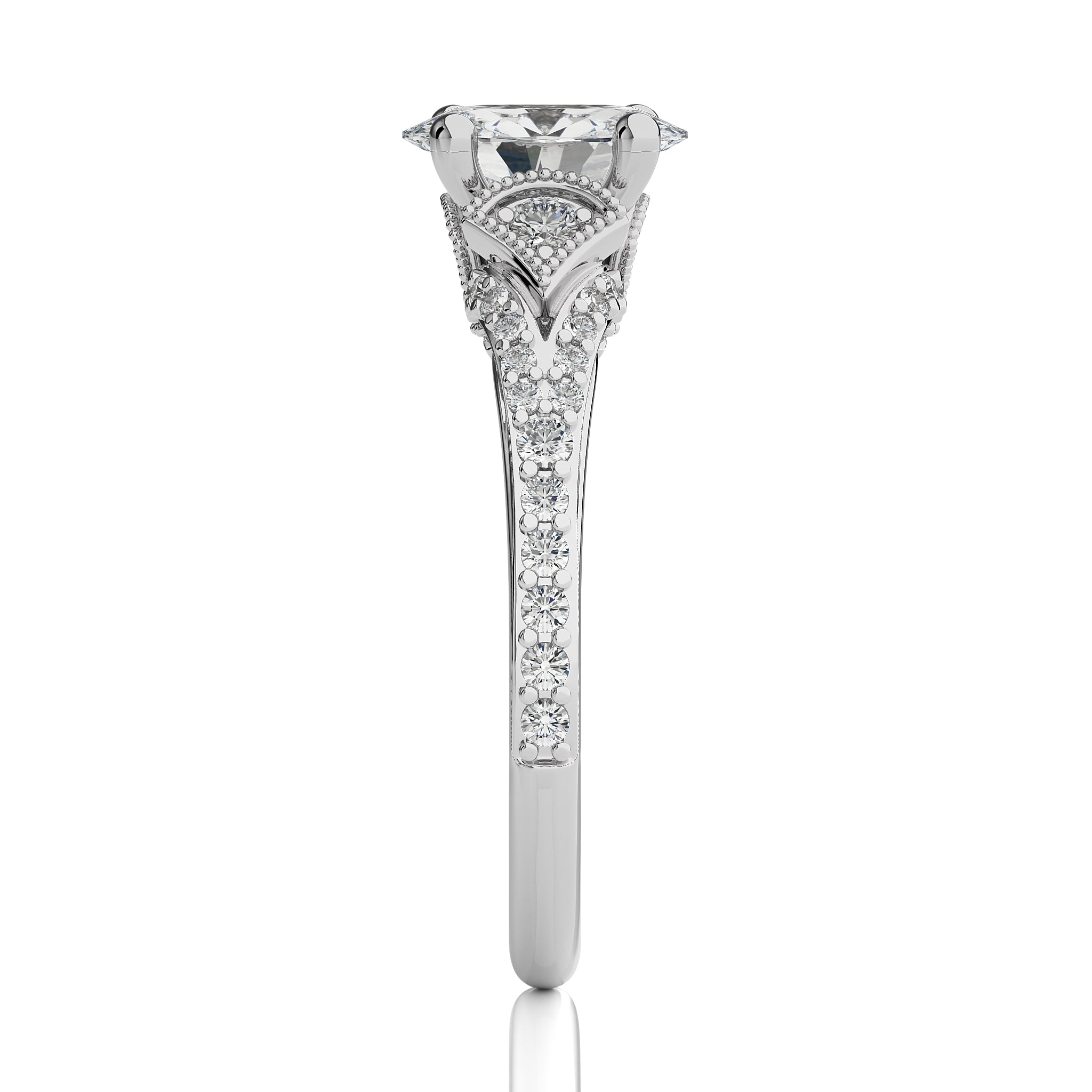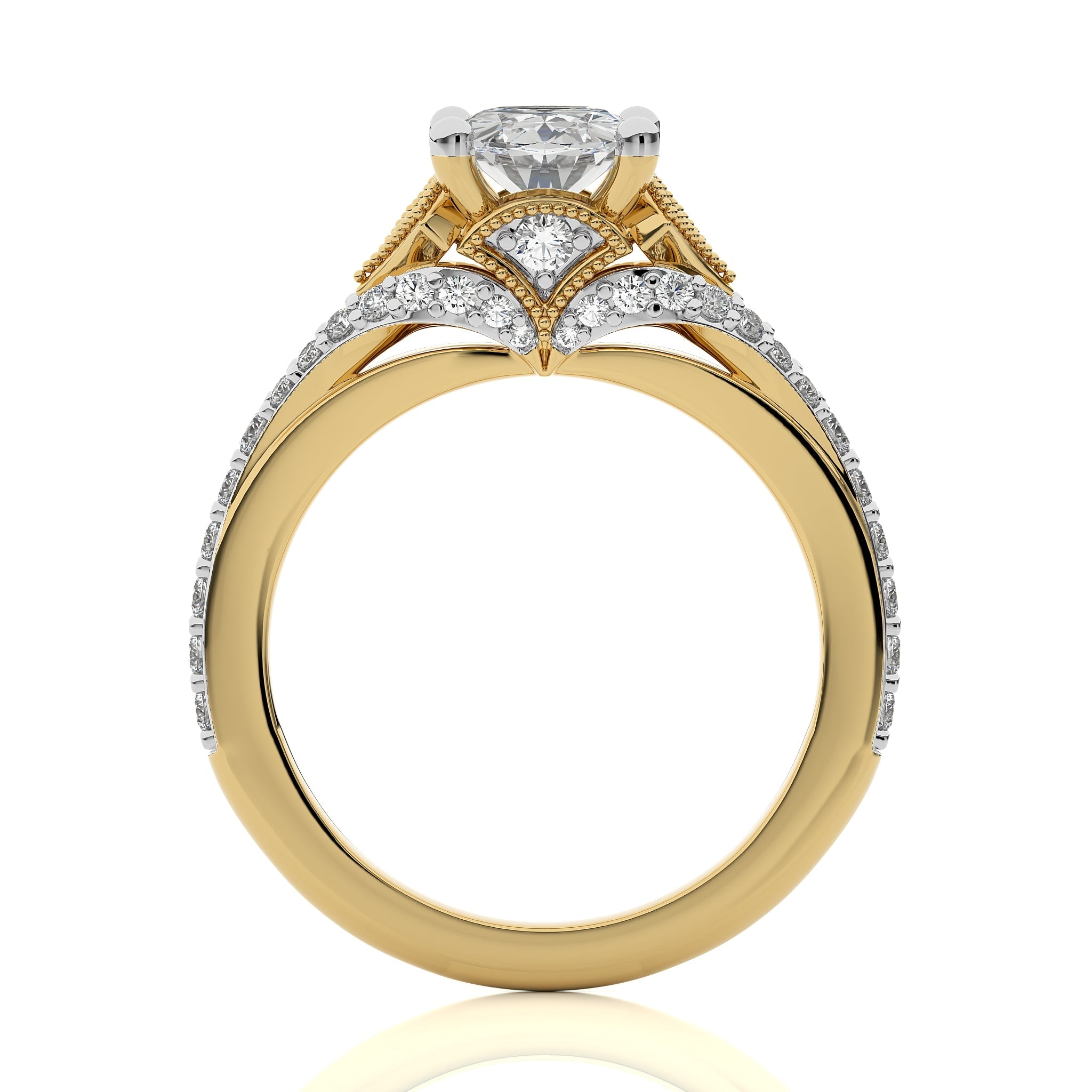 Behold the vortex of grace vintage split shank oval cut available in lab created and natural diamond engagement ring set in both prong and pavé settings. Embrace the elegance of this ring as a symbol of your lasting love