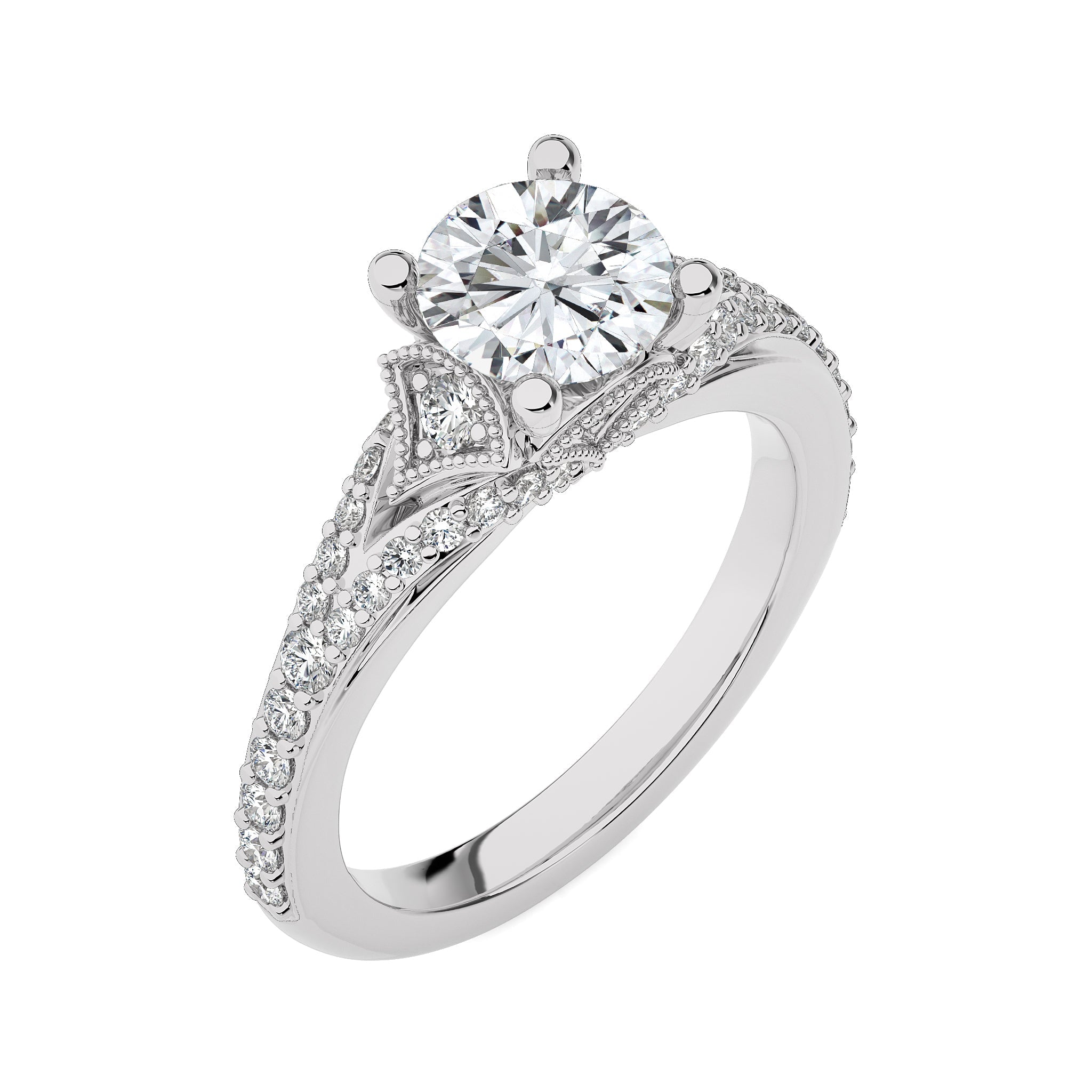 Vortex of Grace Vintage Split Shank Round Diamond Engagement Ring