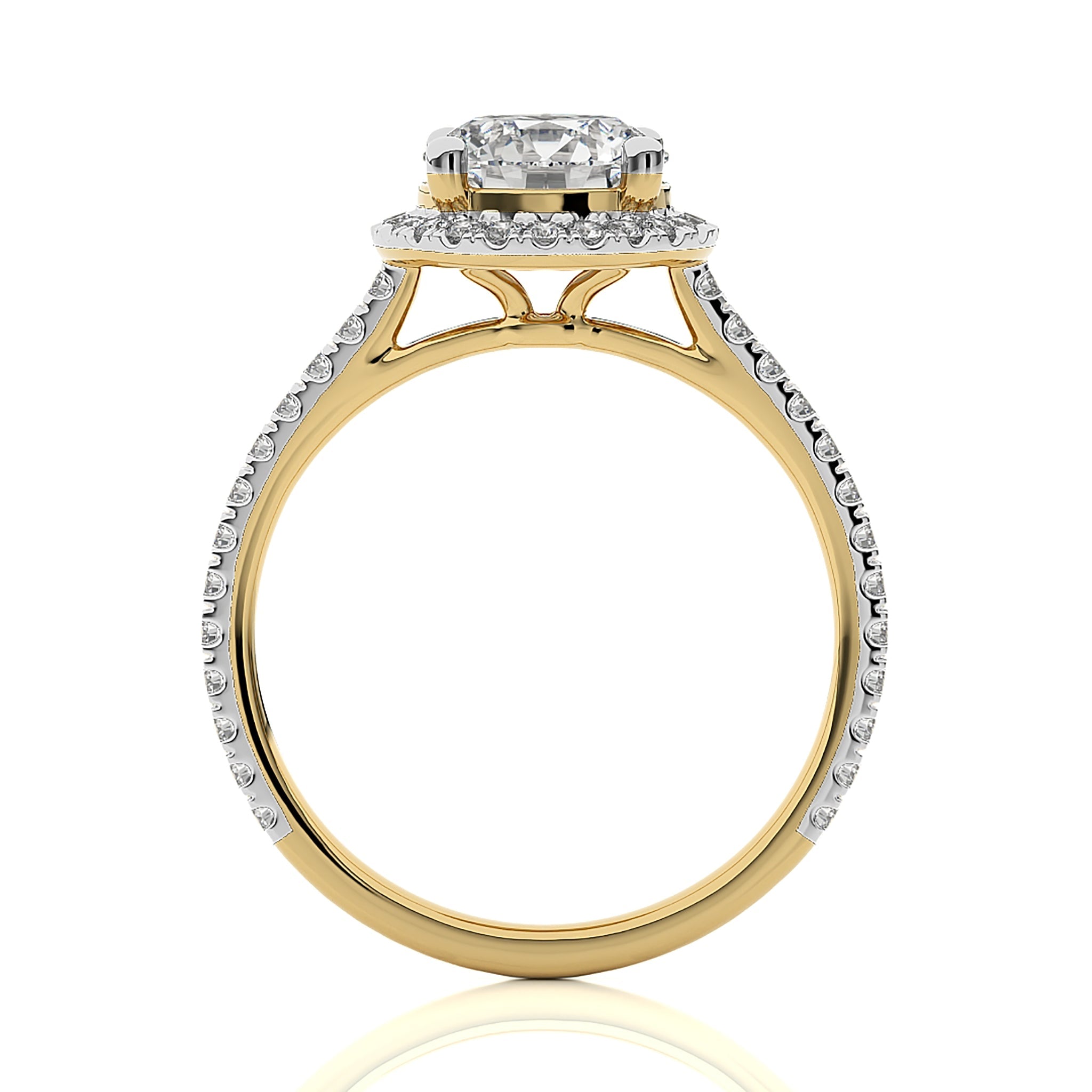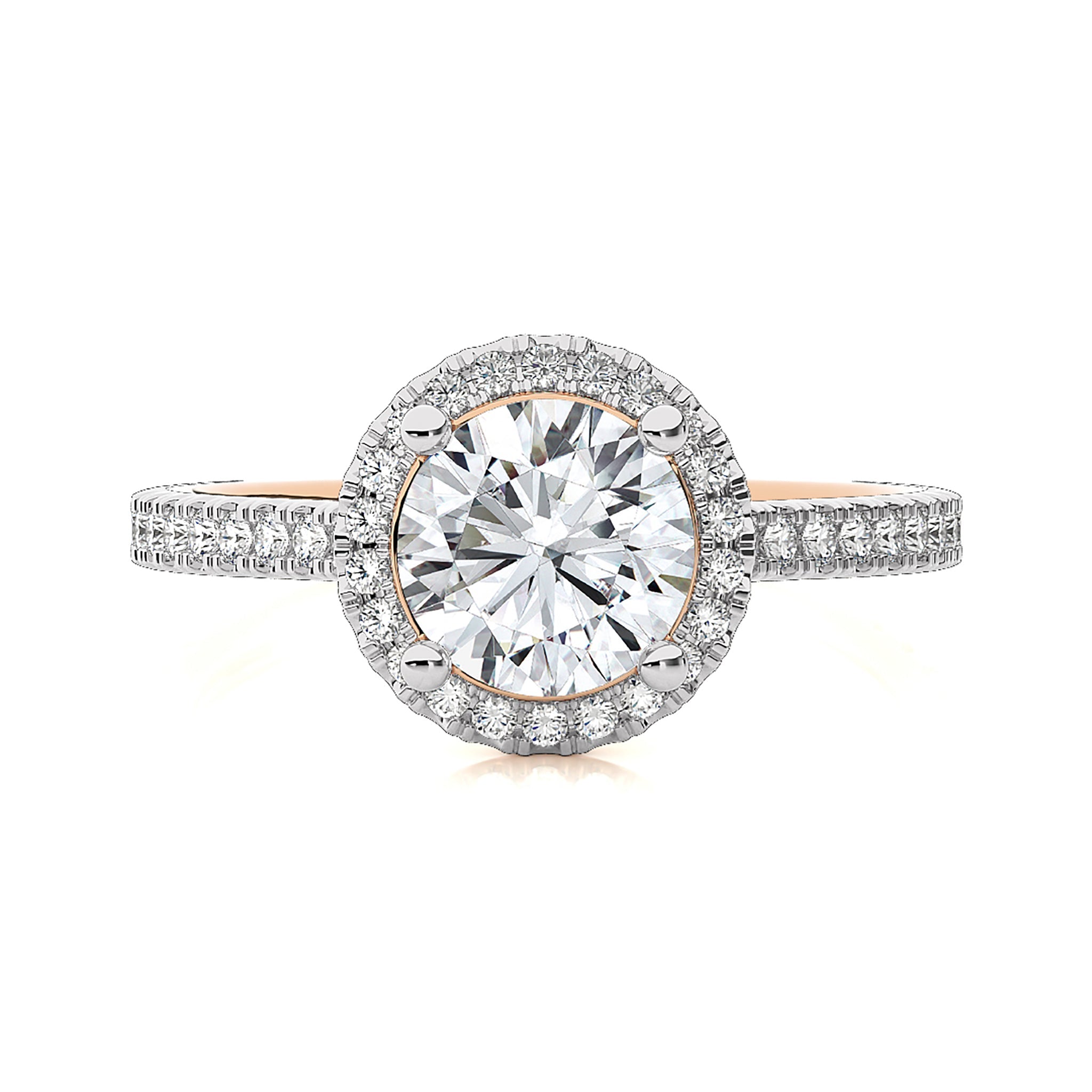 Immerse yourself in the artistry of love with our Artsy Bazal Halo Diamond Engagement Ring. Intricately designed and set in a combination of micro split and prong settings, this classic masterpiece is a testament to timeless elegance.