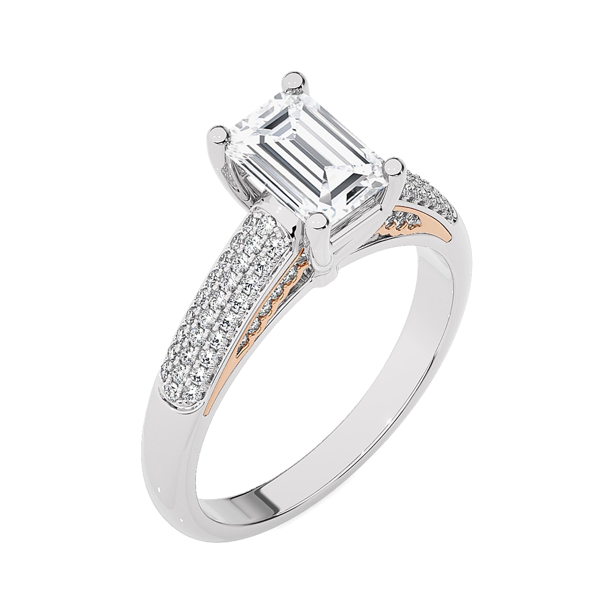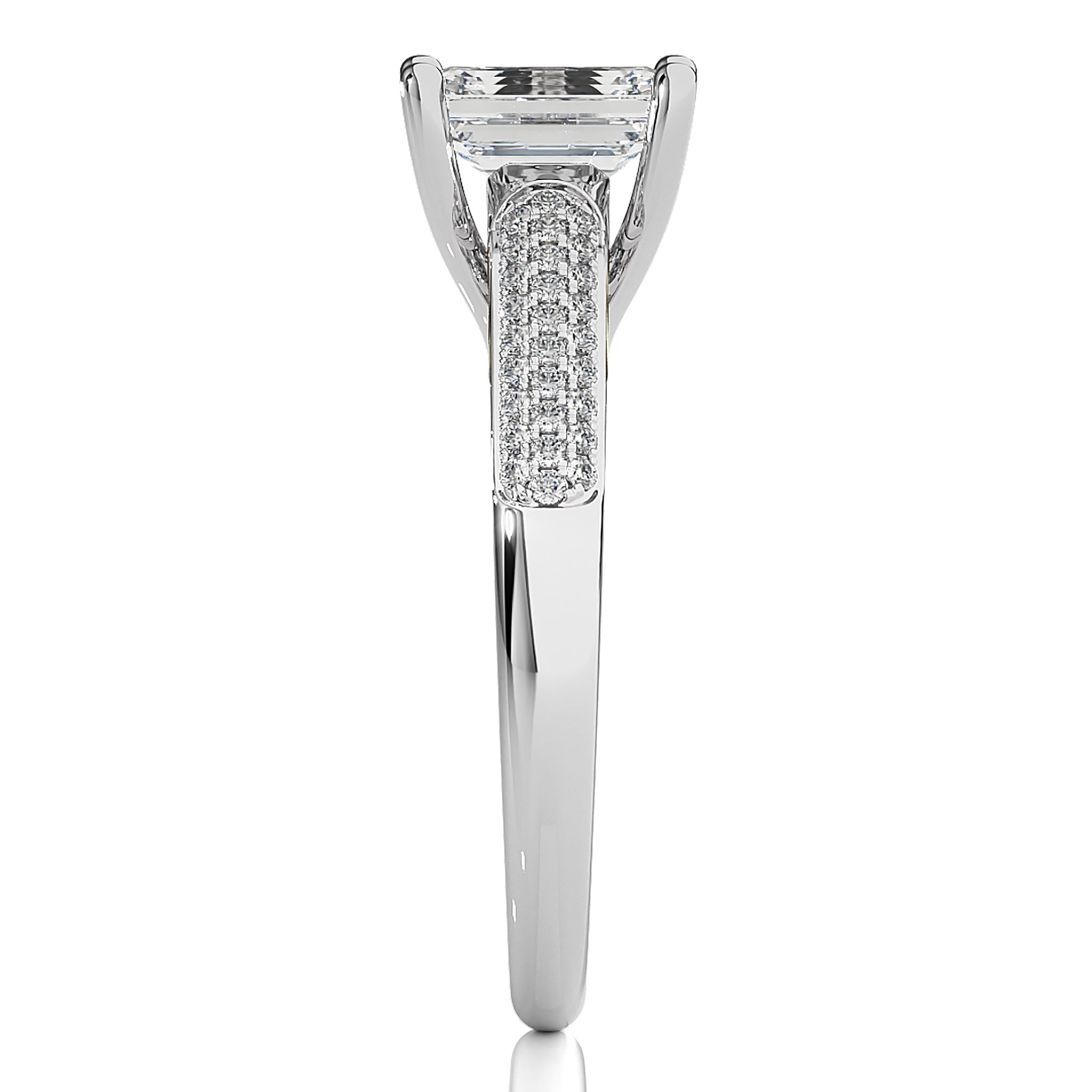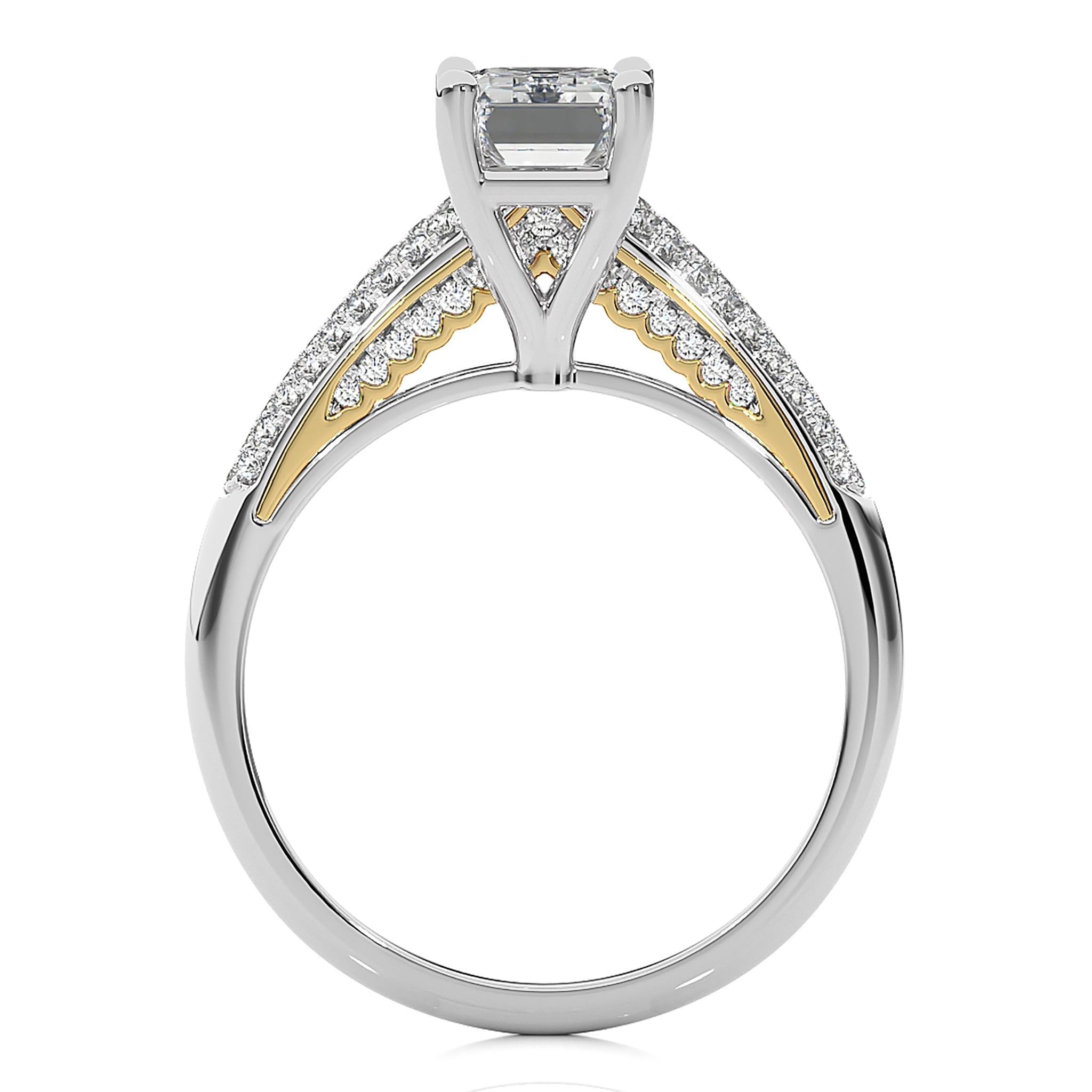 Experience modern elegance with our Contemporary Solitaire Diamond Engagement Ring. Set in a seamless combination of pave and prong settings,capturing the beauty of a love that thrives in the present moment. Elevate your commitment with this timeless and refined engagement ring.