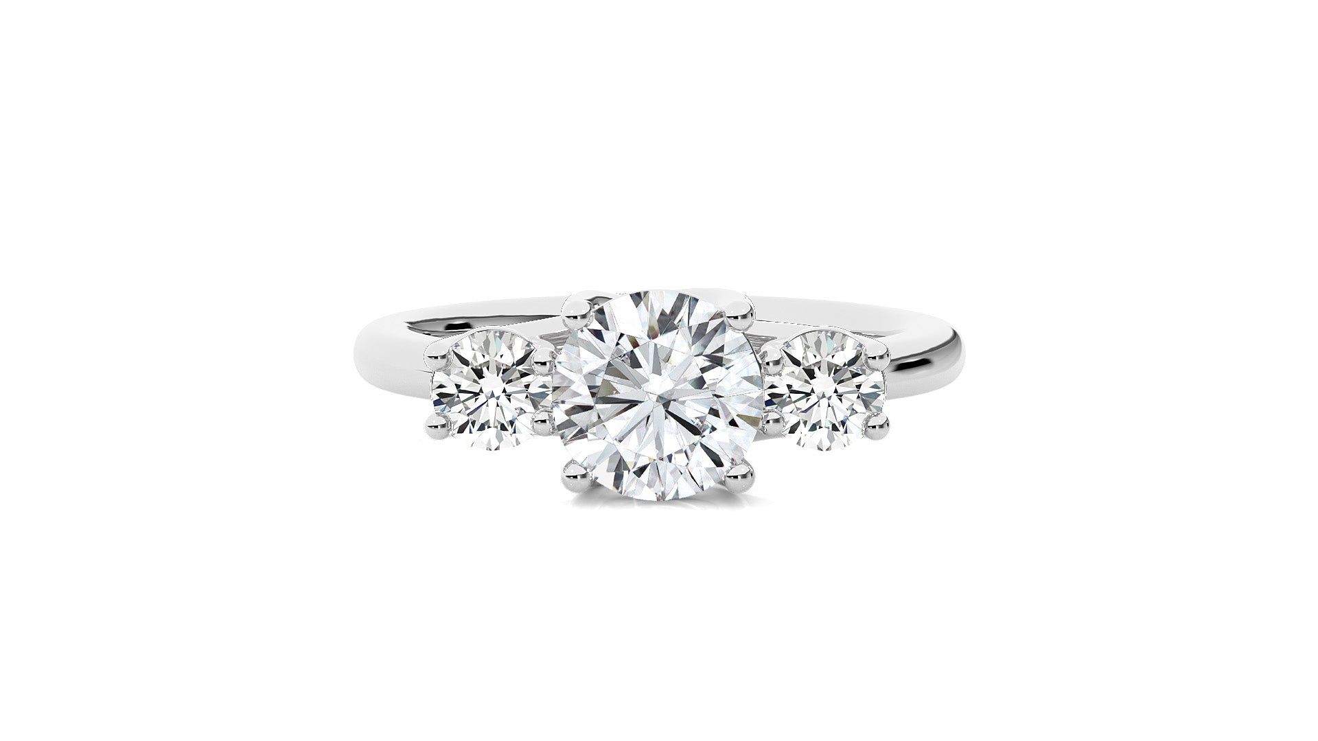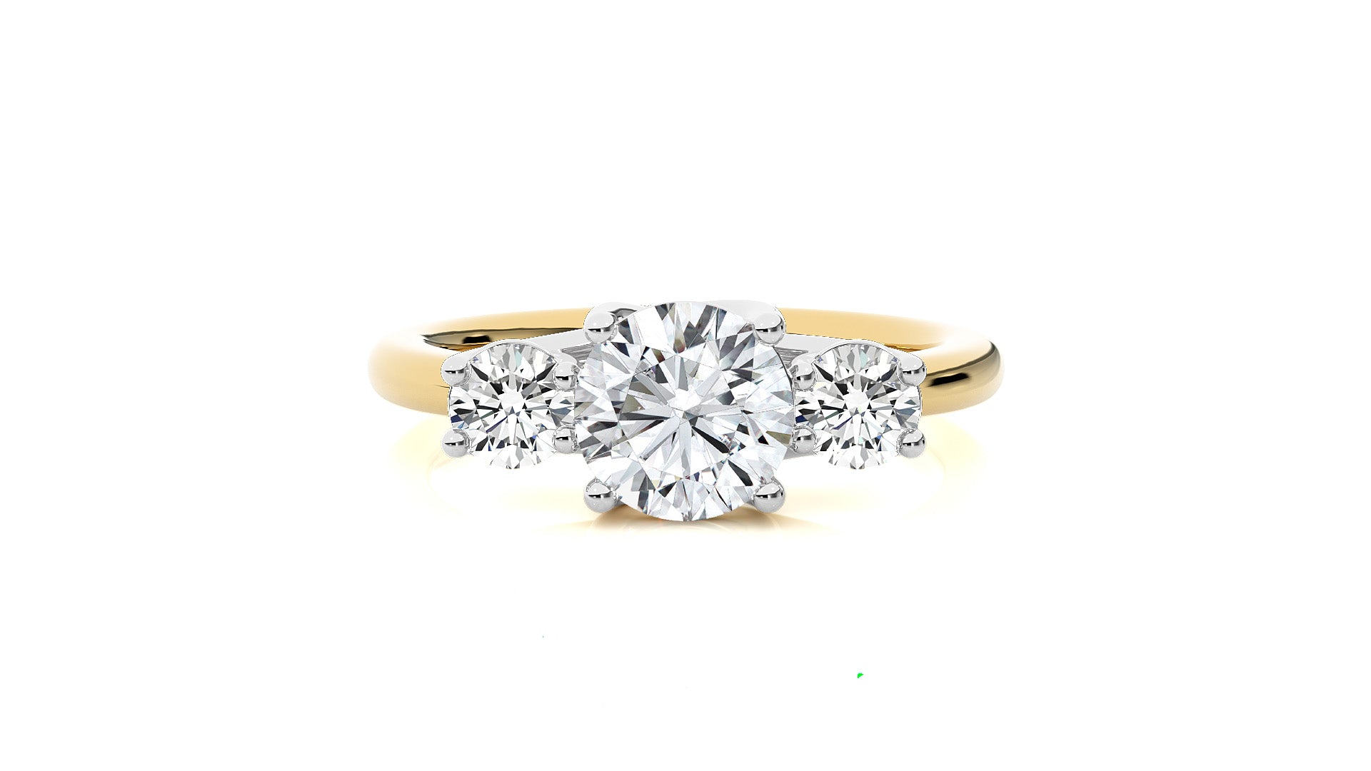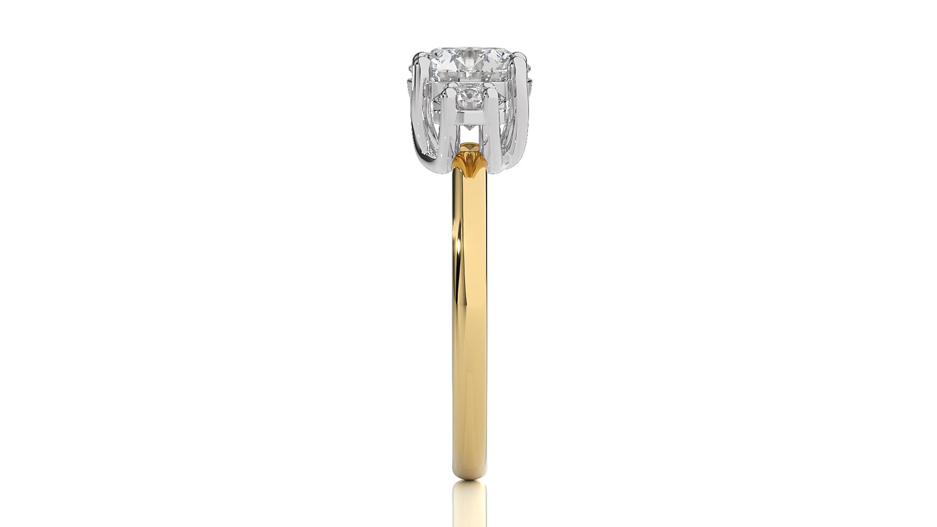 Celebrate your love story with our Classic Three-Stone Diamond Engagement Ring. Meticulously set in a harmonious combination of pave and prong settings, this timeless piece symbolizes the past, present, and future of your enduring commitment.