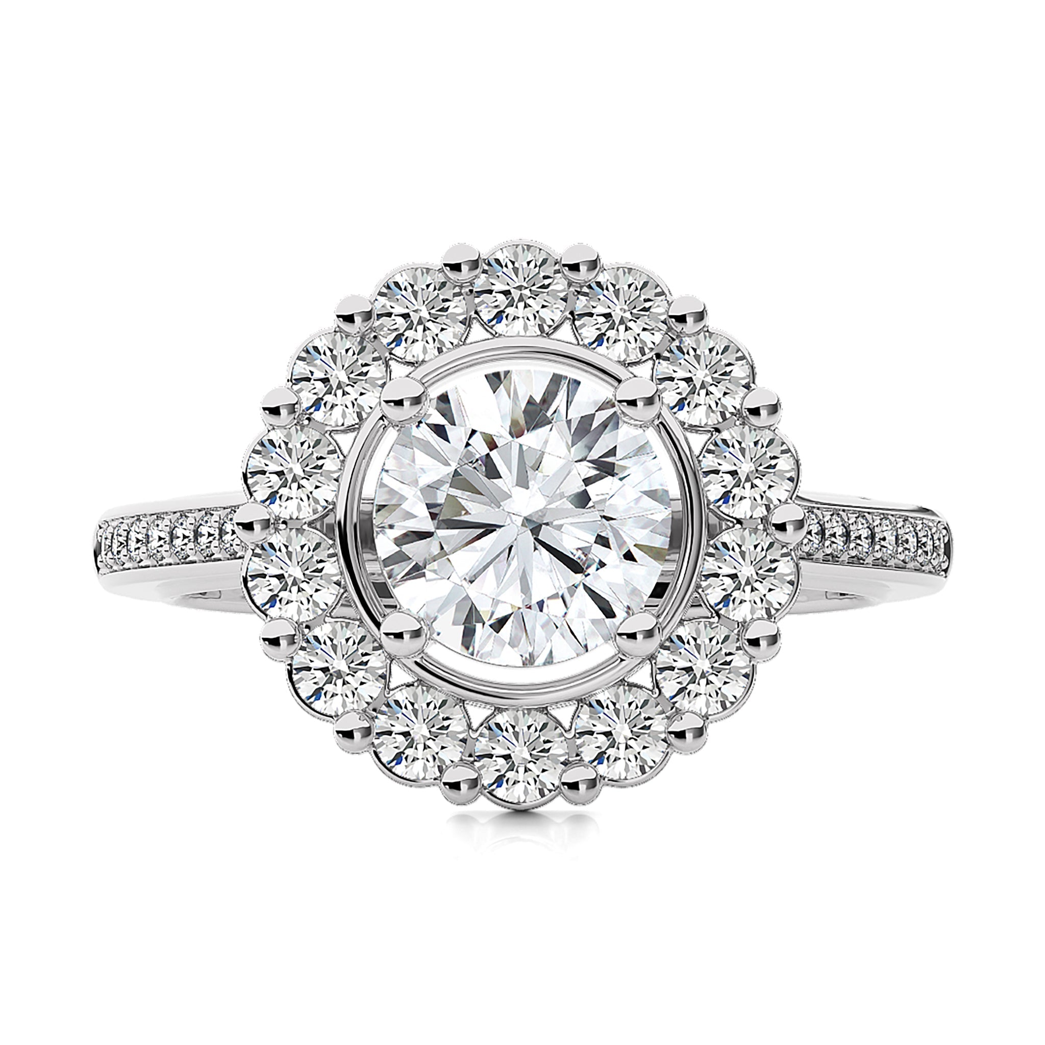 Gerbera Bloom Bazel and Halo Diamond Engagement Ring