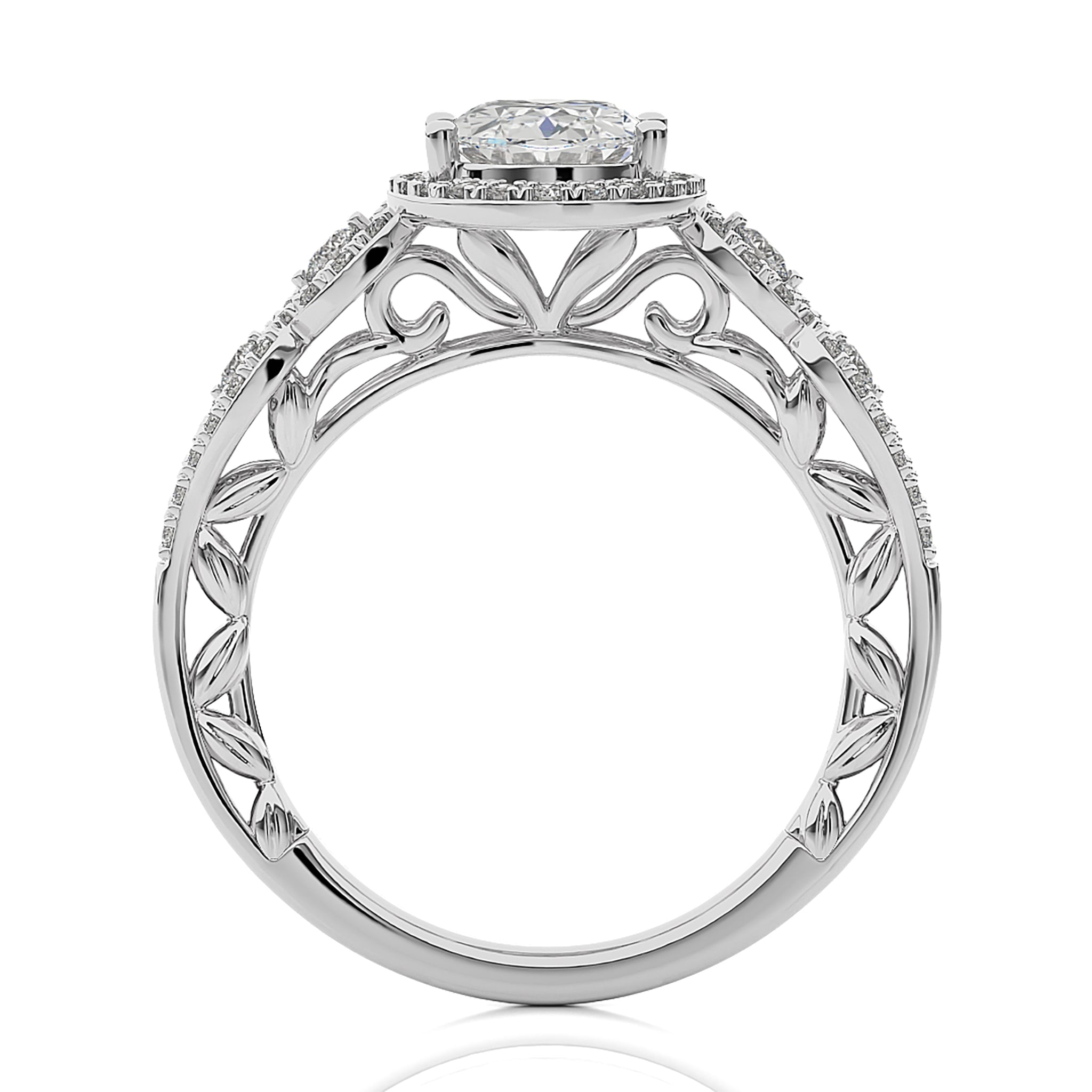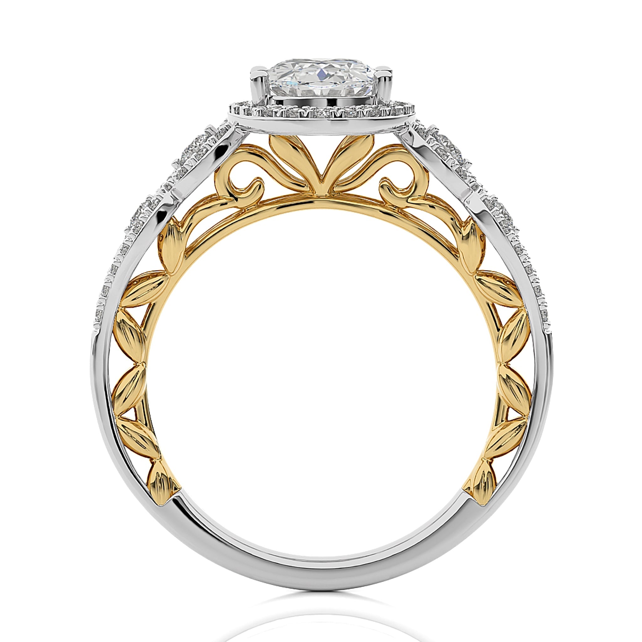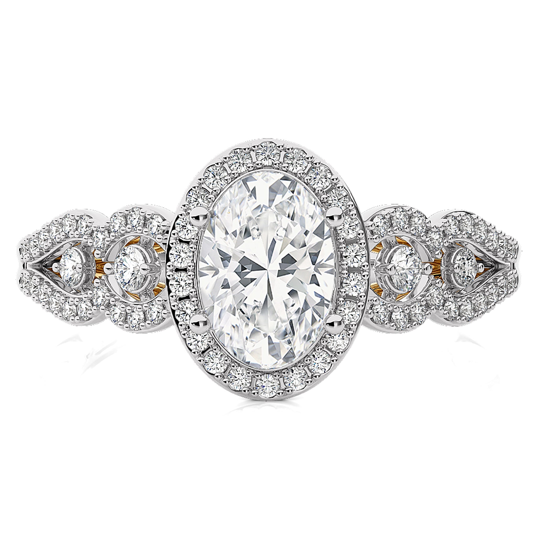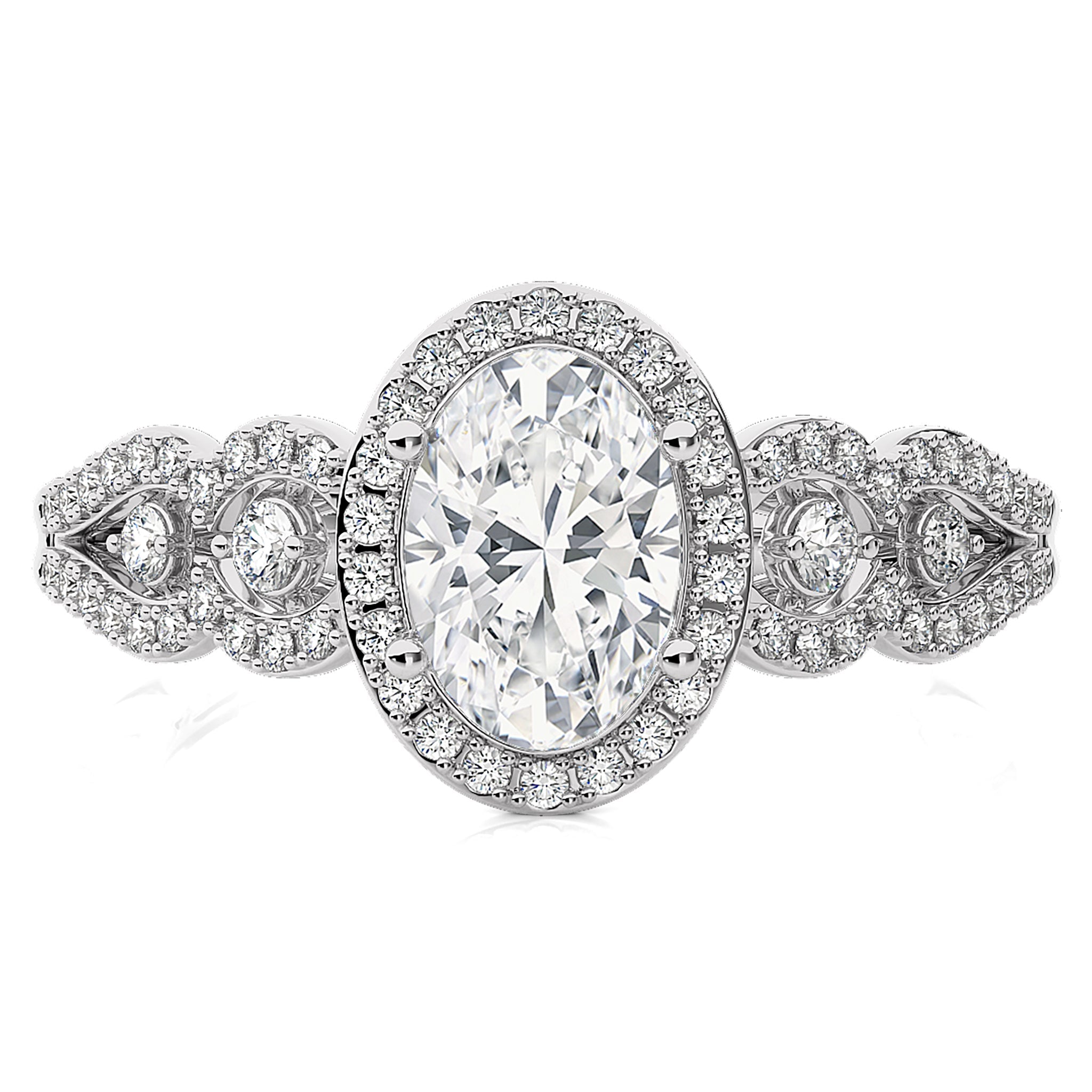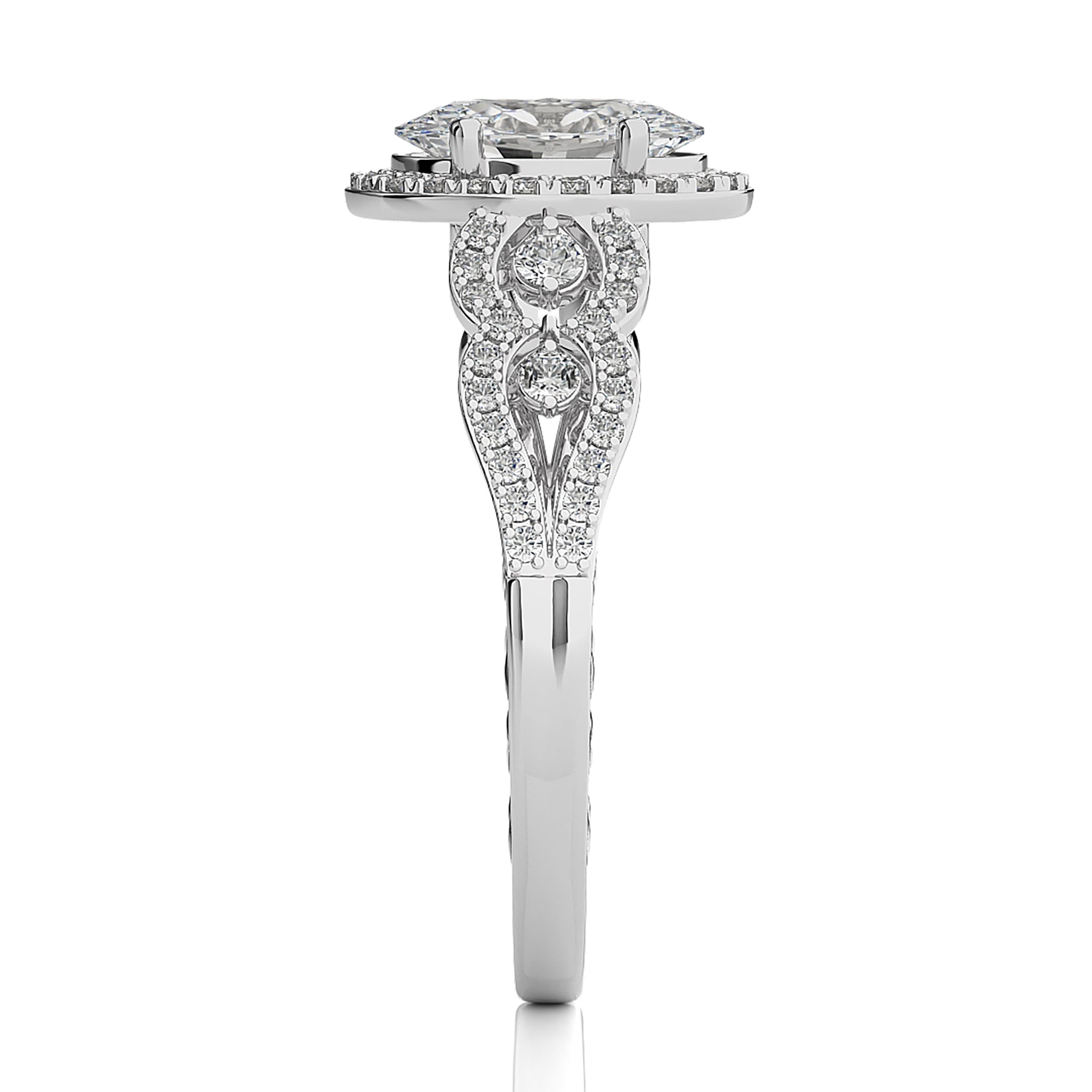 Constellation Swirl Double Split Shank Diamond Bazel and Halo Engagement Ring