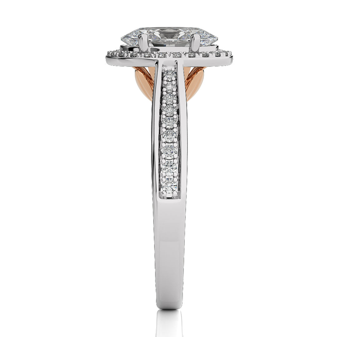 Adorn your love story with the Starburst Nebula Bazal Halo Diamond Engagement Ring. Crafted with micro prong, pave, and prong settings, this classic piece radiates celestial charm. The dazzling halo enhances the brilliance, symbolizing a timeless union of love and elegance.