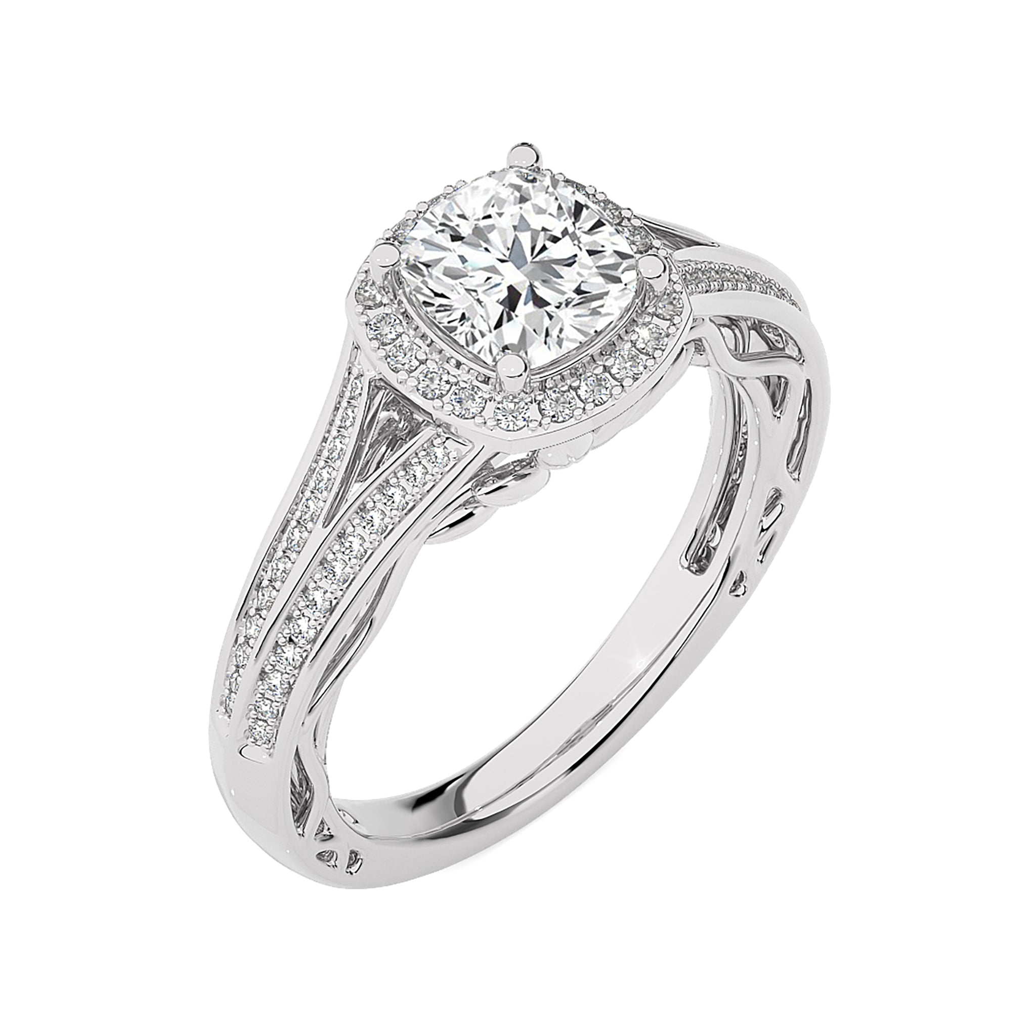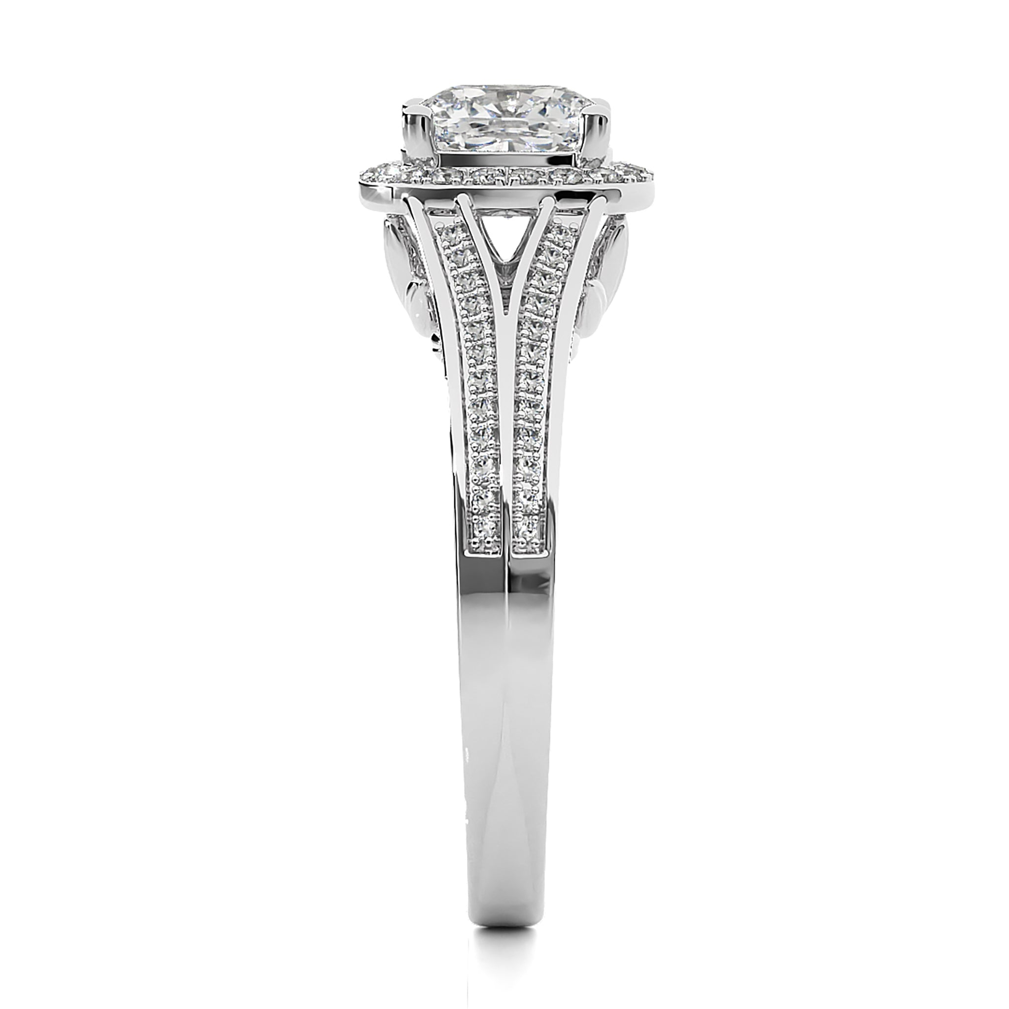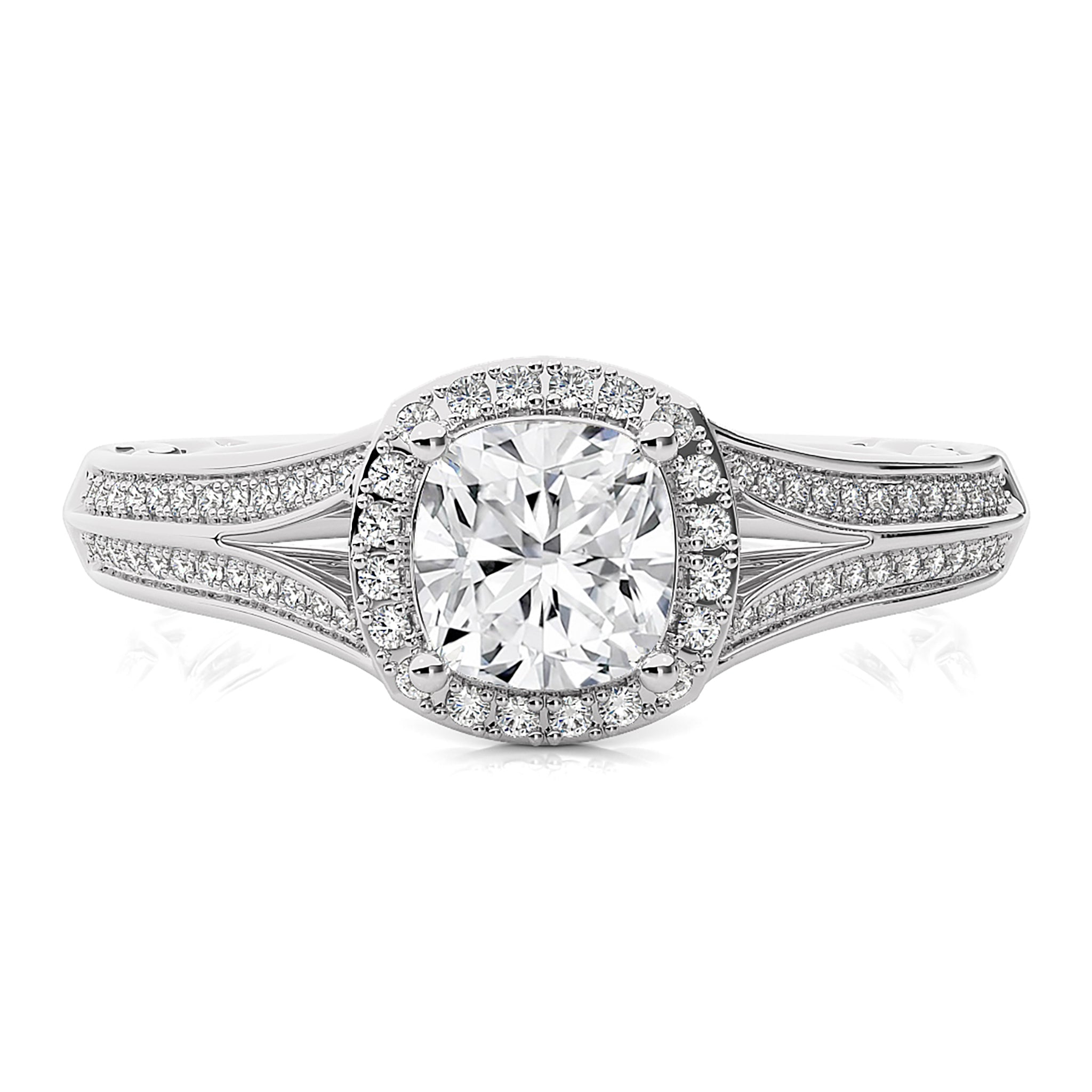Aureola Split Shank Bazel Halo Diamond Engagement Ring