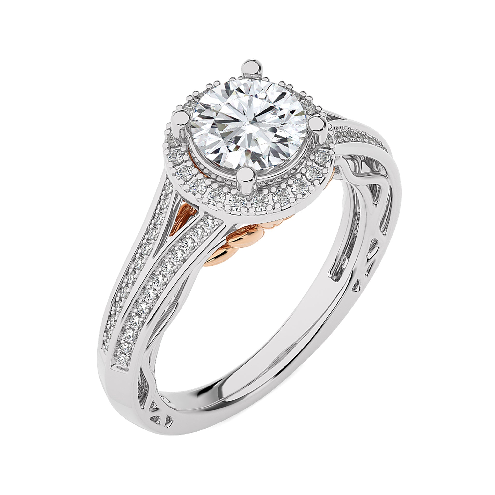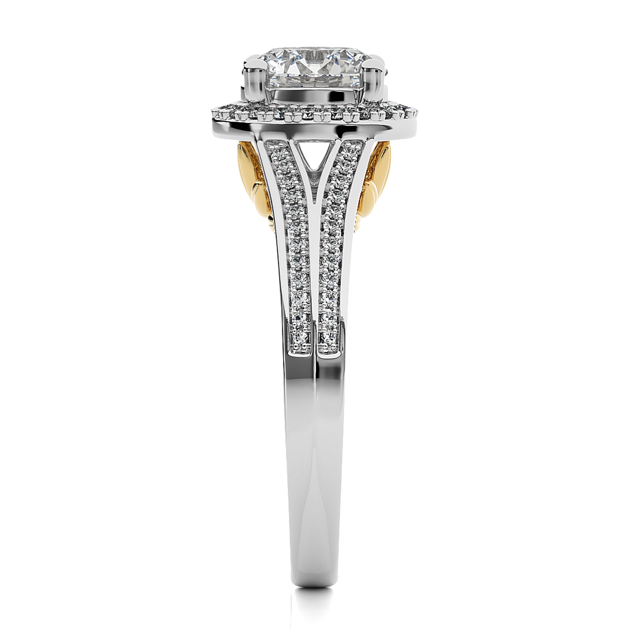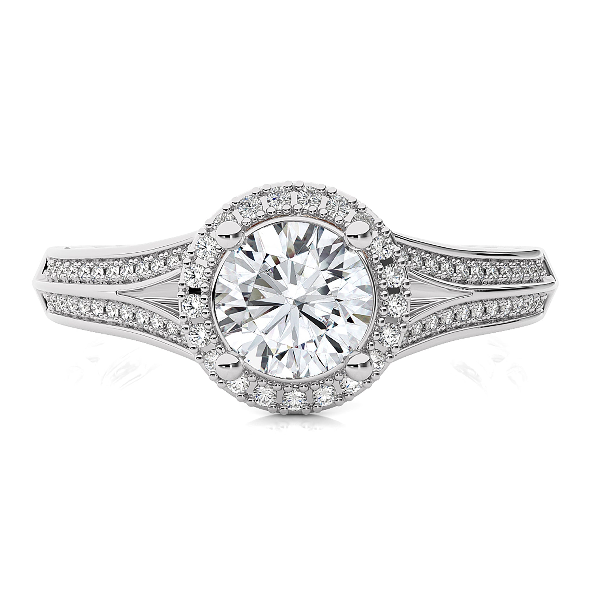 Aureola Split Shank Bazel Halo Diamond Engagement Ring