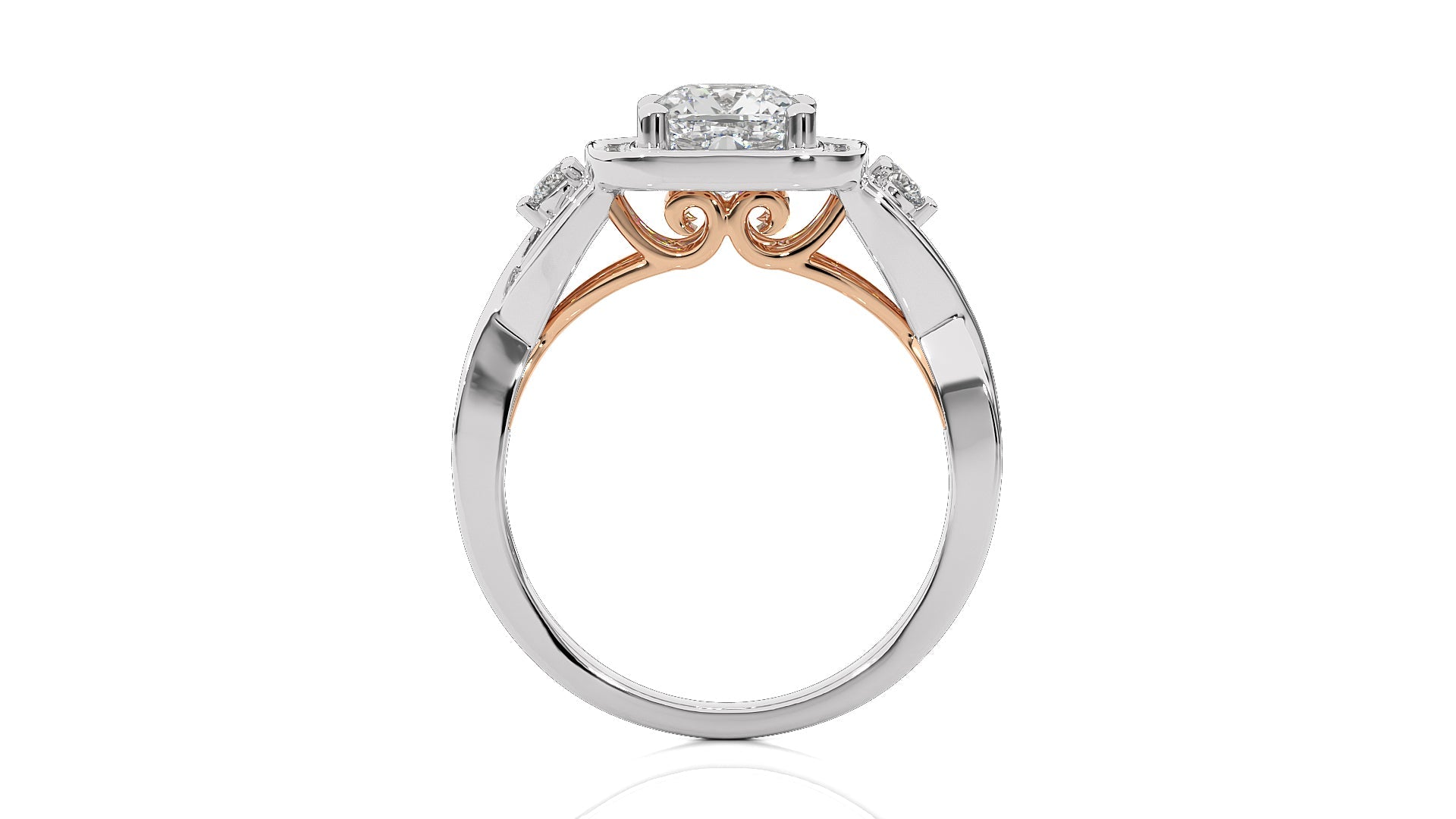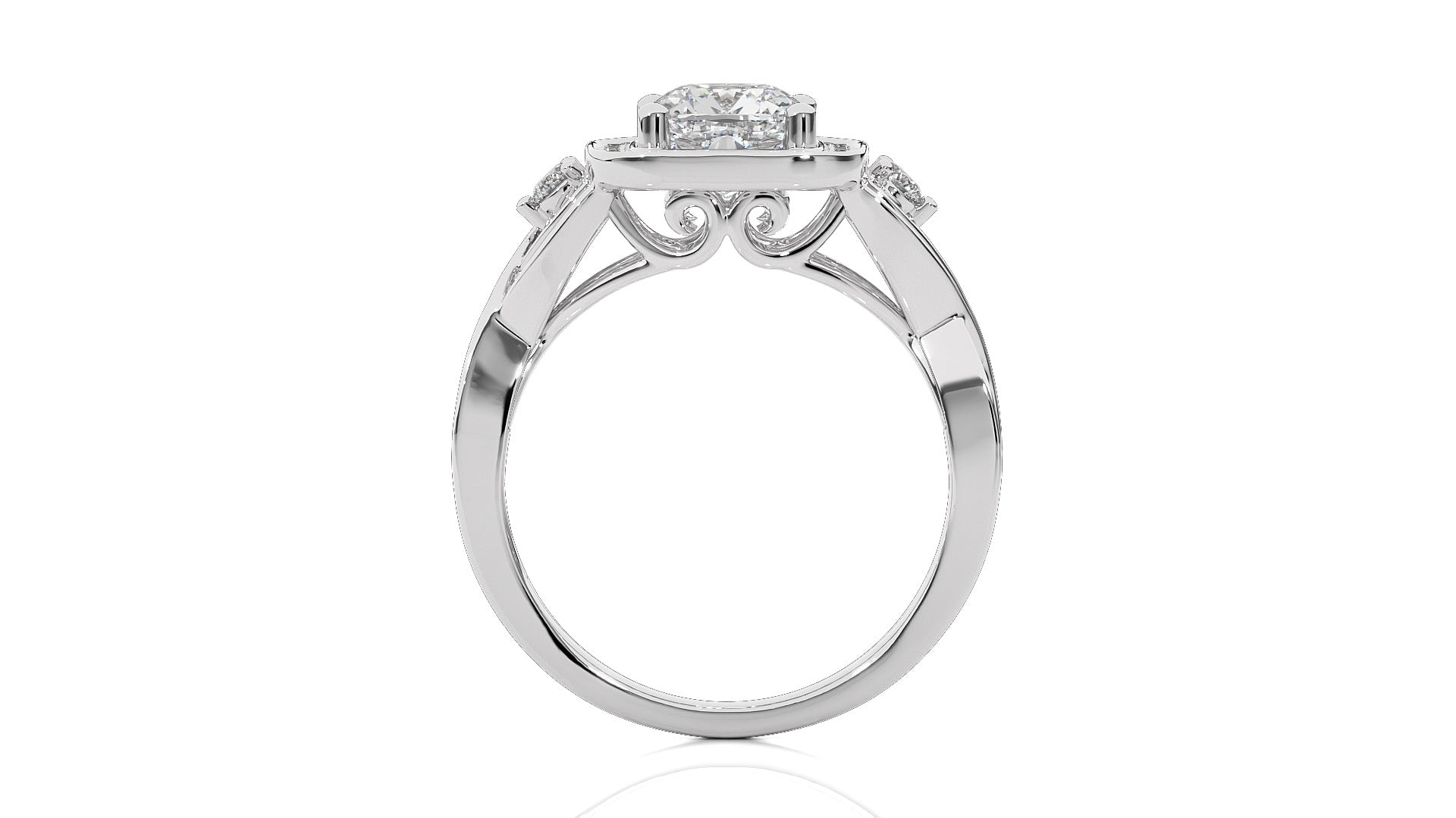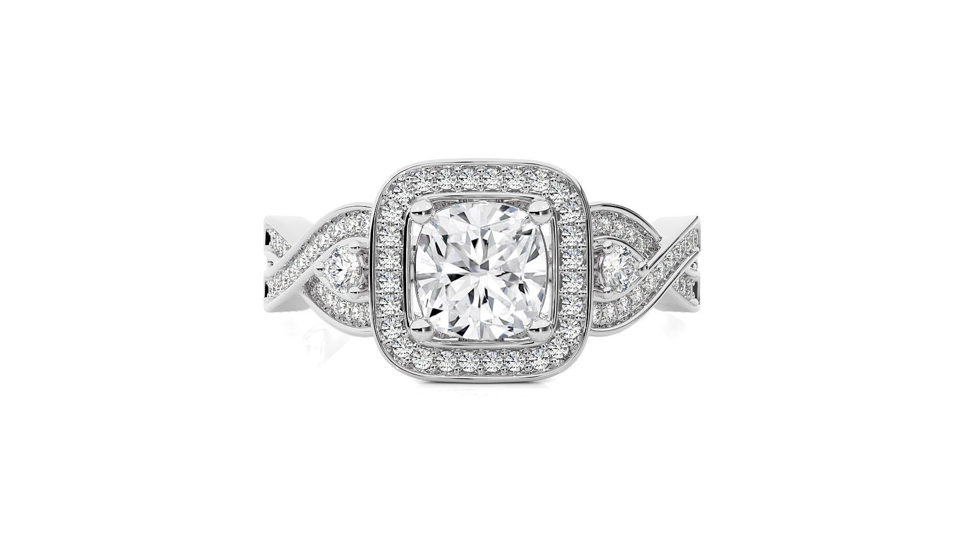 Classic Nimbus Double Twist Split Shank Halo Diamond Engagement Ring