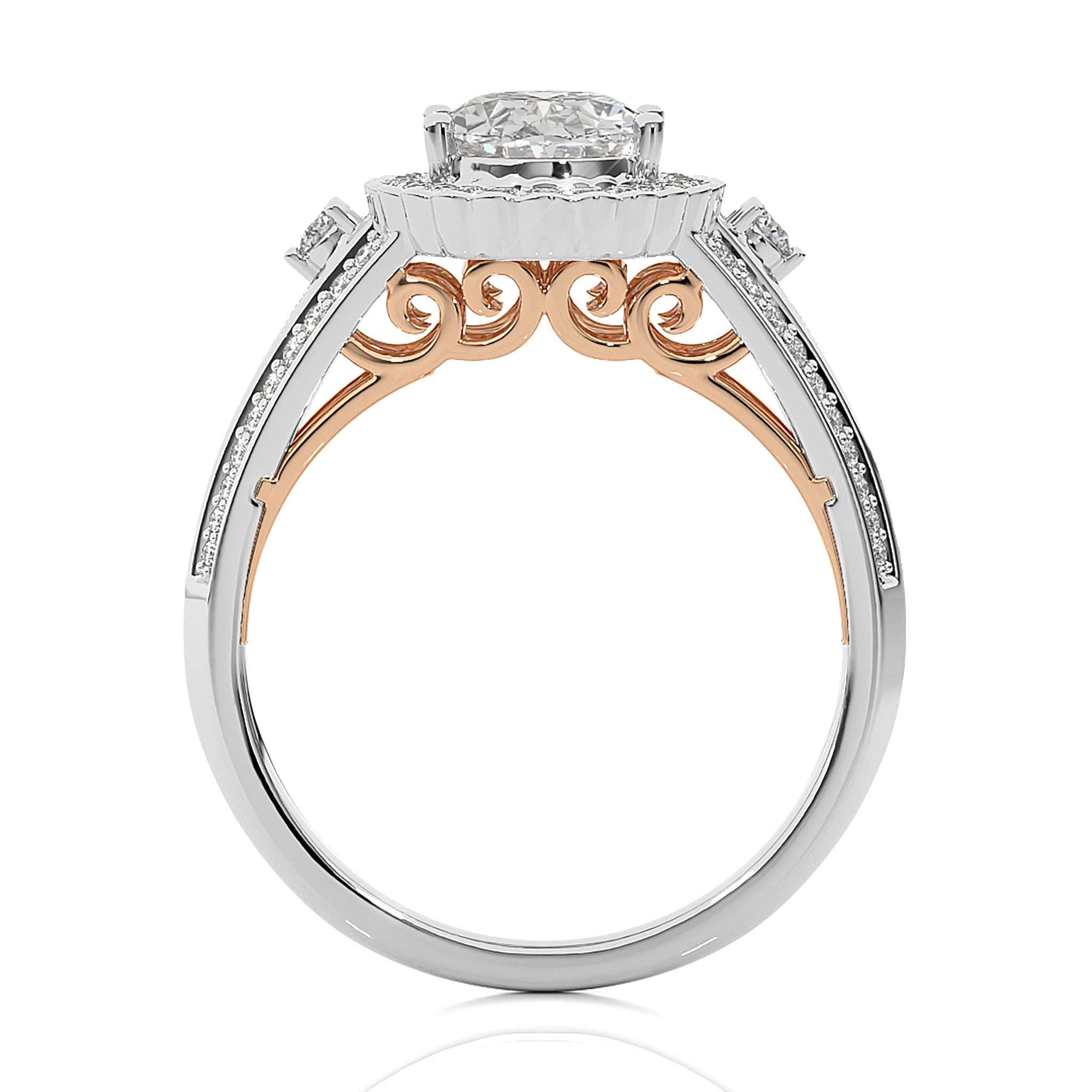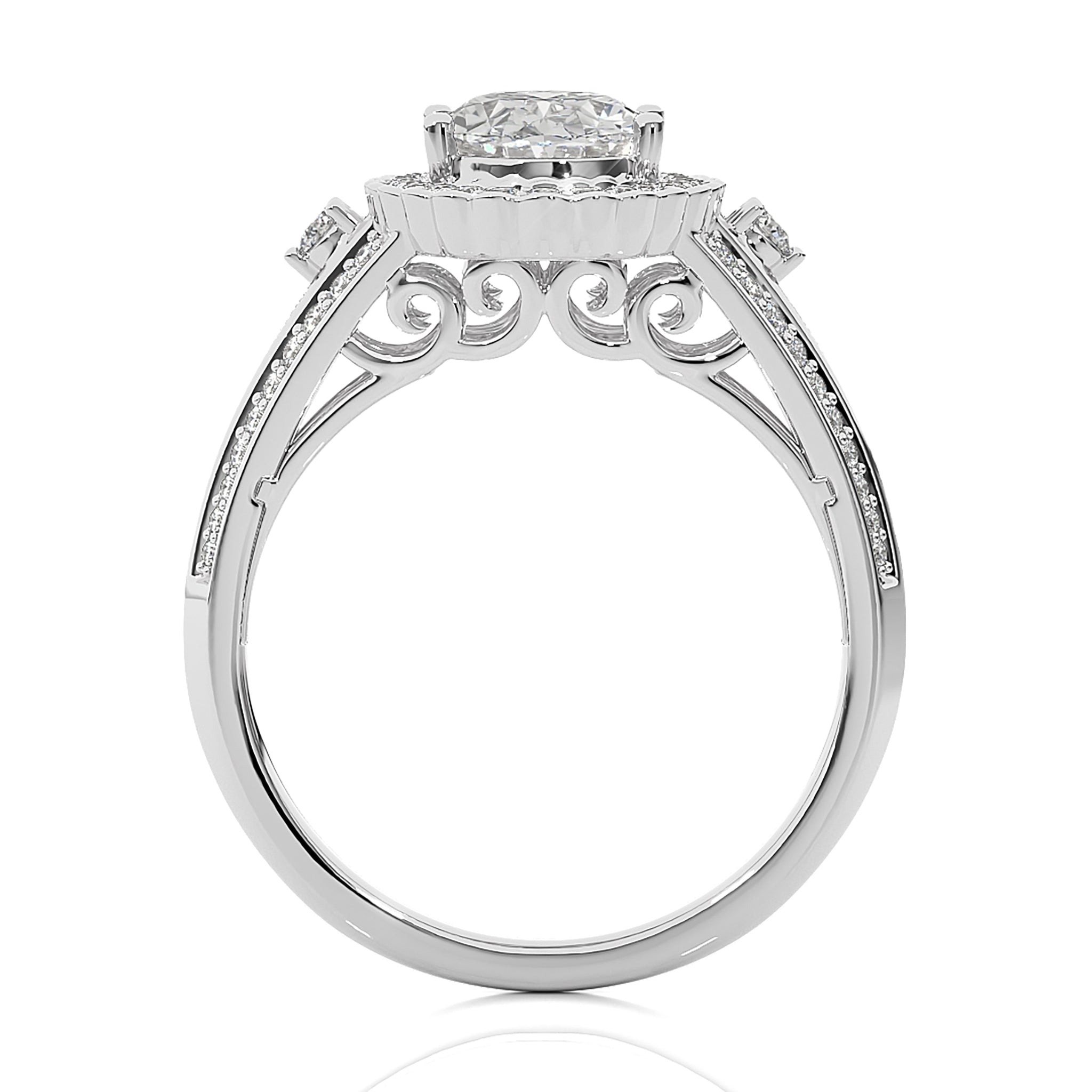 Commence on a journey of everlasting love with our Starburst Double Row Split Shank Diamond Halo Engagement Ring. Meticulously crafted in a blend of prong and pave settings, this enchanting piece radiates celestial allure. Each shimmering detail mirrors the infinite bond shared between two hearts, promising a future adorned with brilliance and enduring commitment.