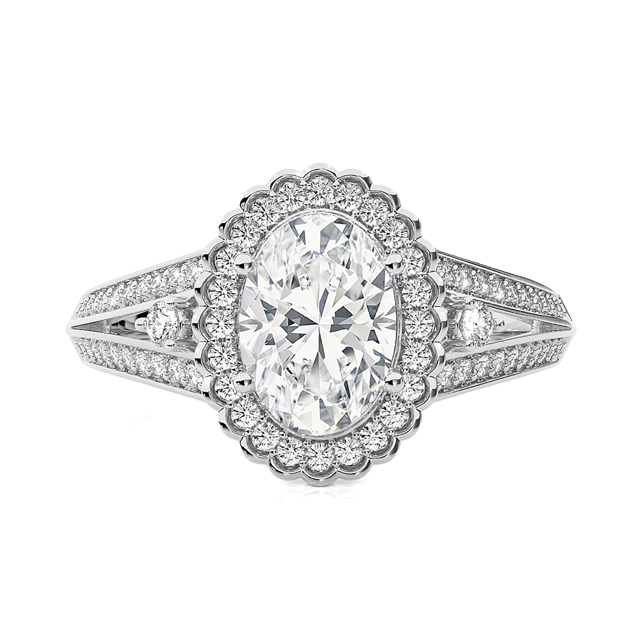 Starbrust Double Row Split Shank Diamond Halo Engagement Ring