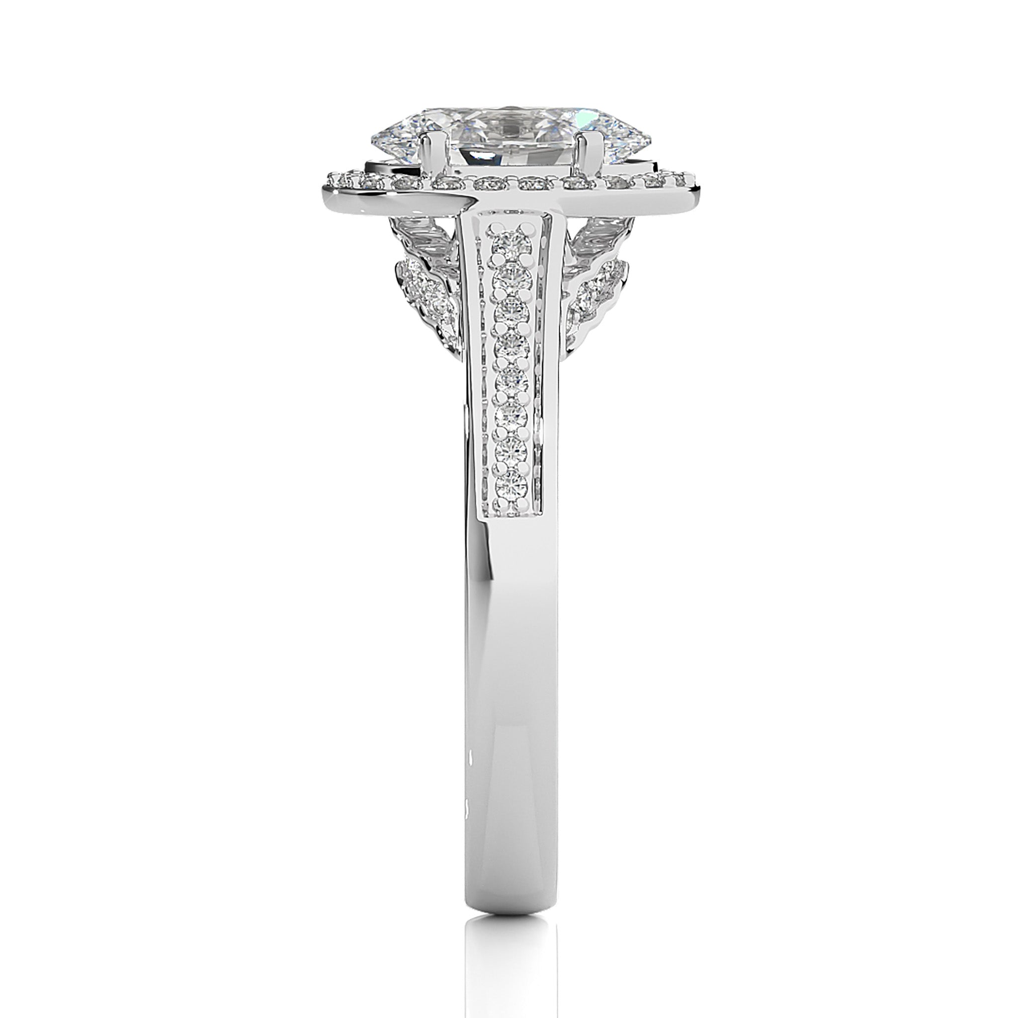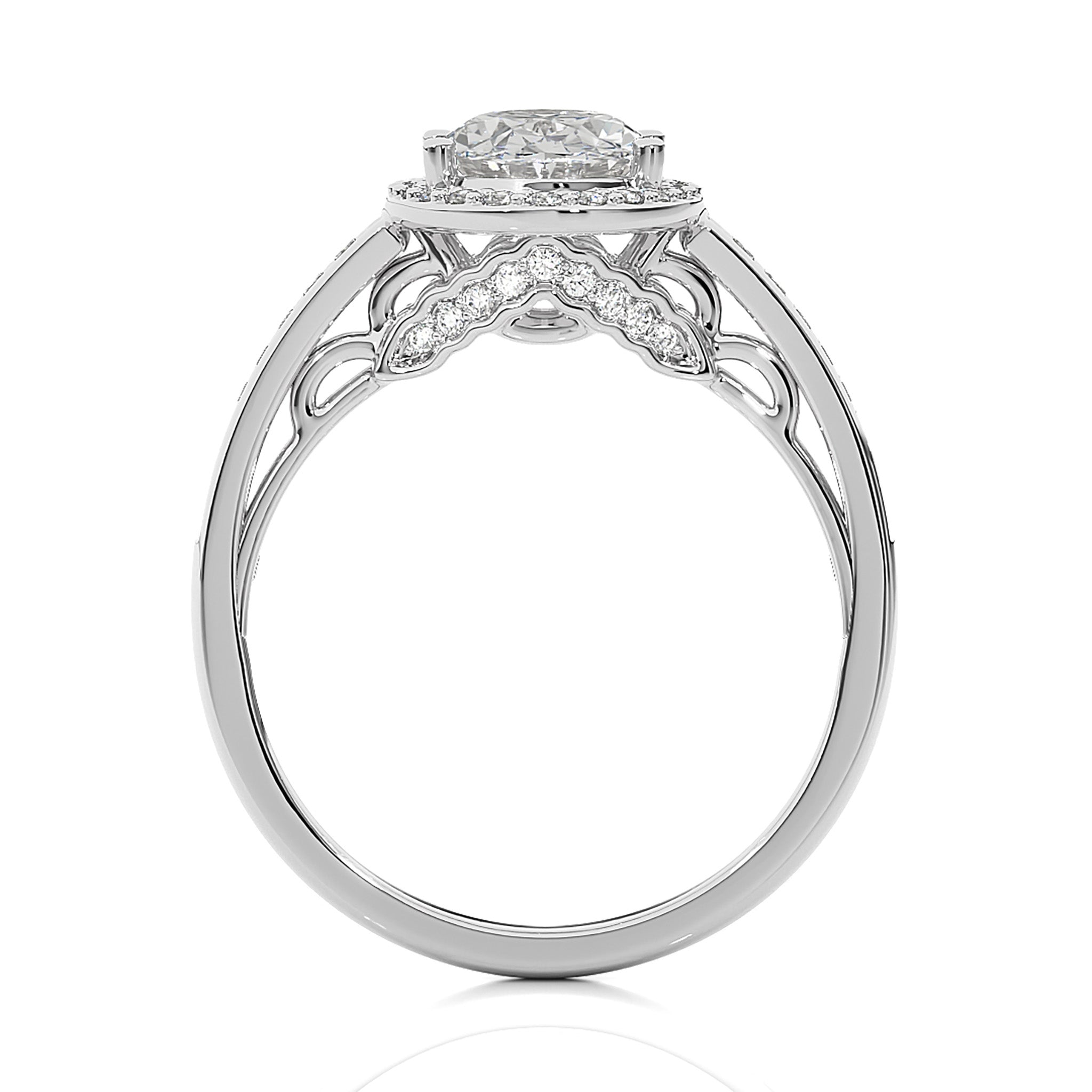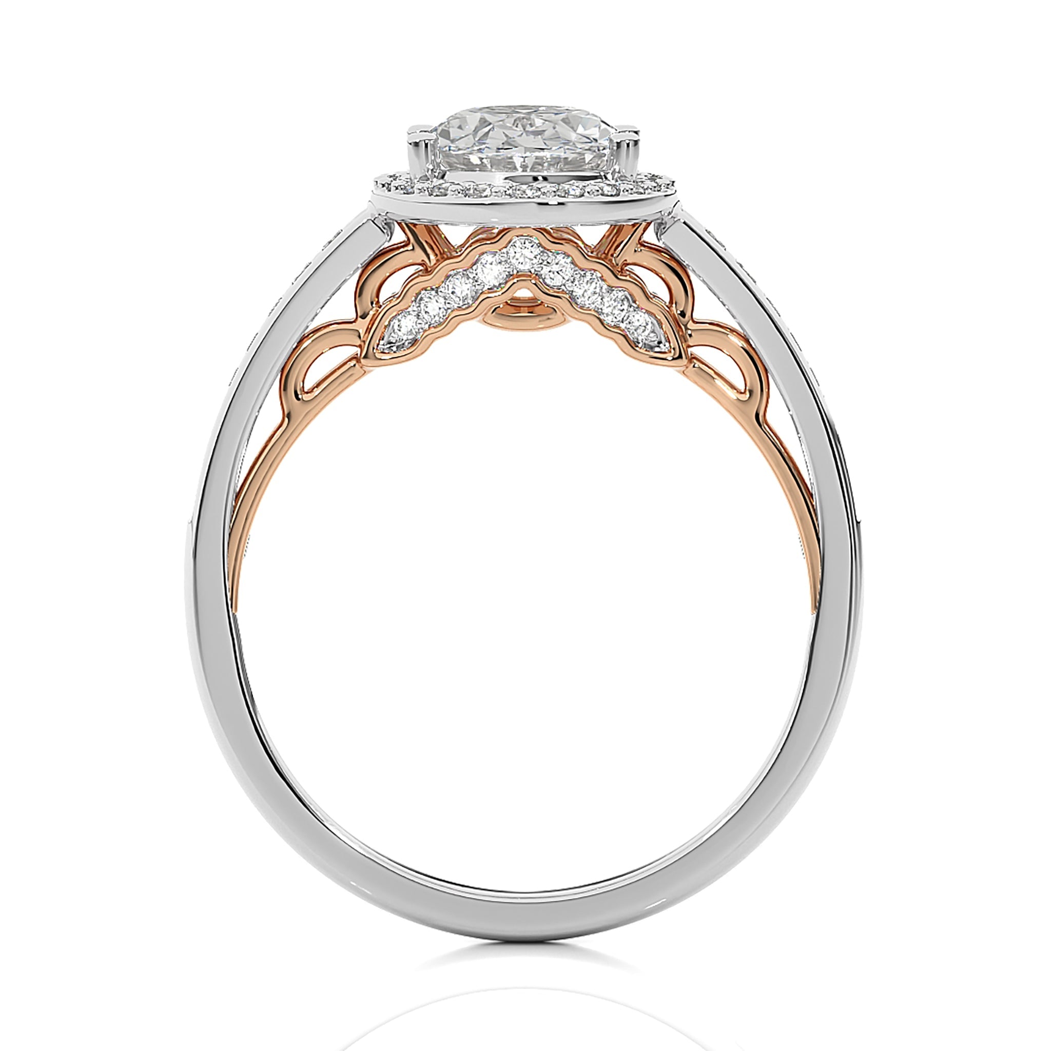 Experience the romance of yesteryear with our Floral Bouquet Halo and Bazel Diamond Engagement Ring. Crafted with intricate detail and set in a harmonious blend of pave and prong settings, this classic piece exudes timeless charm, symbolizing the blooming love that intertwines two hearts in eternal union.