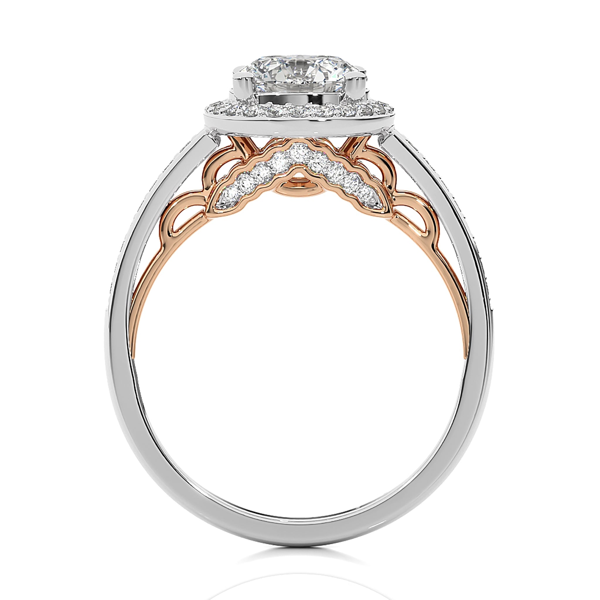 Experience the romance of yesteryear with our Floral Bouquet Halo and Bazel Diamond Engagement Ring. Crafted with intricate detail and set in a harmonious blend of pave and prong settings, this classic piece exudes timeless charm, symbolizing the blooming love that intertwines two hearts in eternal union.