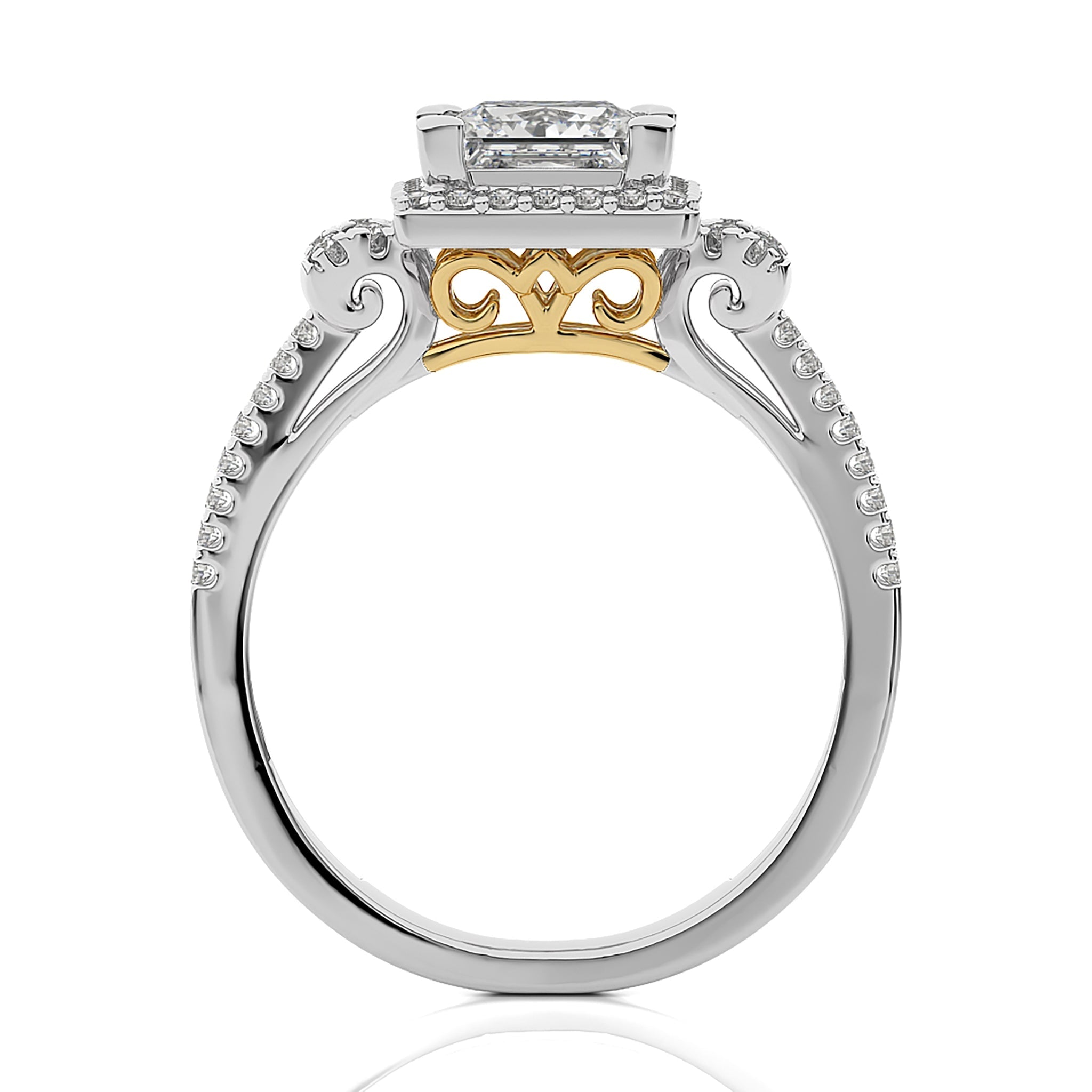 Attic Double Row Halo and Bazel Diamond Engagement Ring