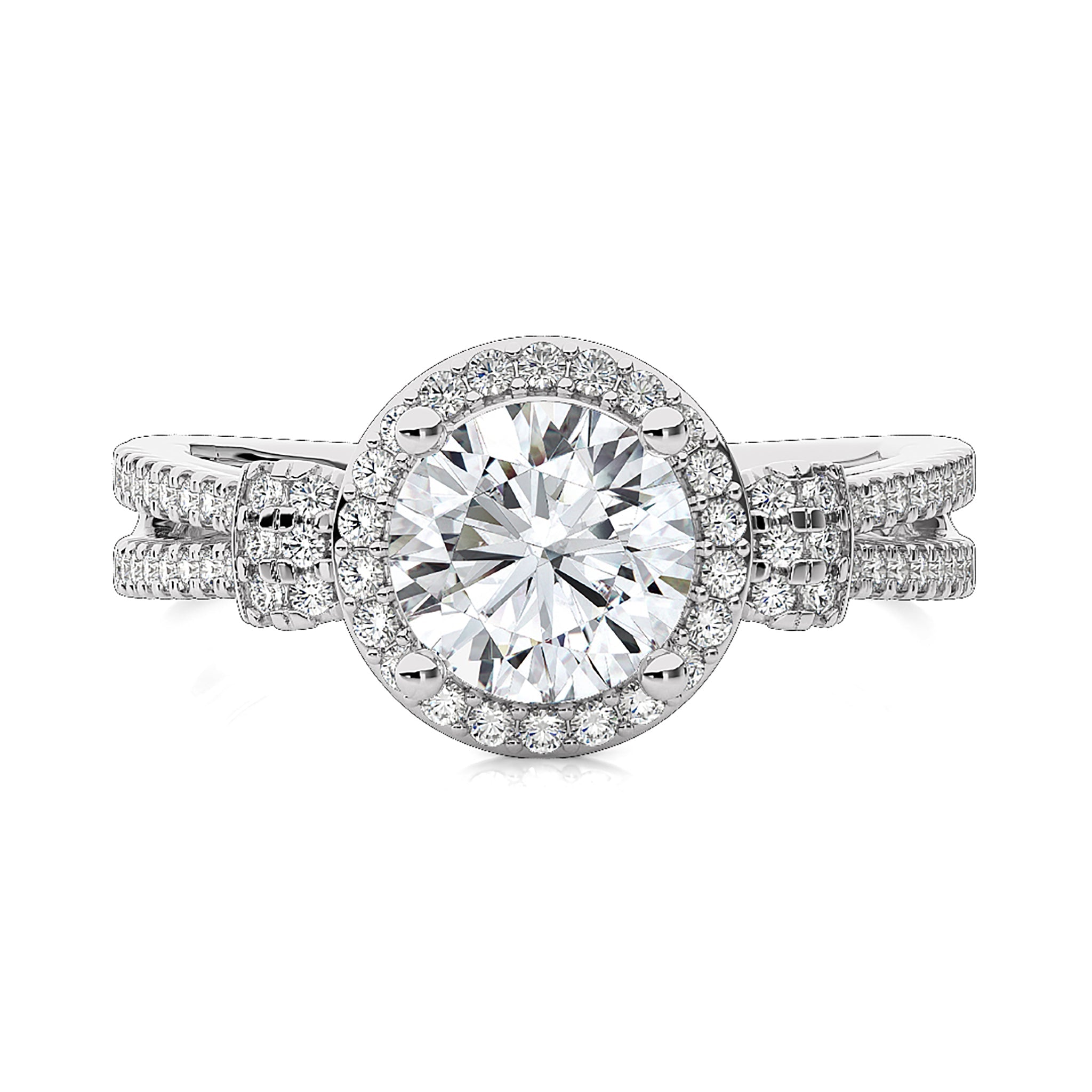 Discover enduring beauty with our Attic Double Row Halo and Bazel Diamond Engagement Ring. Expertly set in microsplit and prong, this ring captures the essence of sophistication, symbolizing the union of two hearts in a dazzling dance of brilliance and grace.