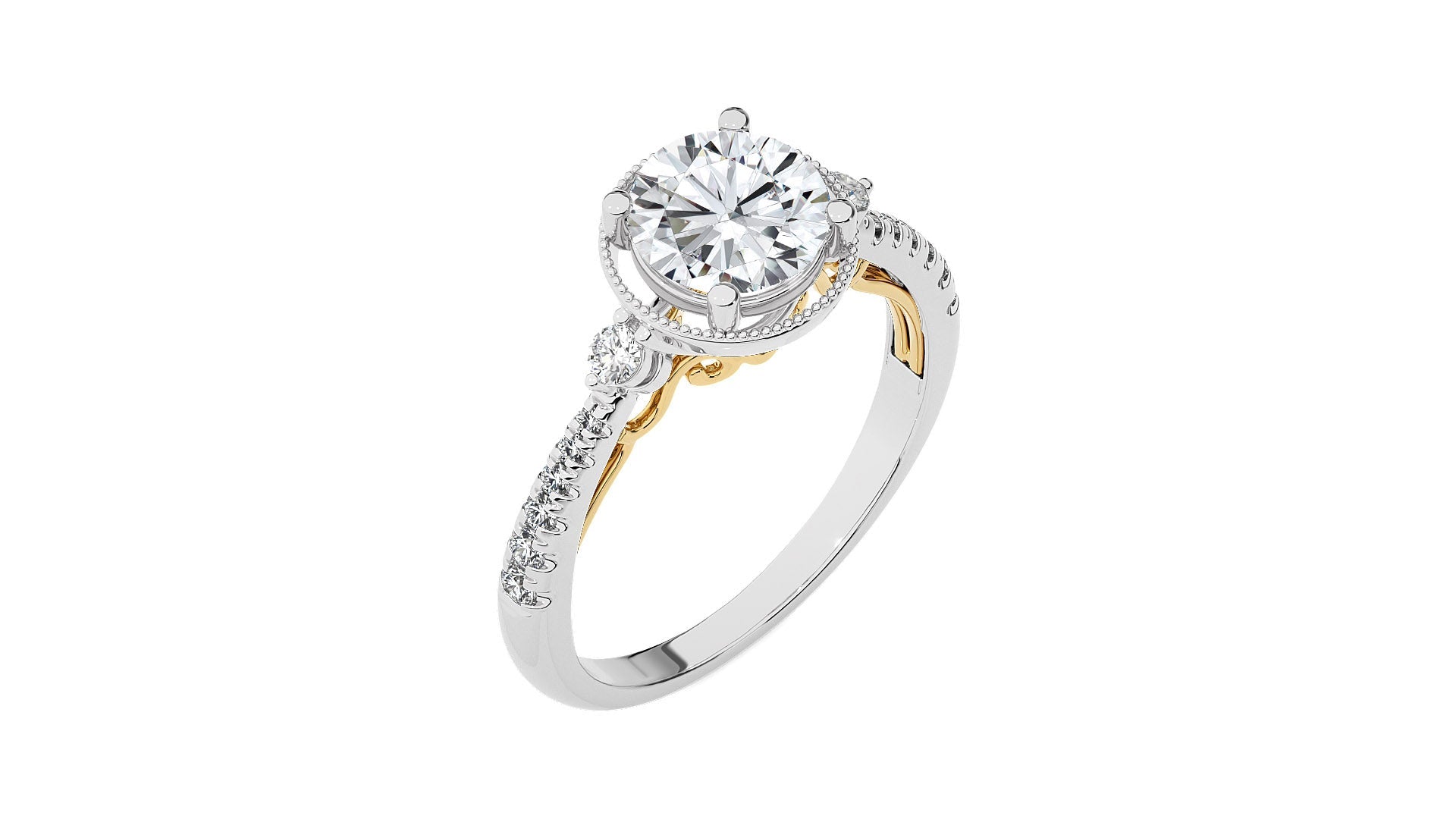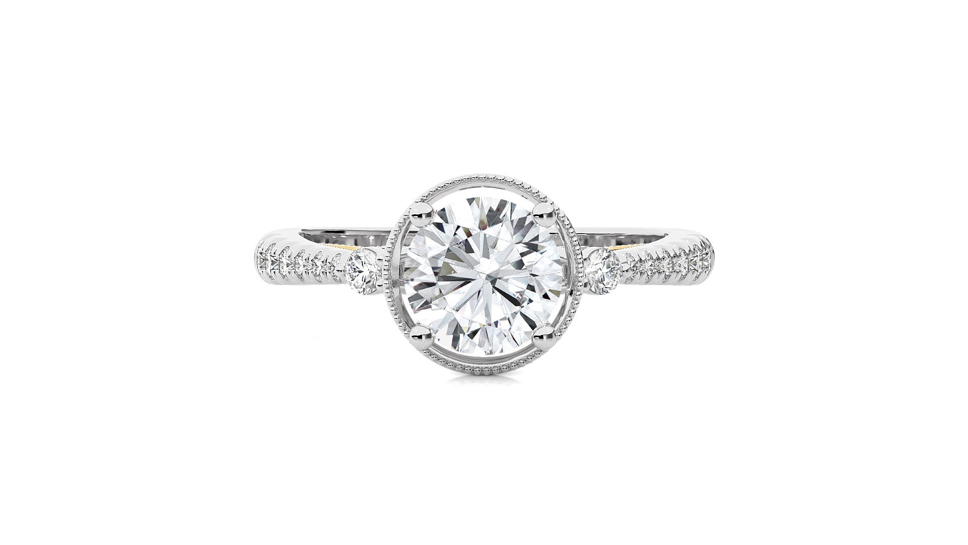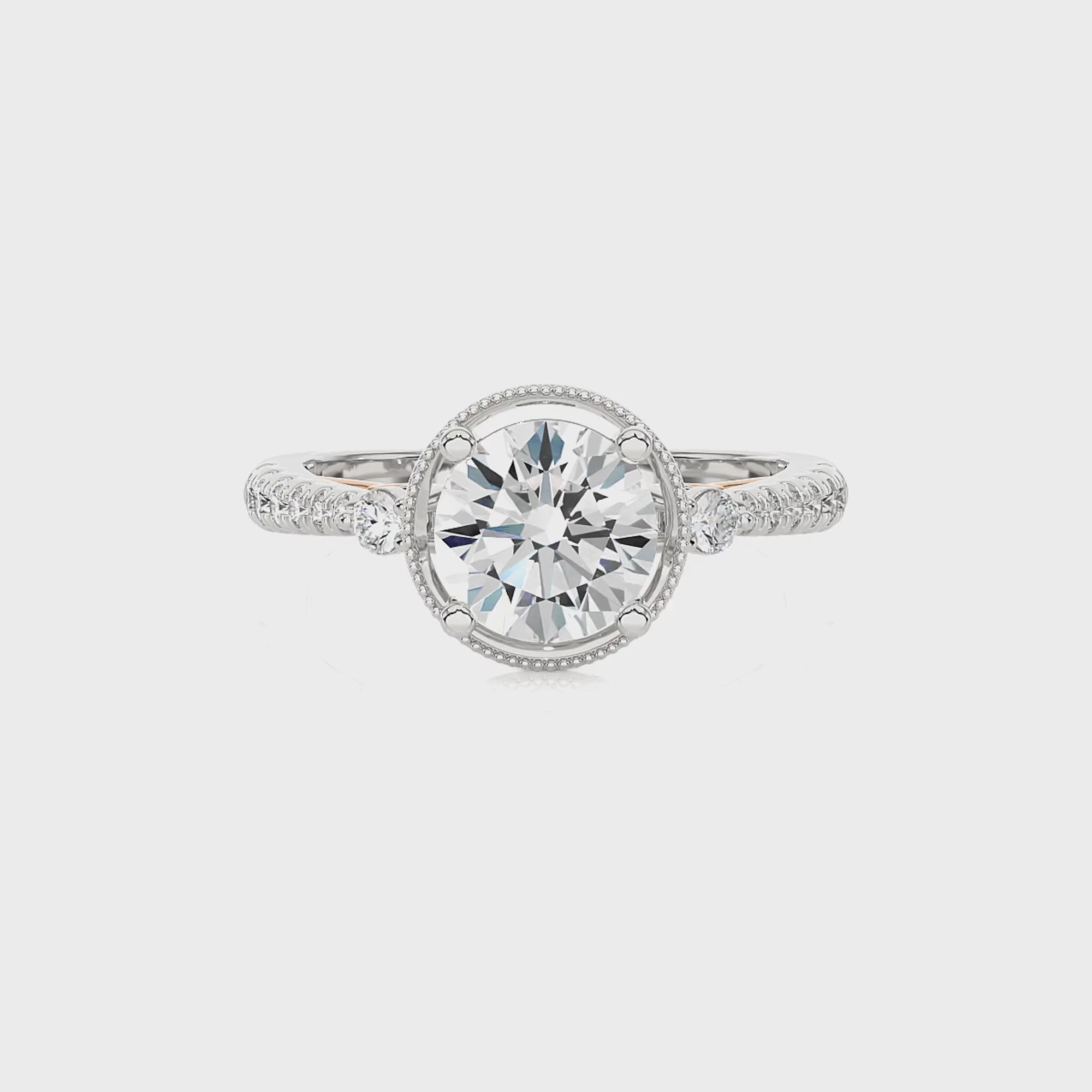 Indulge in the romance of a bygone era with our Vintage Style Diamond Halo Engagement Ring. Set in meticulous micro-split and prong settings, this ring exudes classic charm. The delicate halo accentuates the center diamond, while the vintage-inspired design adds a touch of timeless elegance.