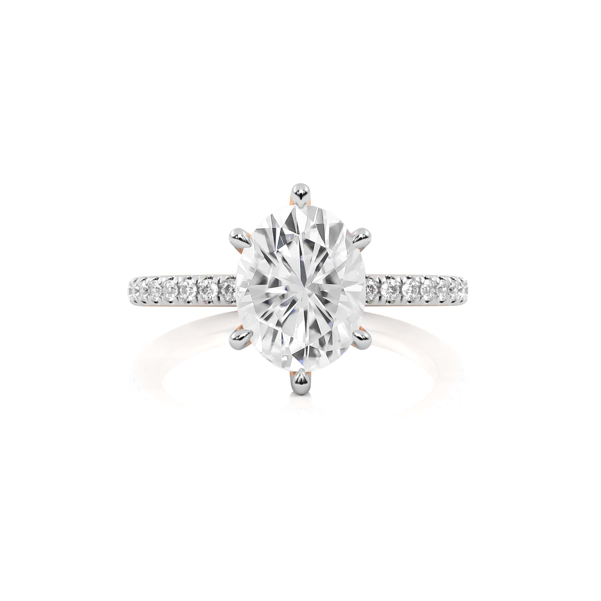 Presents a mesmerizing 2 carat oval center stone alongside 1/3 carat round side stones crafted with Natural diamonds of H-I/I1-I2 quality, it shines as an everlasting symbol of romance and beauty