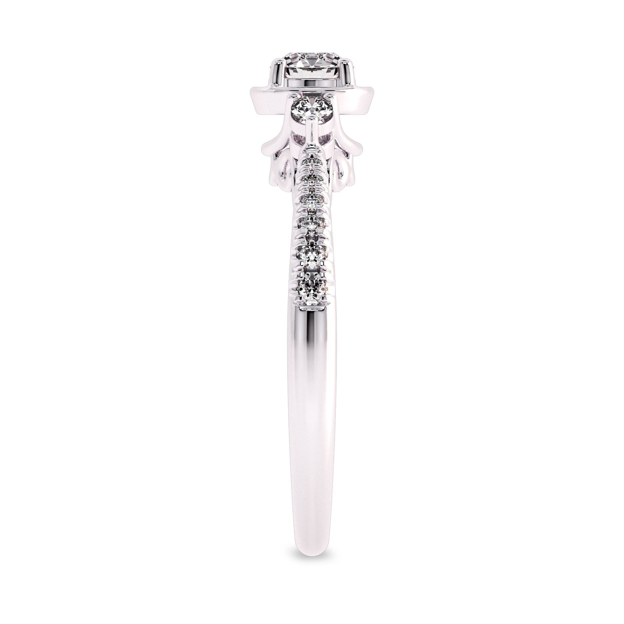 Presenting our stunning 5/8 carat Three Stone Style Two Tone Engagement Ring, featuring DEF/SI quality lab created diamonds expertly set in a micro split and prong setting. This engagement ring is sure to capture the heart of your beloved and become a cherished symbol of your enduring commitment