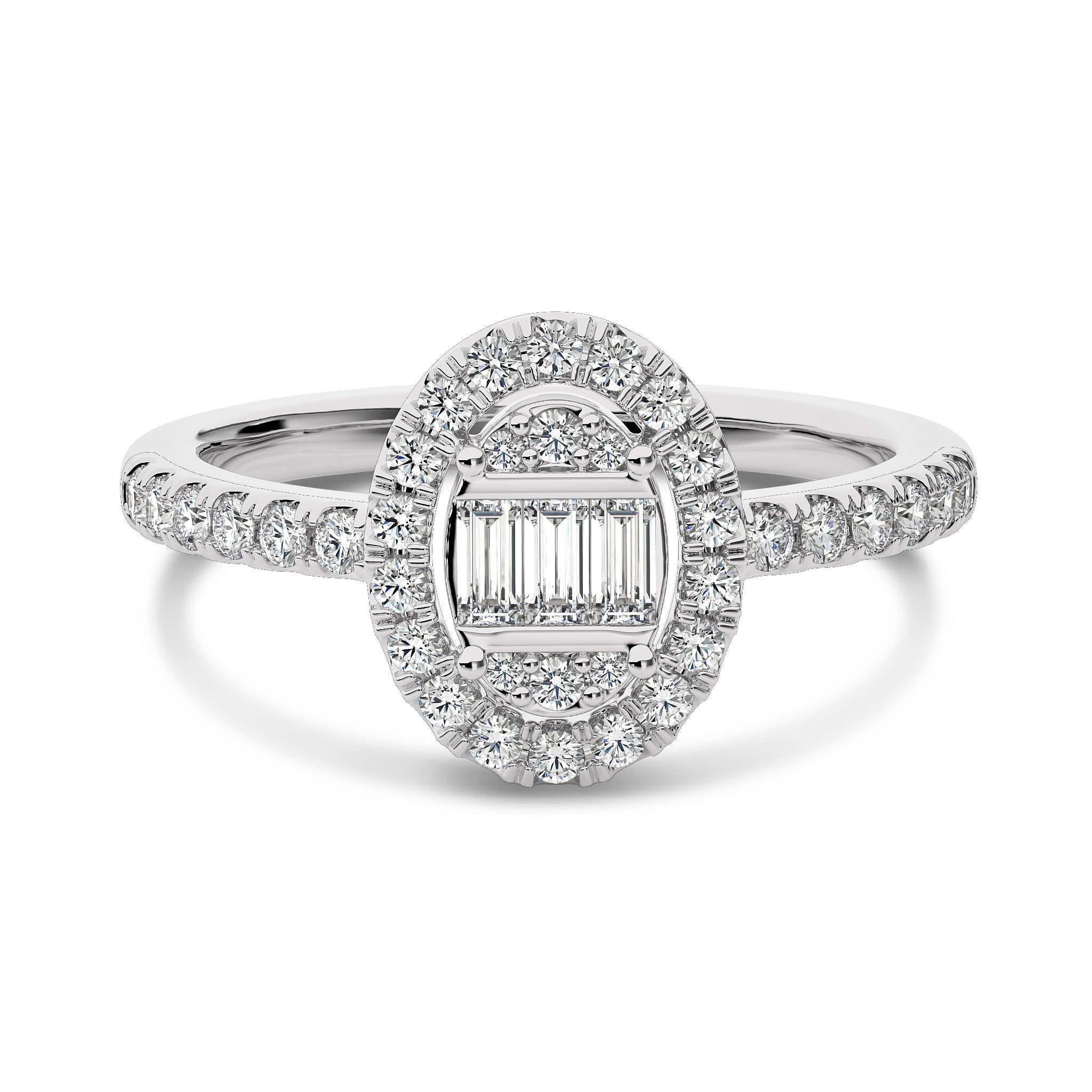 1/2 CT. Oval Shape Halo Round and Baguette Lab Created Diamond Ring