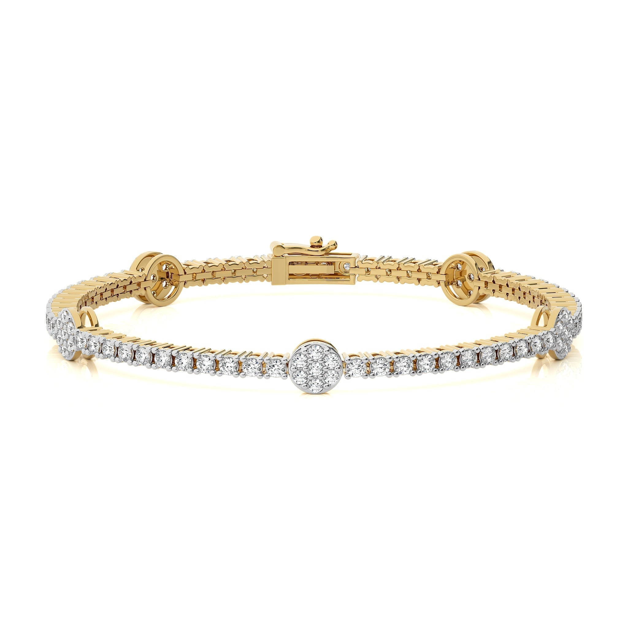 3 CT. Captivating Cosmos Luster Sustainable Natural Diamonds Studded Round Motifs Linked Gold Station/Tennis Bracelet with Clasp Lock