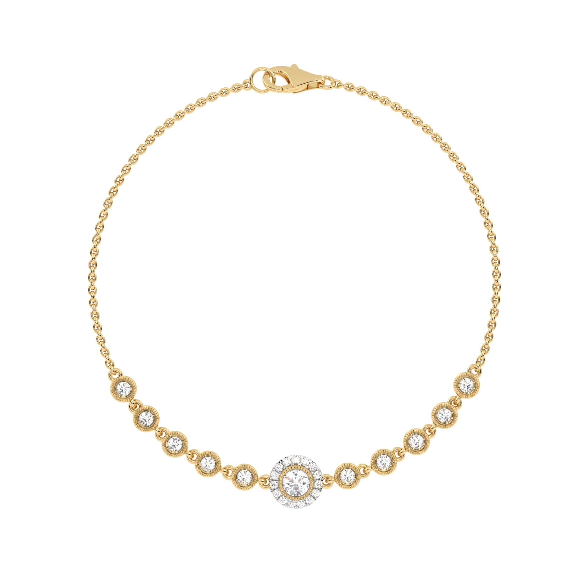 This Vintage Inspired 5/8 CT. Round Natural Diamond Bezel Set Bracelet features H-I/I1-I2 quality diamonds set in a combination of micro split and bezel settings. This exquisite piece blends classic charm with modern elegance, making it a perfect addition to any collection. Contact us for Bracelet Size