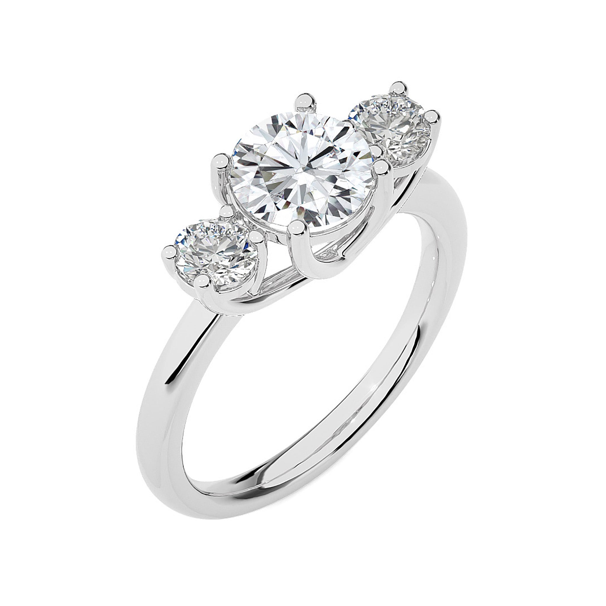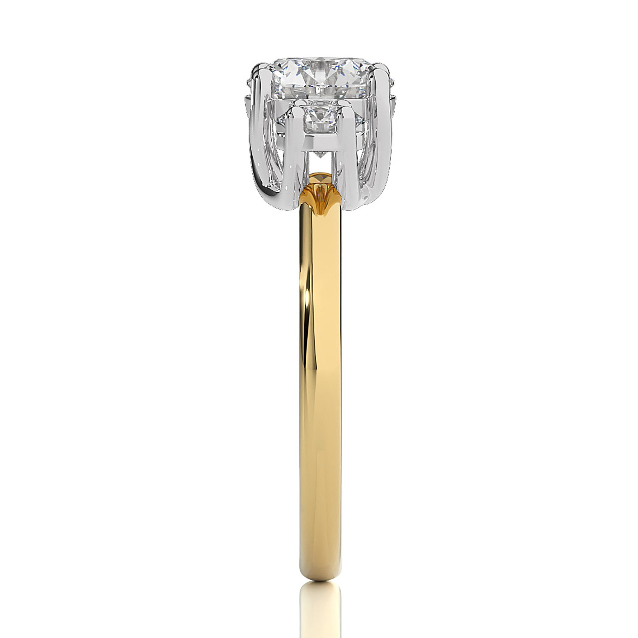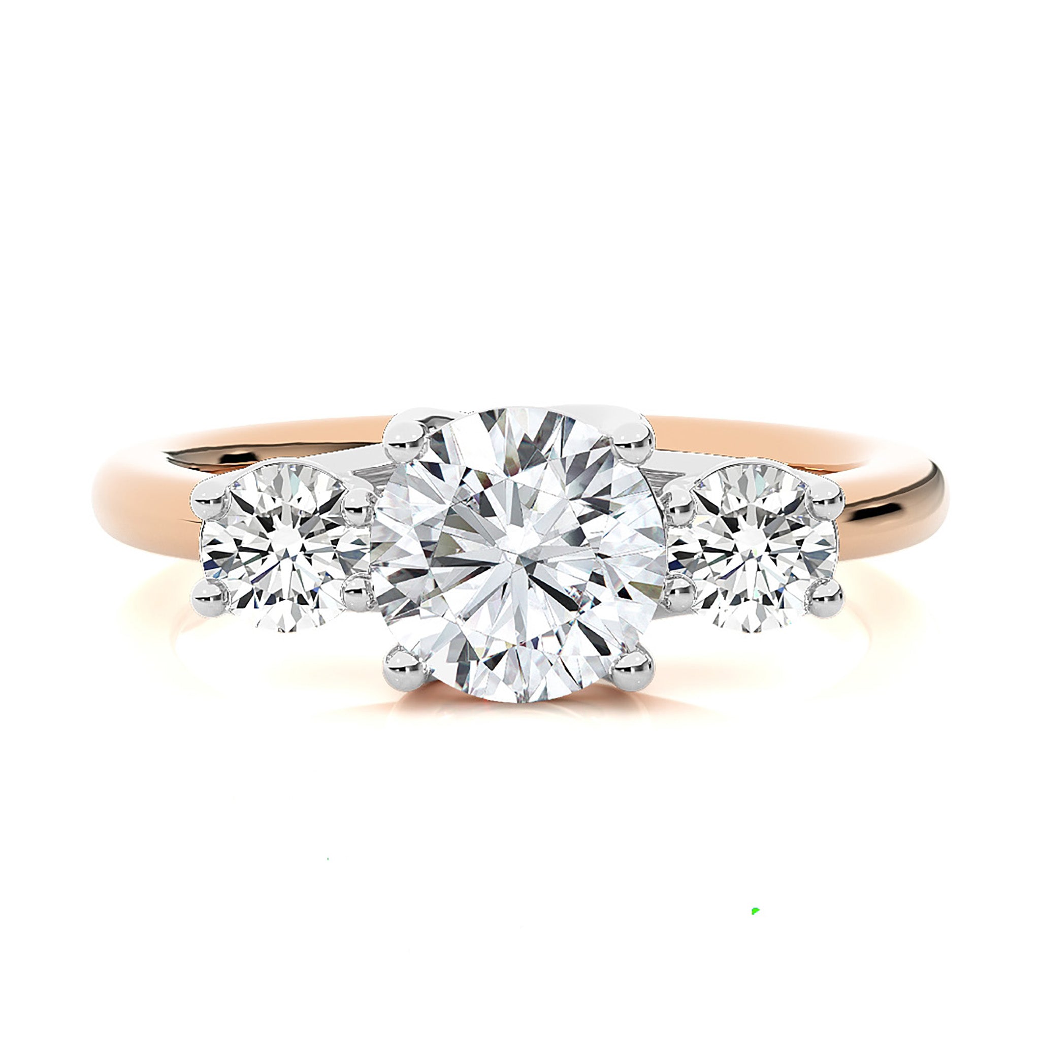 Celebrate your love story with our Classic Three-Stone Diamond Engagement Ring. Meticulously set in a harmonious combination of pave and prong settings, this timeless piece symbolizes the past, present, and future of your enduring commitment.