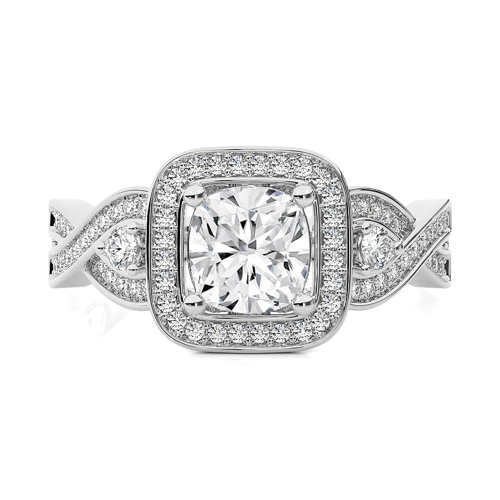 Classic Nimbus Double Twist Split Shank Halo Diamond Engagement Ring