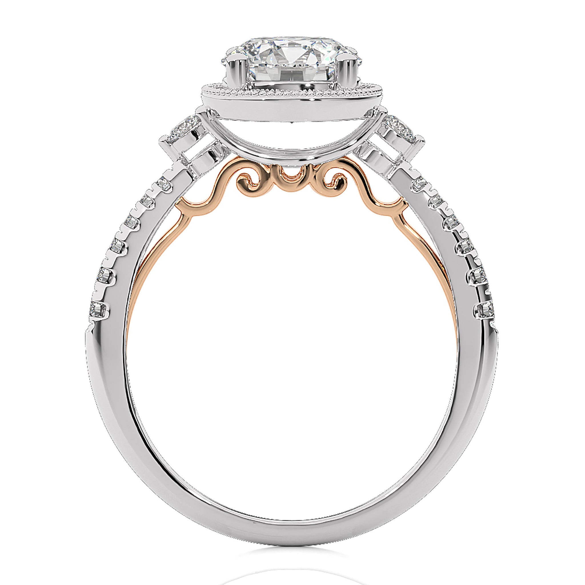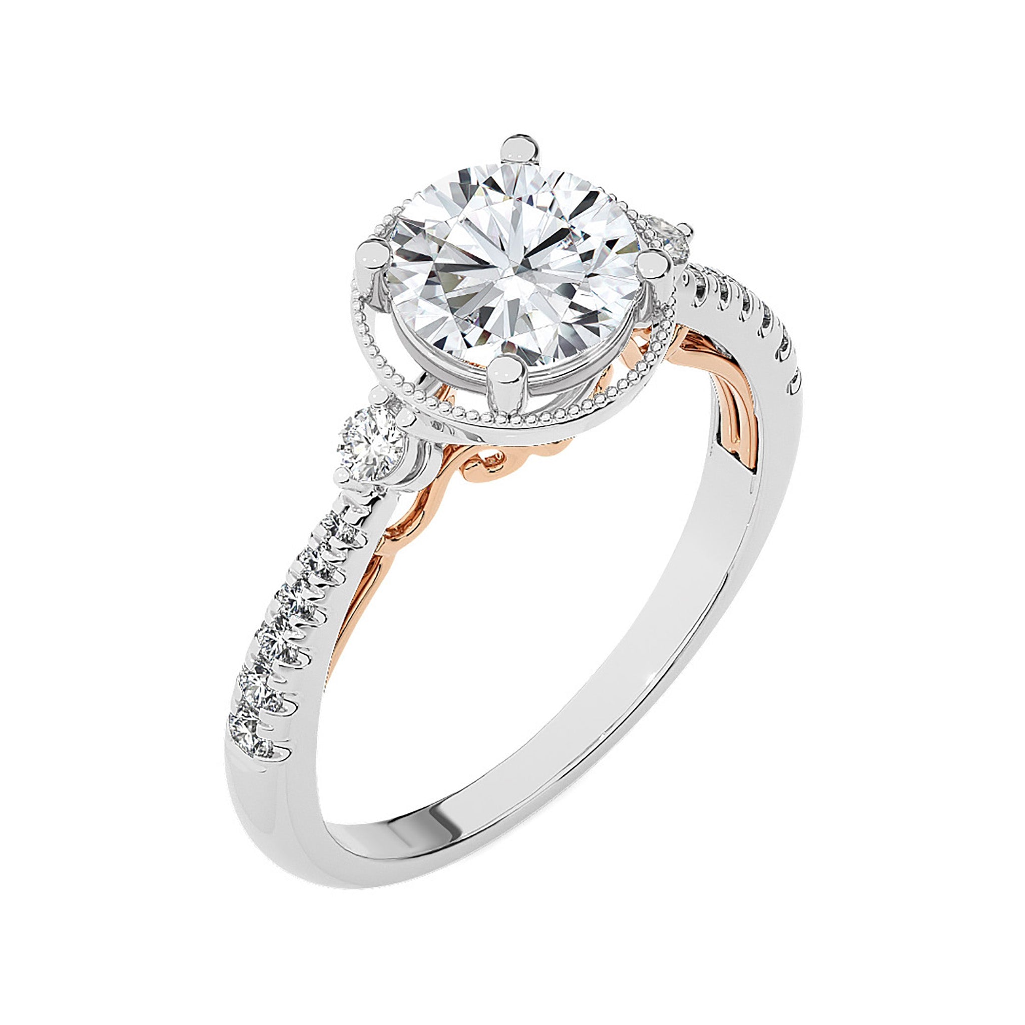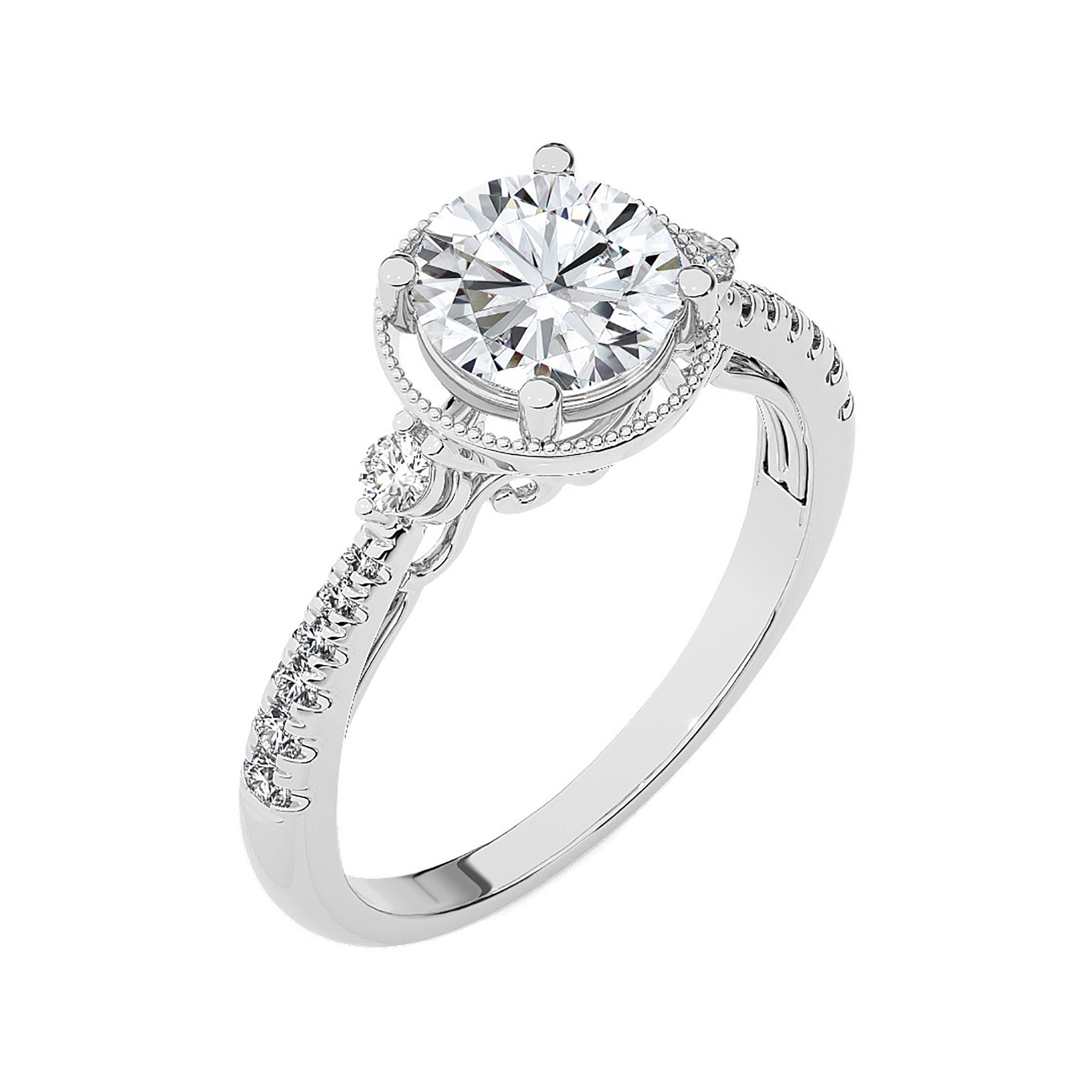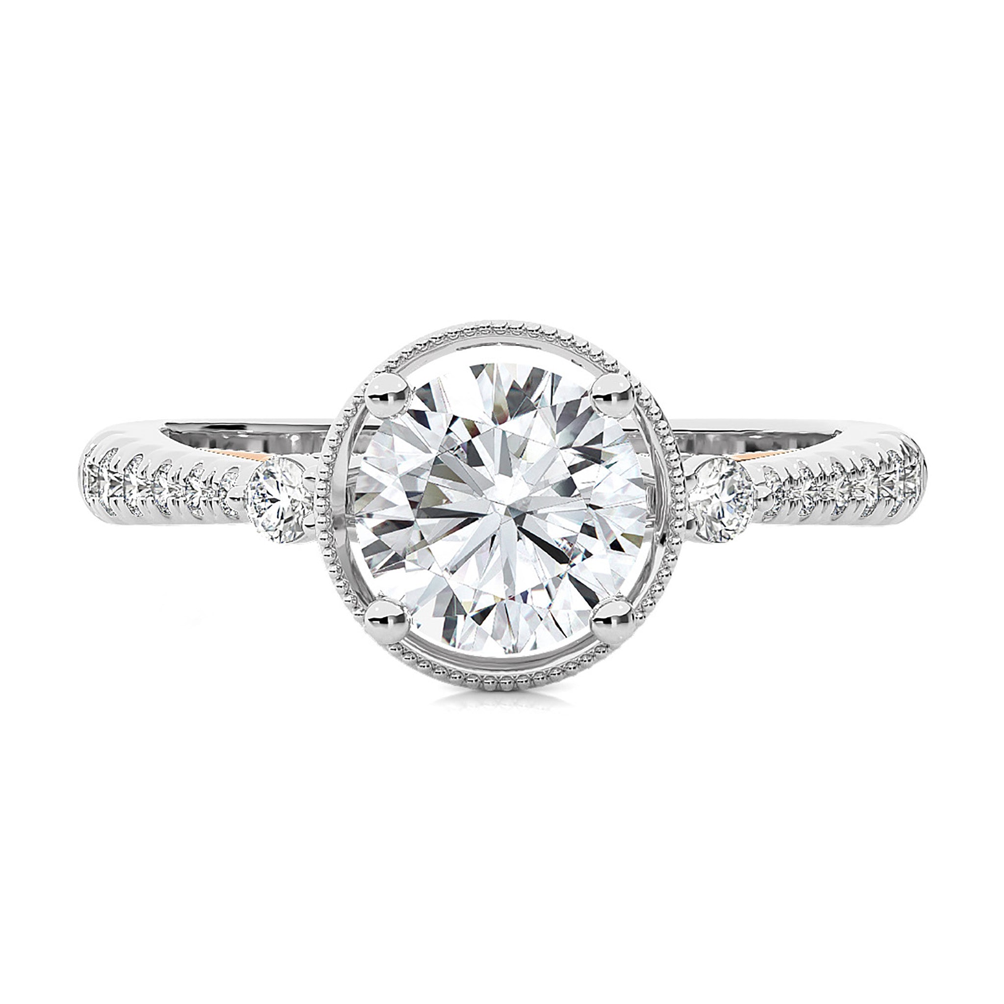 Indulge in the romance of a bygone era with our Vintage Style Diamond Halo Engagement Ring. Set in meticulous micro-split and prong settings, this ring exudes classic charm. The delicate halo accentuates the center diamond, while the vintage-inspired design adds a touch of timeless elegance.