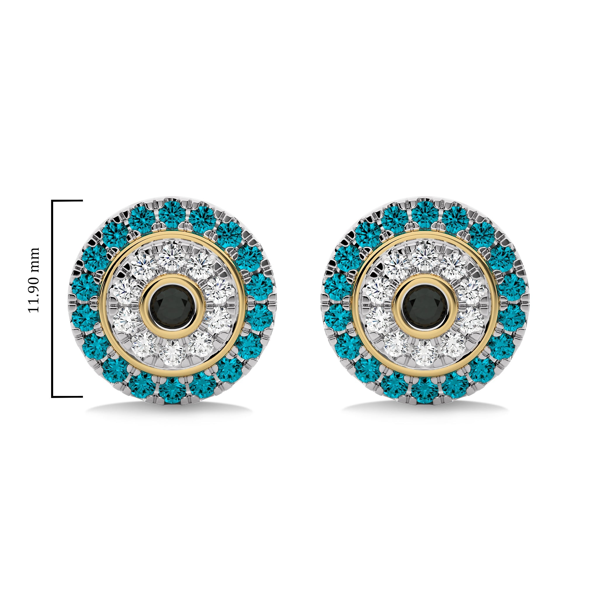 Add a touch of dramatic allure with these 3/4 CT. Round Natural Black and Blue Treated Diamond Earrings. Set in a micro-split and bezel design, the earrings beautifully showcase the contrast of black and blue diamonds H-I/I1-I2, creating a bold yet refined look. Elevate your style with these distinctive earrings that bring together elegance and a dash of mystery