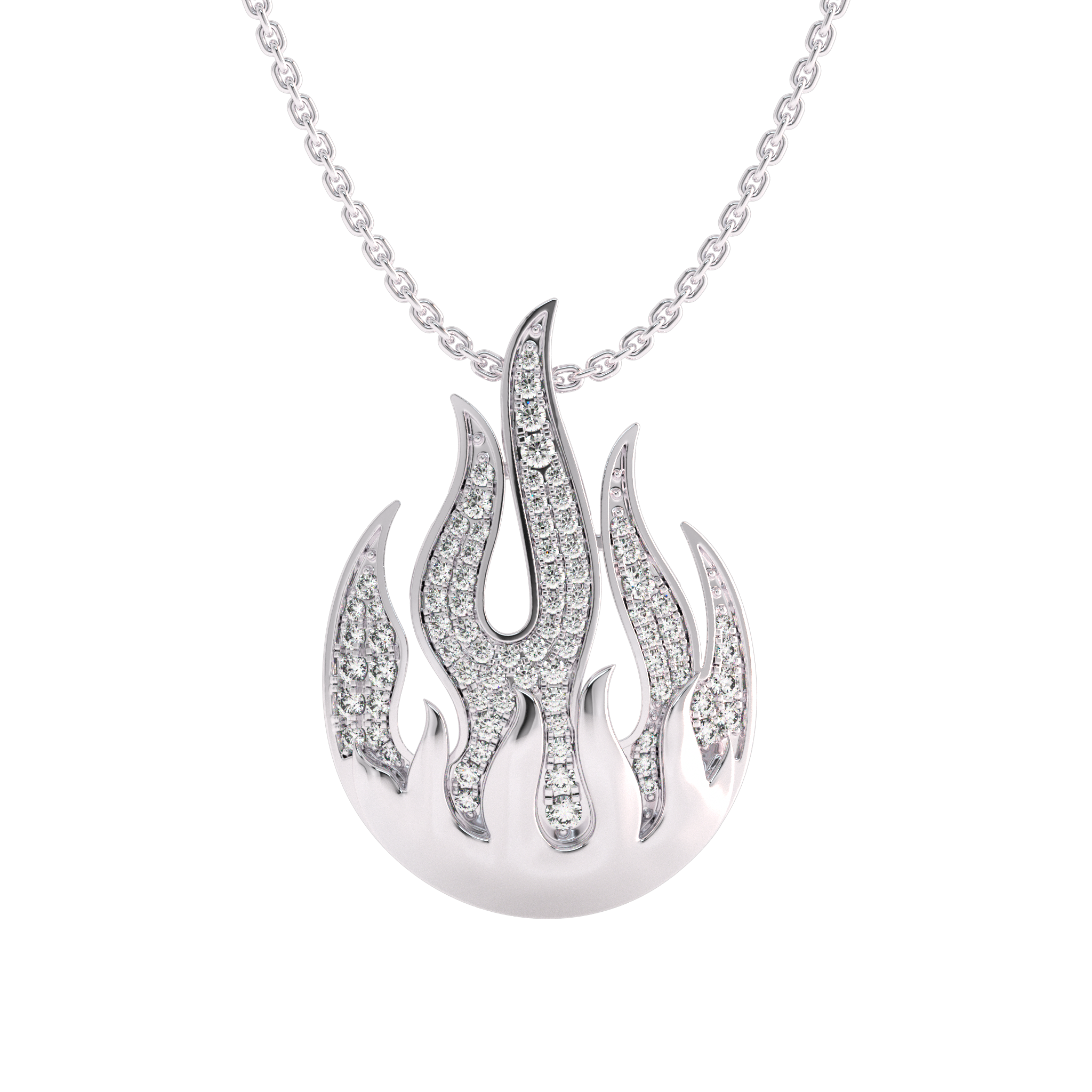 Ignite your style with our 5/8 CT. Natural Round Diamond Studded Fire Flame Designer Pendant. This exquisite piece is adorned with scintillating natural diamonds, featuring G-H color and VS-SI quality, meticulously set in a microsplit pave design. It's a symbol of fiery elegance, ready to make a statement with its captivating design.