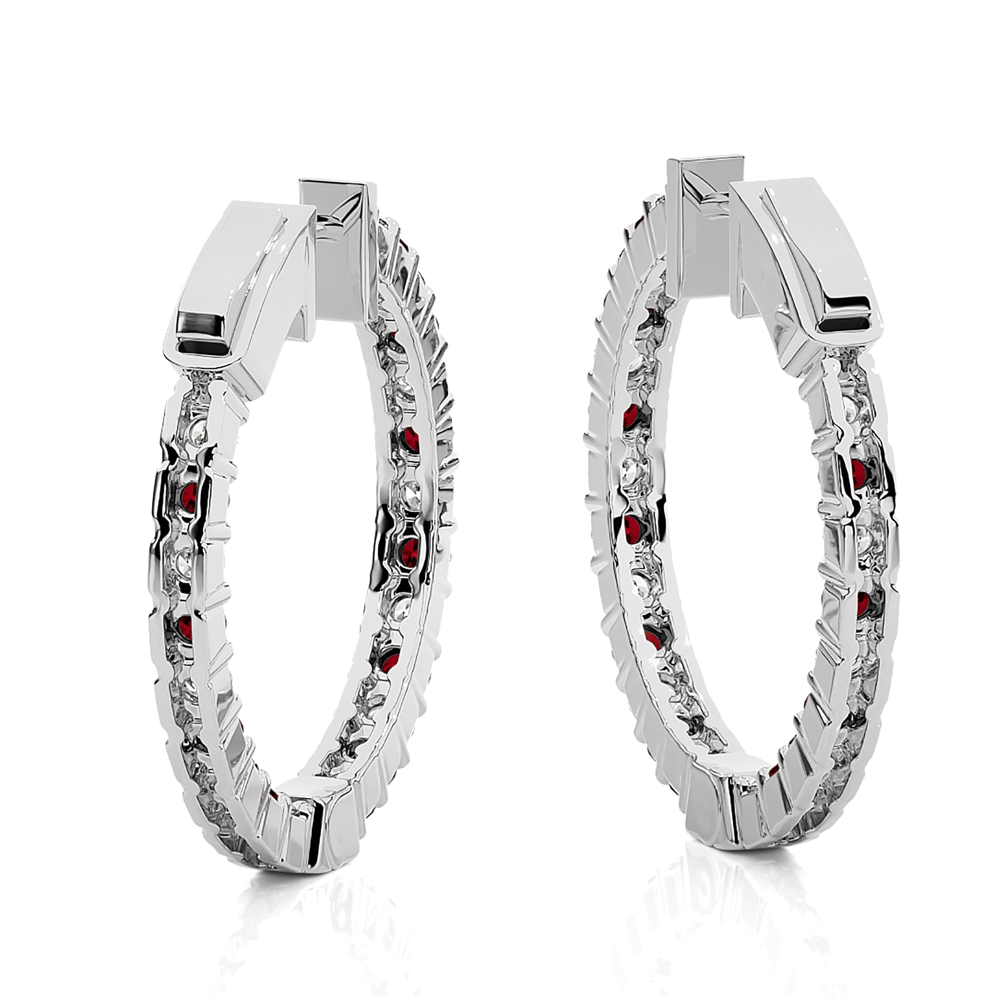 2 CT. Inside Out Round Natural Diamond and Ruby Hoop Earrings