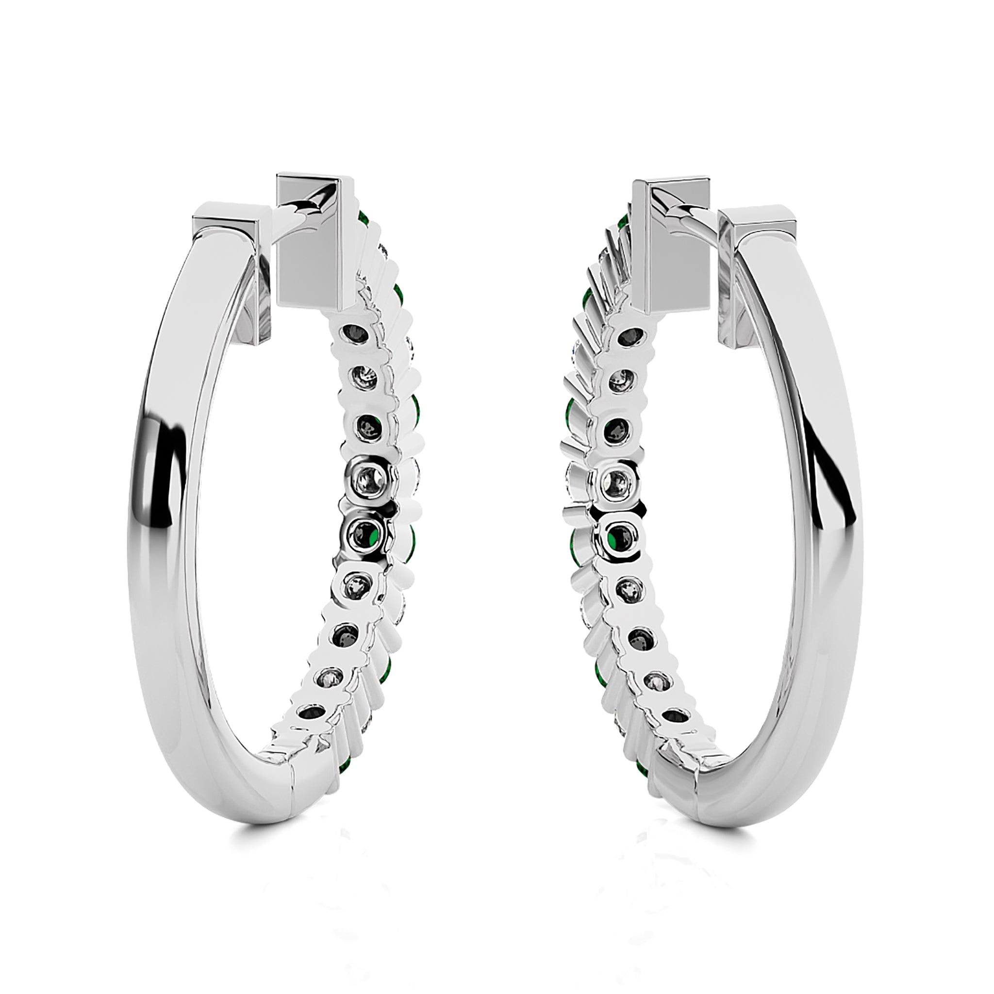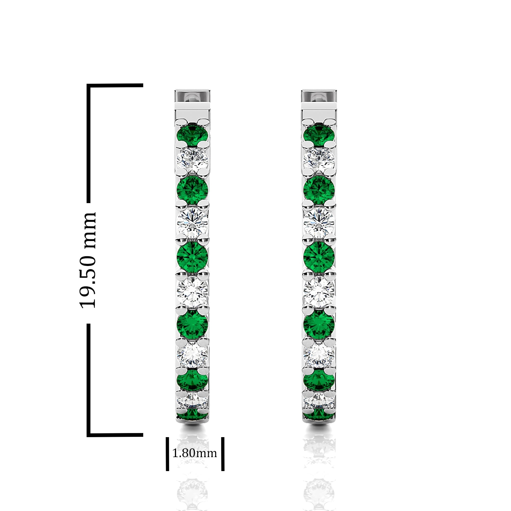 1/2 CT. Round Natural Diamond and Emerald Eternity Hoop Earrings