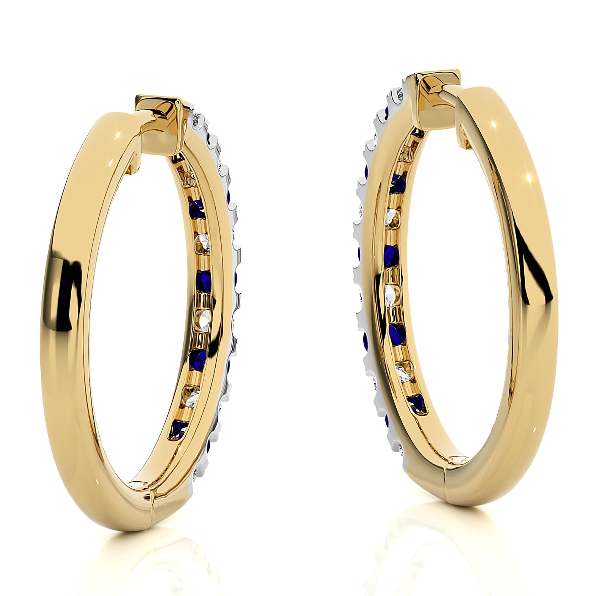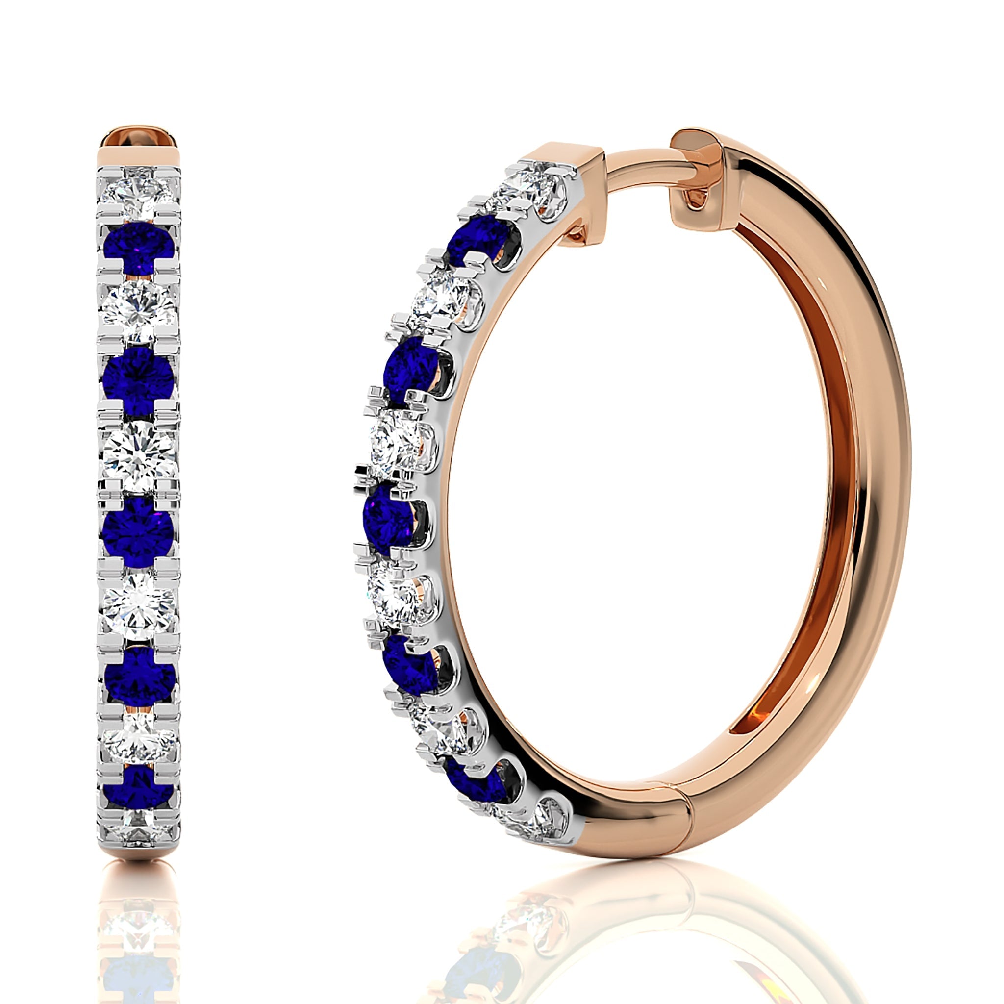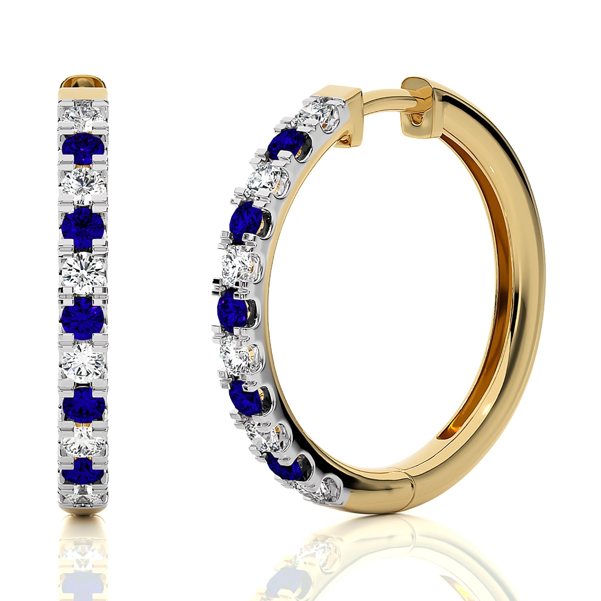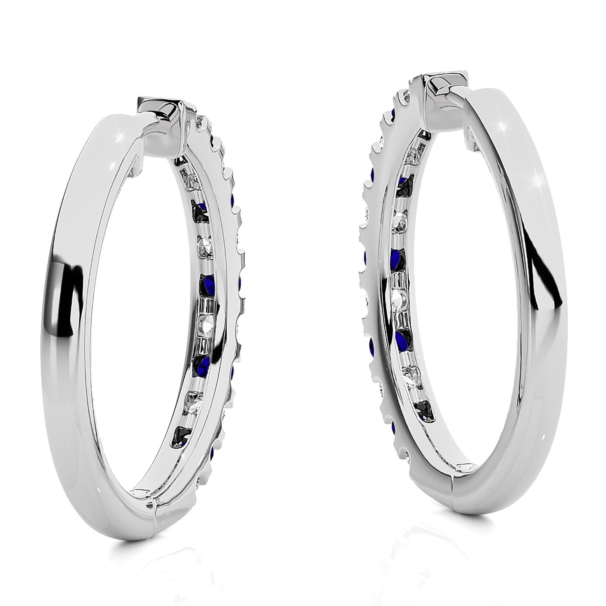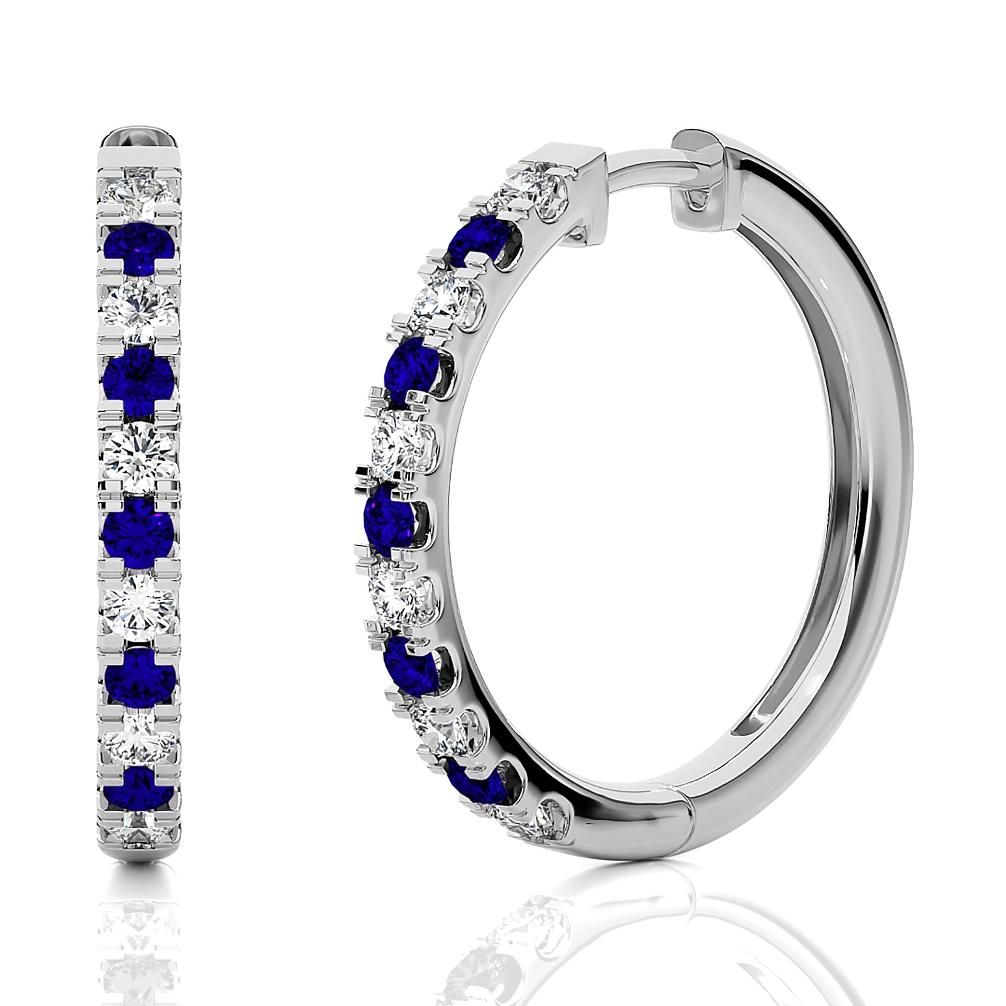 1 CT. Round Natural Diamond and Blue Sapphire Eternity Hoop Earrings