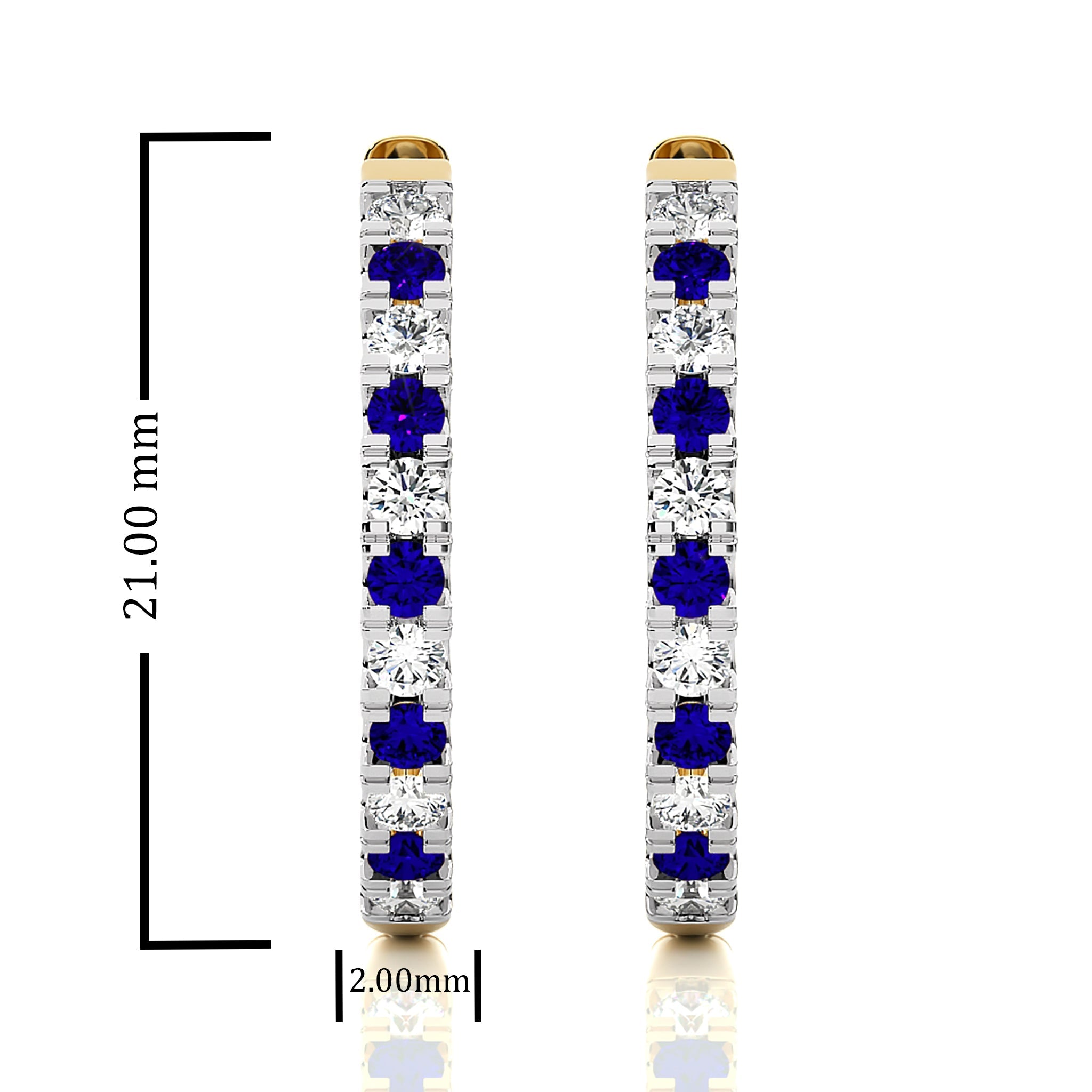 Radiate luxury with these 1 CT. Round Natural Diamond and Blue Sapphire Eternity Hoop Earrings. Set in a micro-split design, the alternating diamonds H-I/I1-I2 and vibrant blue sapphires create a visual contrast. Perfect for adding sophistication to any ensemble. Make a statement with these earrings on your next special occasion