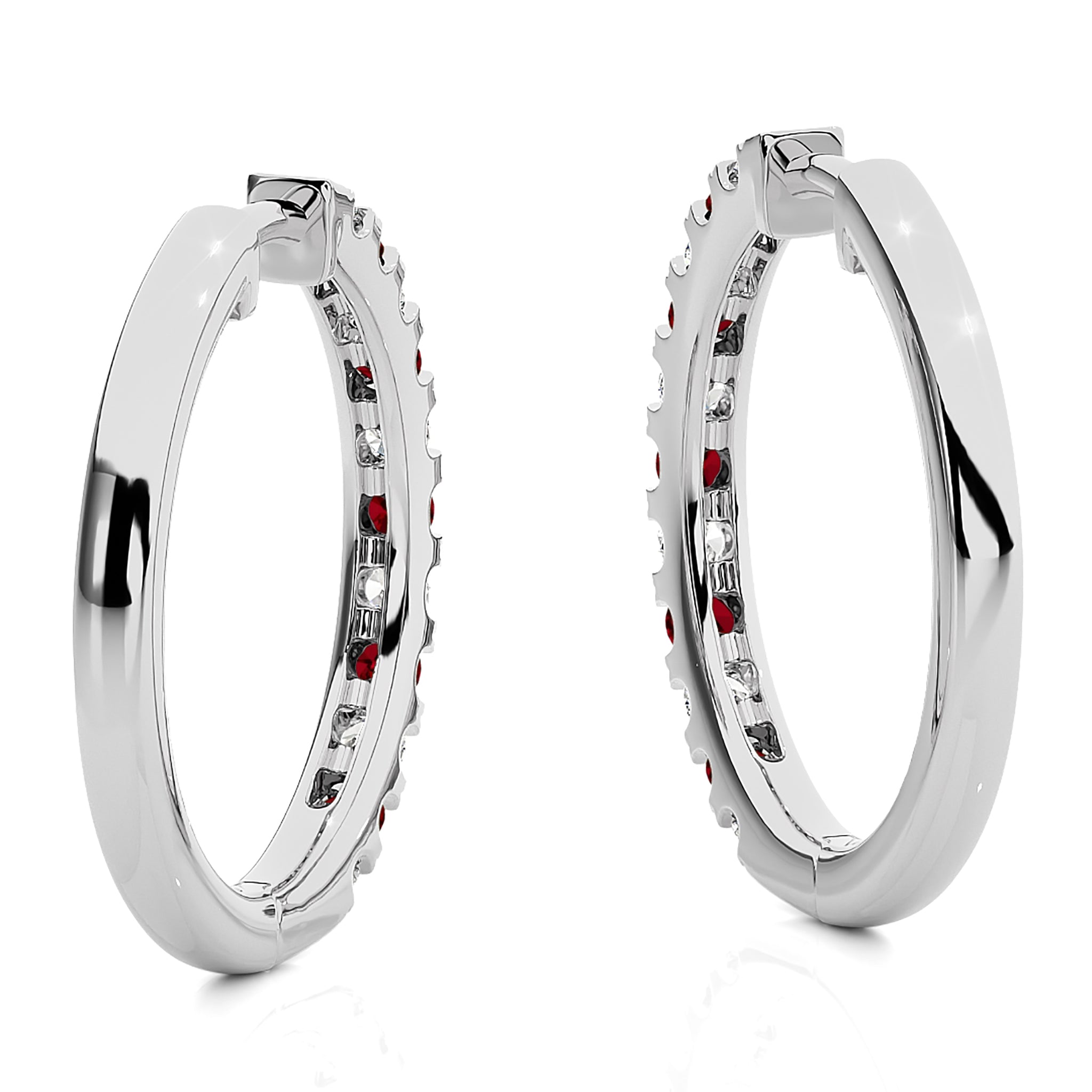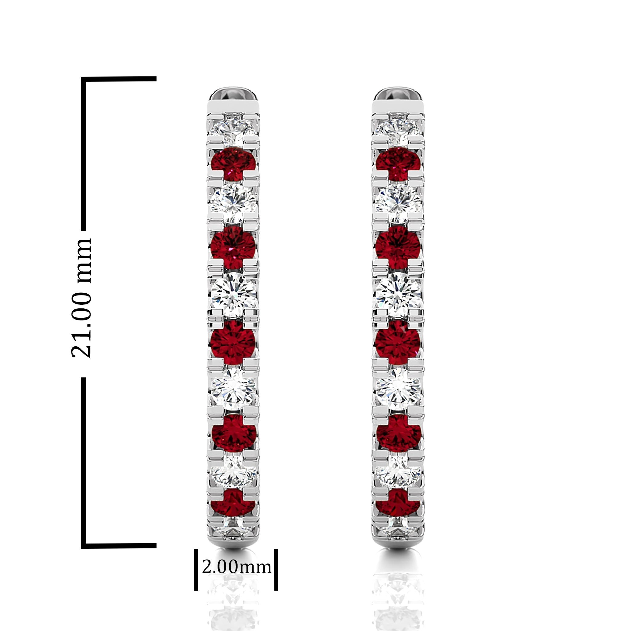 1 CT. Round Natural Diamond and Ruby Eternity Hoop Earrings