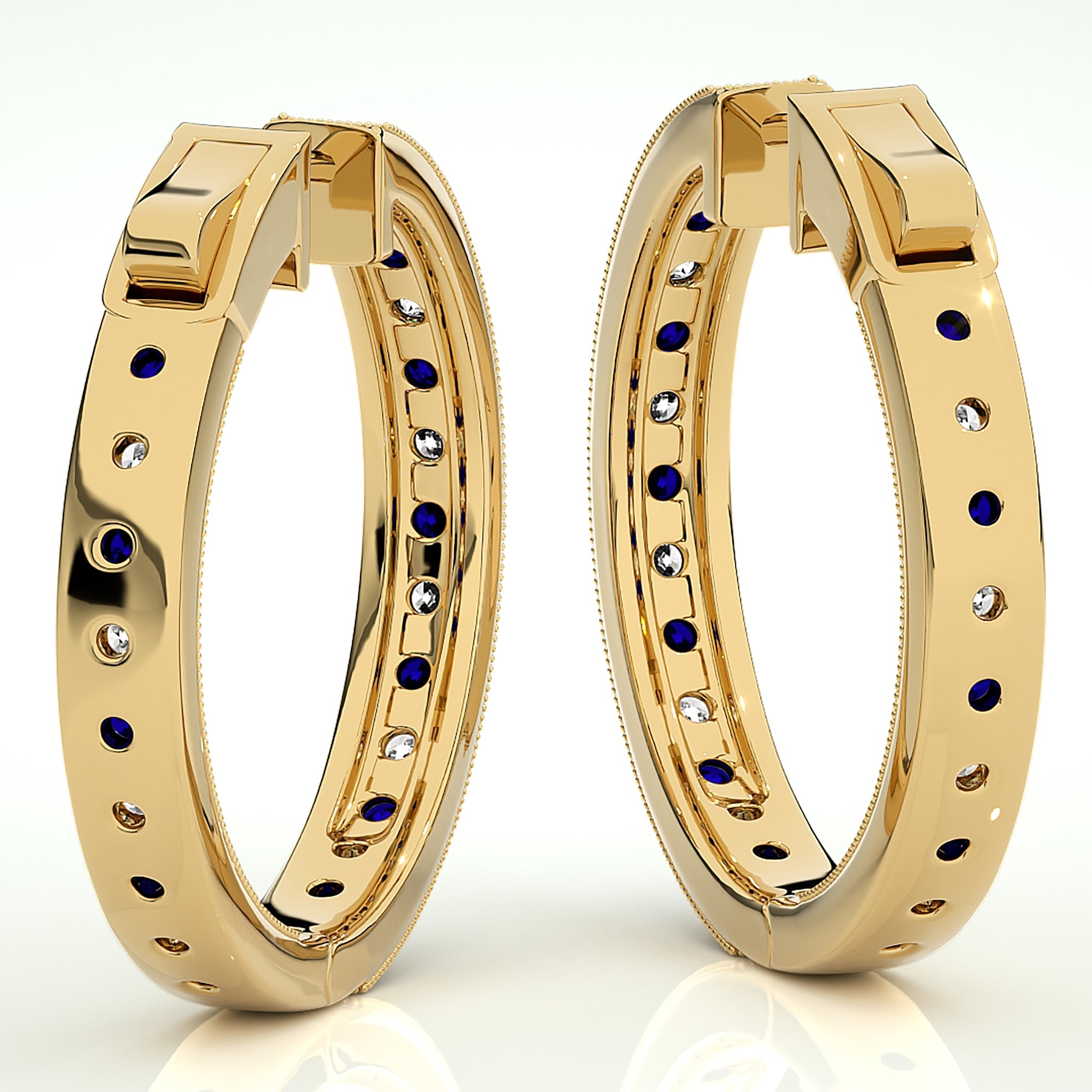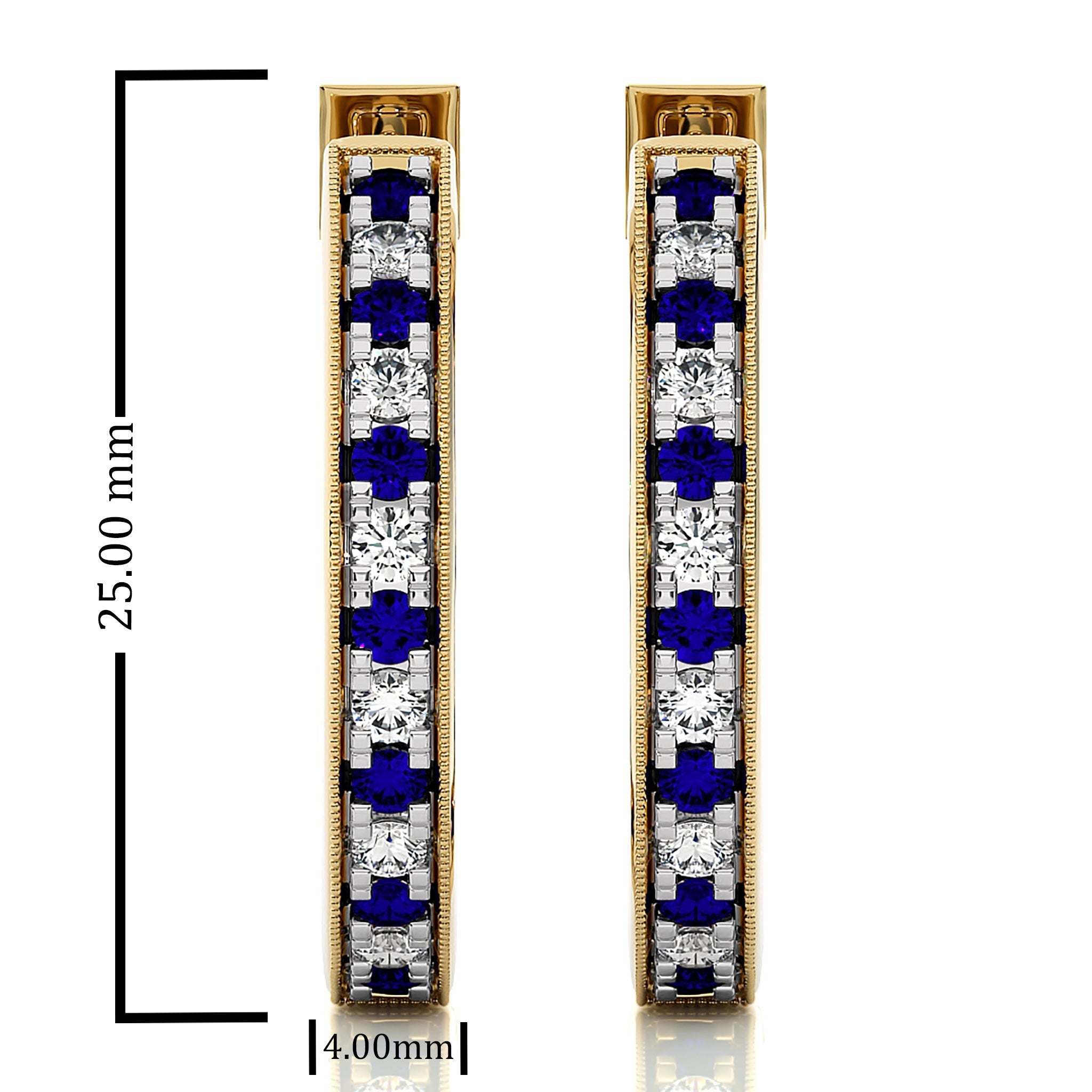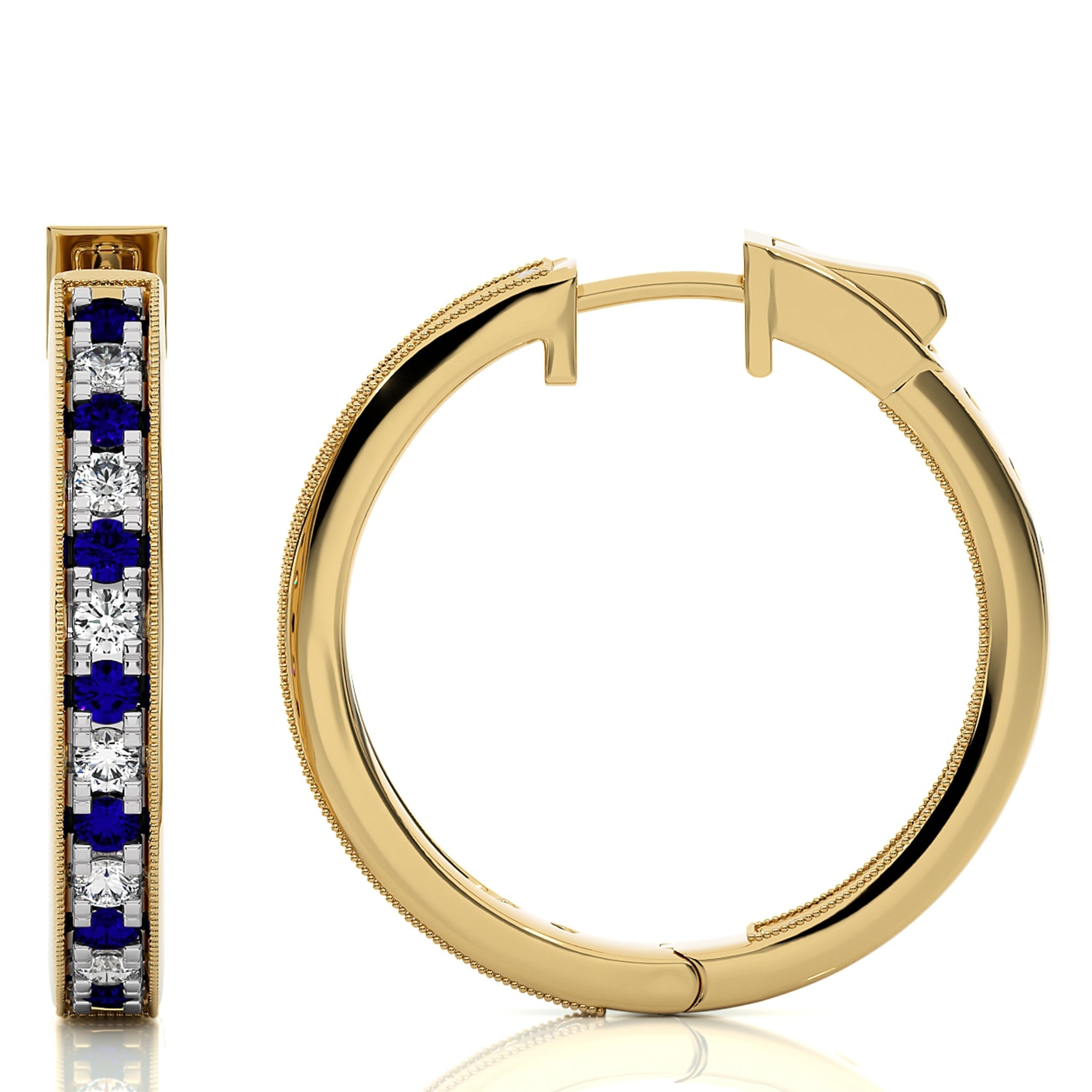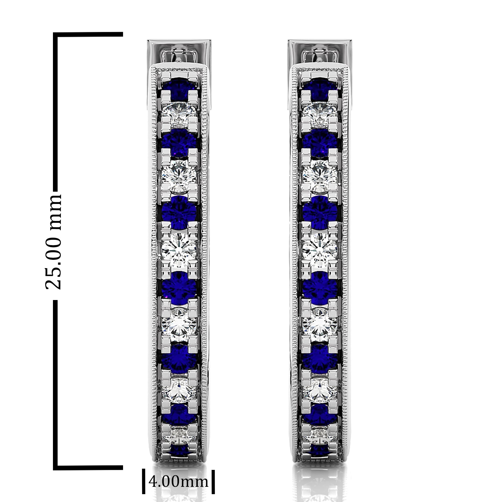2 CT. Round Natural Diamond and Blue Sapphire Inside Out Hoop Earrings